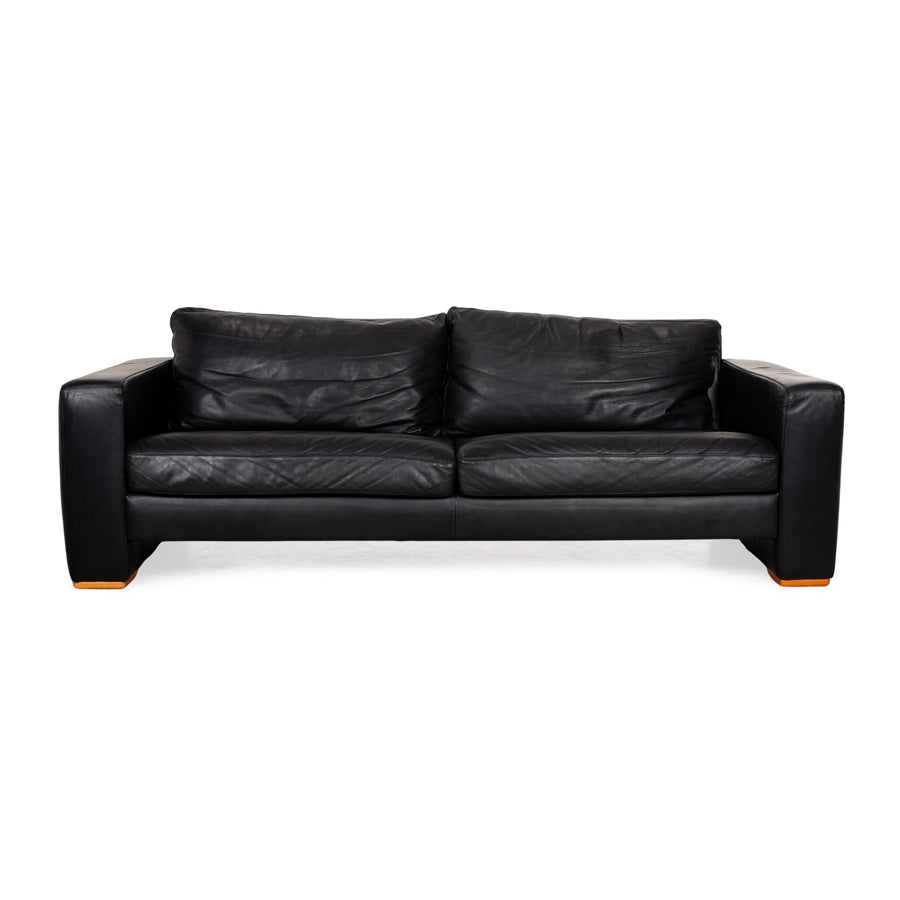Das Sofa von Lederland ist mit einem schwarzen Echtleder bezogen und steht auf massiven Füßen. Das klassische, zeitlose Design und der Sitzkomfort zeichnen den Dreisitzer aus.