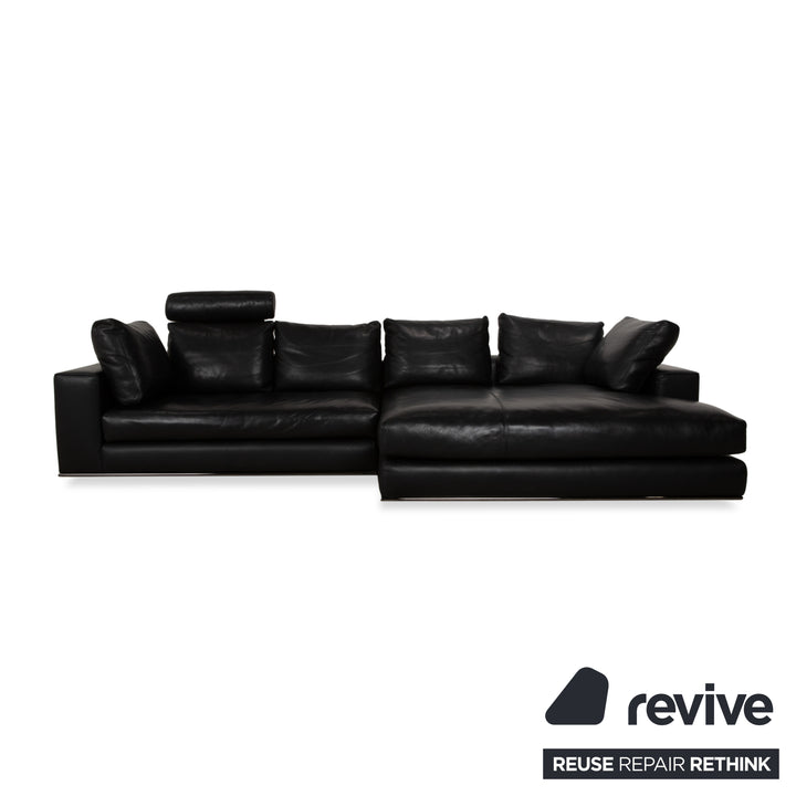 Minotti Hamilton Leder Ecksofa Schwarz Sofa Couch Recamiere rechts manuelle Funktion