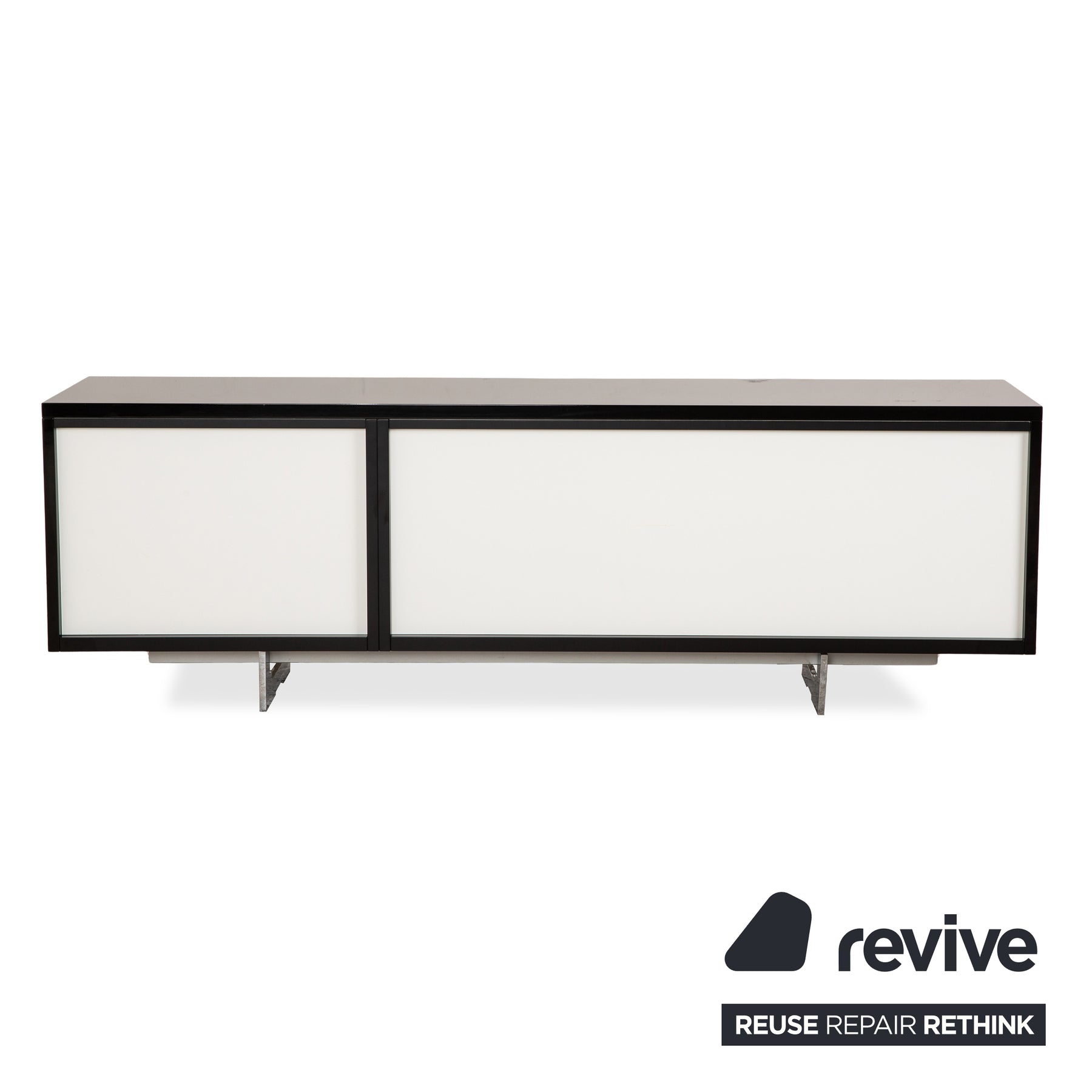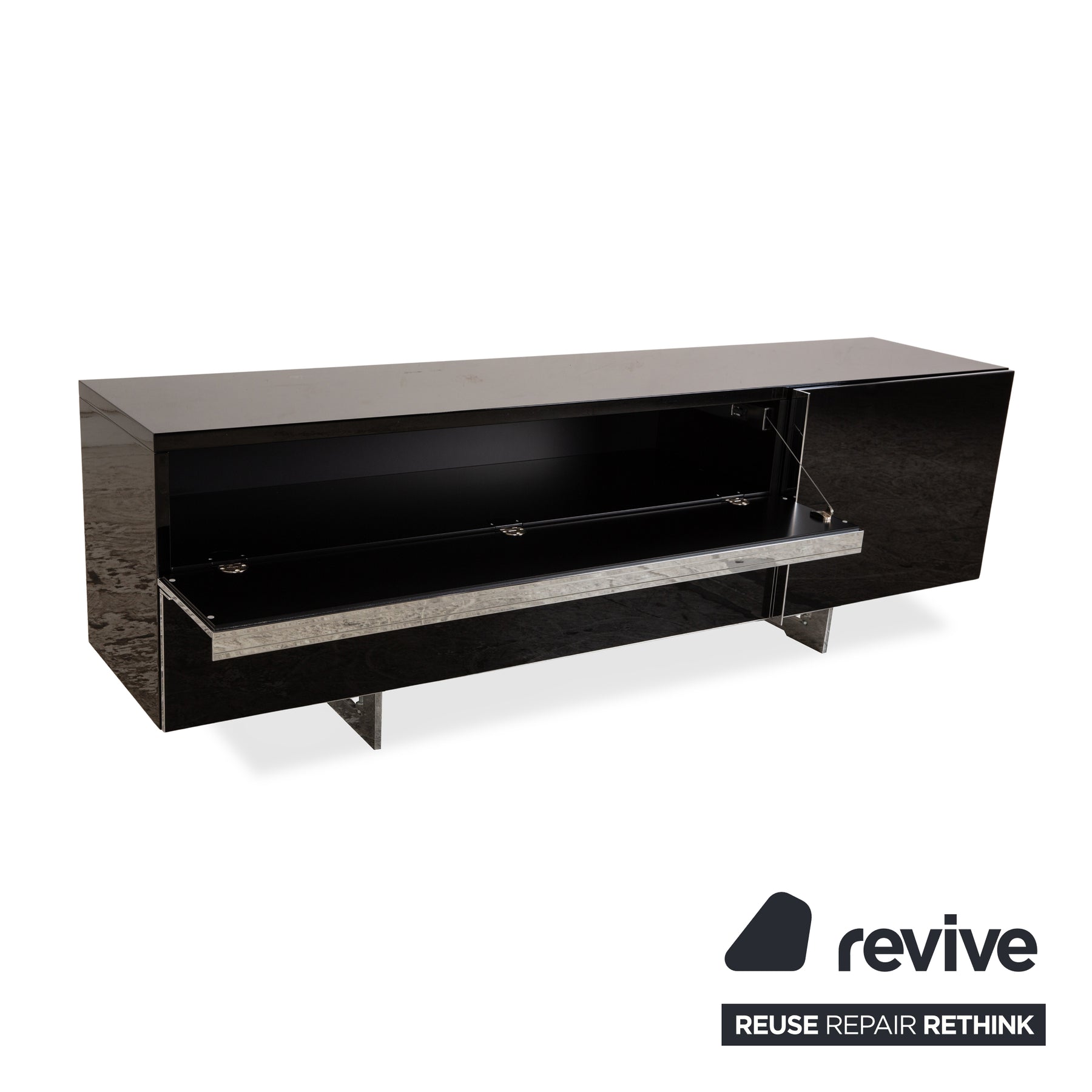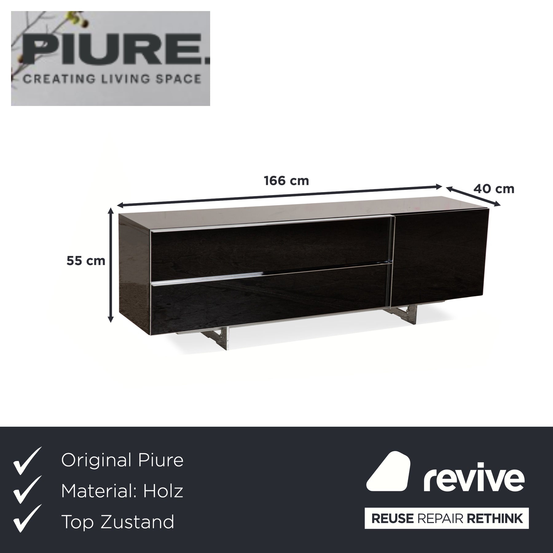 Das Sideboard Nex von Piure besteht aus einem schwarzen Korpus und steht aus silbernen Metallfüßen. Es zeichnet sich durch die elegante Optik und die komfortable Verstaumöglichkeiten aus.