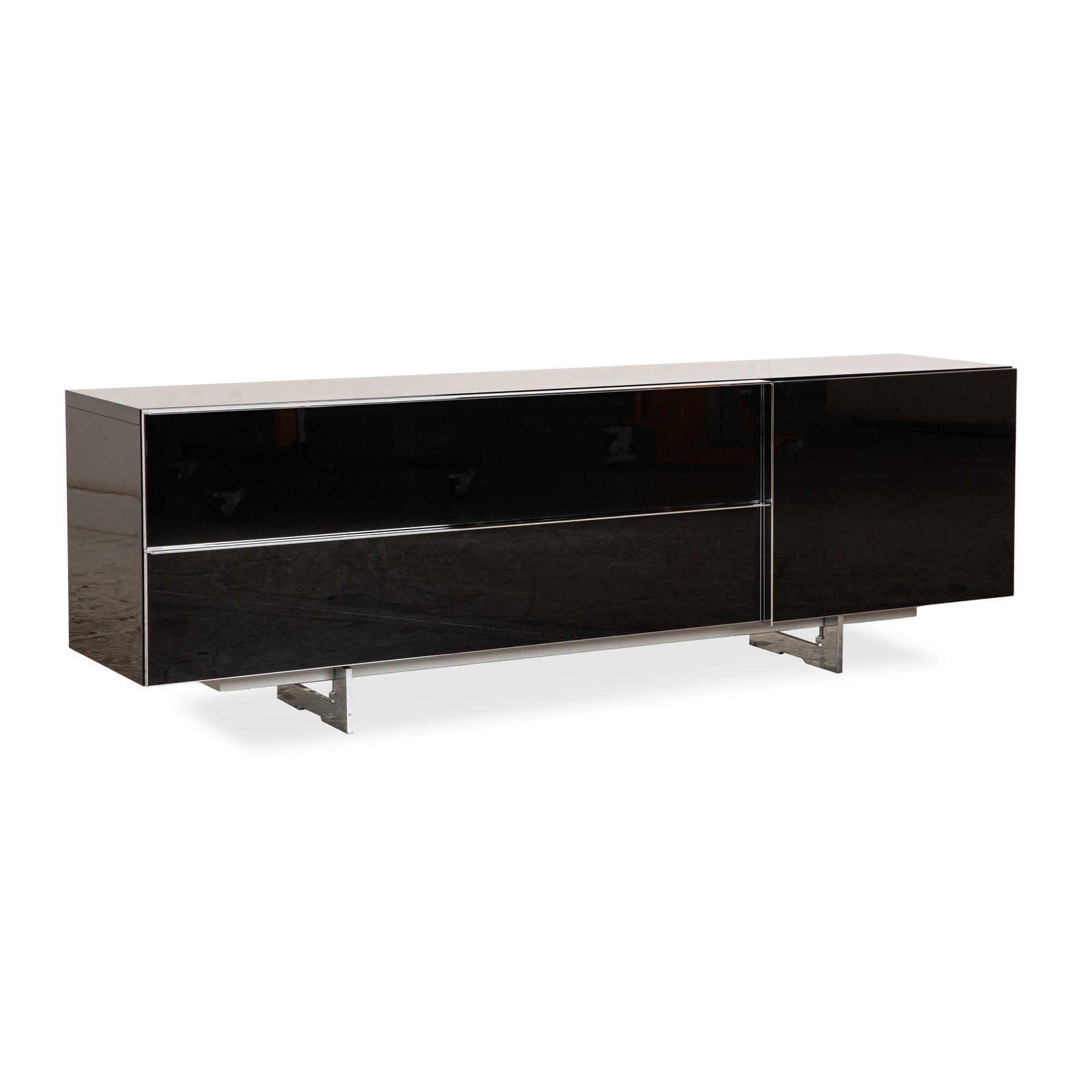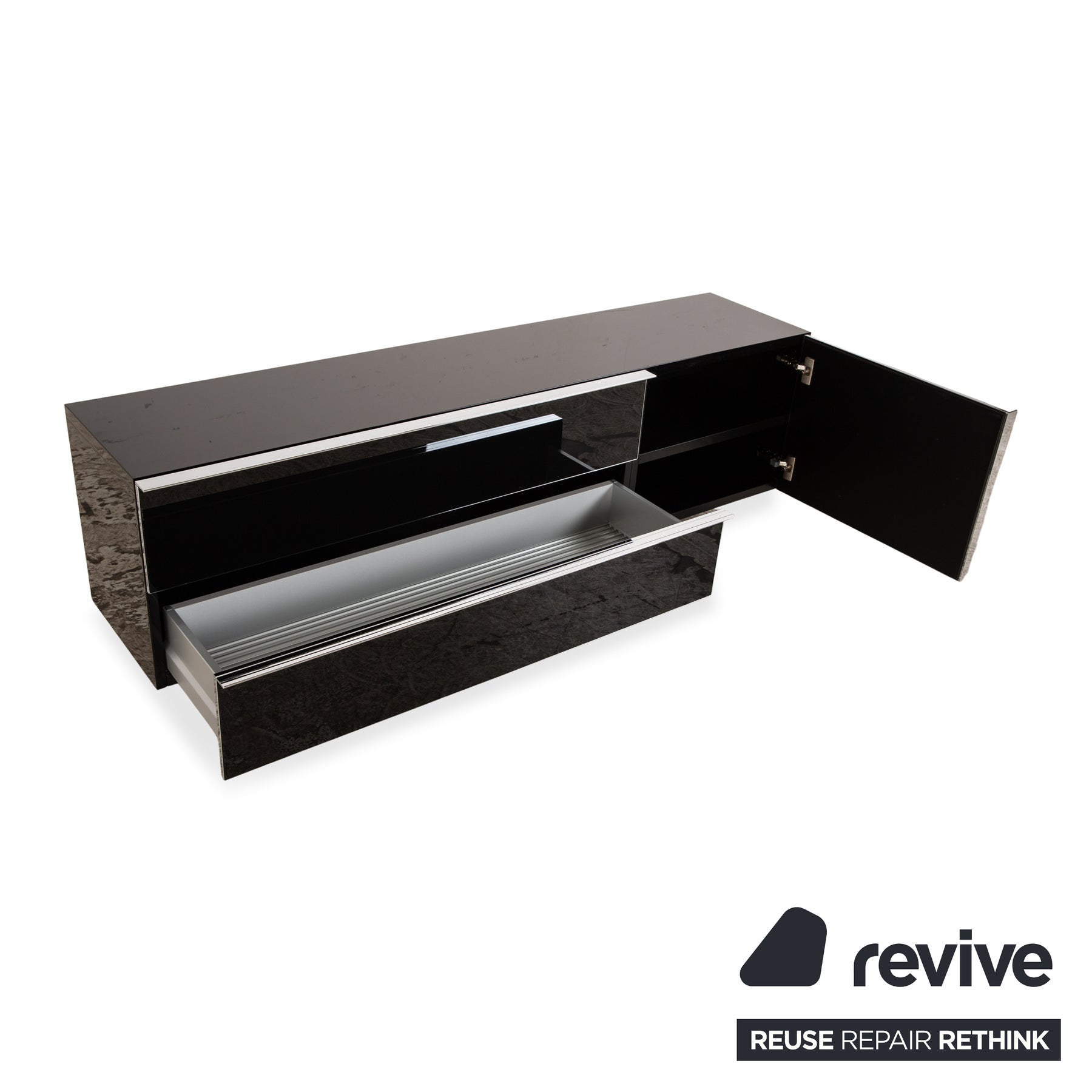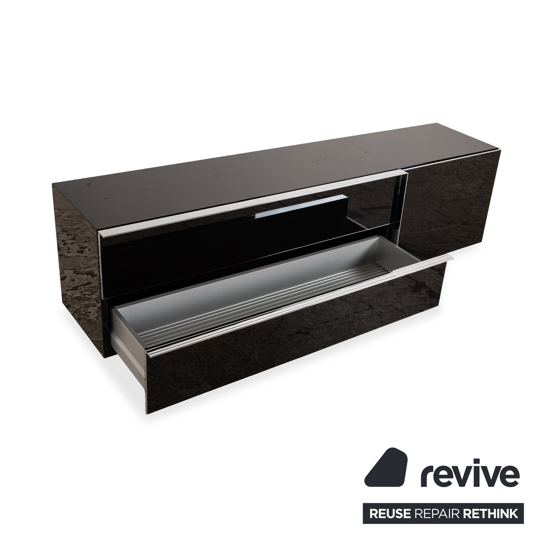 Das Sideboard Nex von Piure besteht aus einem schwarzen Korpus und steht aus silbernen Metallfüßen. Es zeichnet sich durch die elegante Optik und die komfortable Verstaumöglichkeiten aus.