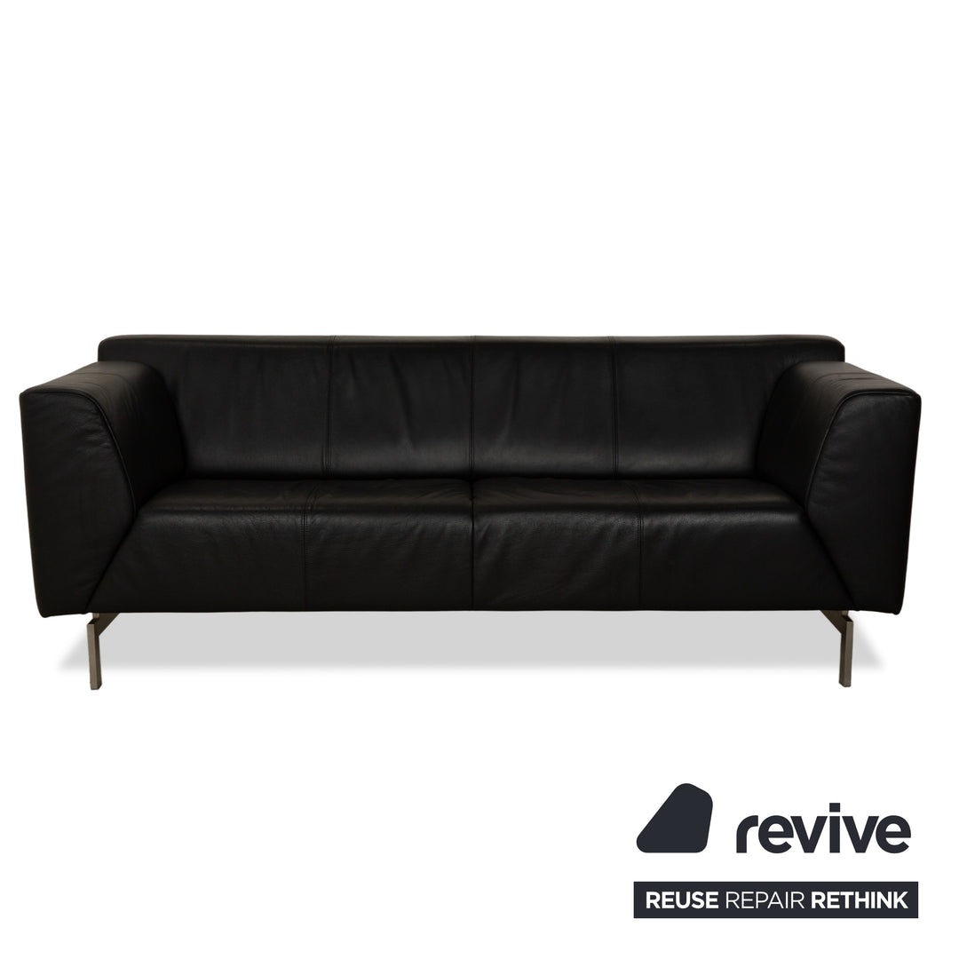 Rolf Benz 318 Linea Leder 1x Dreisitzer 1x Hocker 1x Sessel Schwarz Sofa Couch