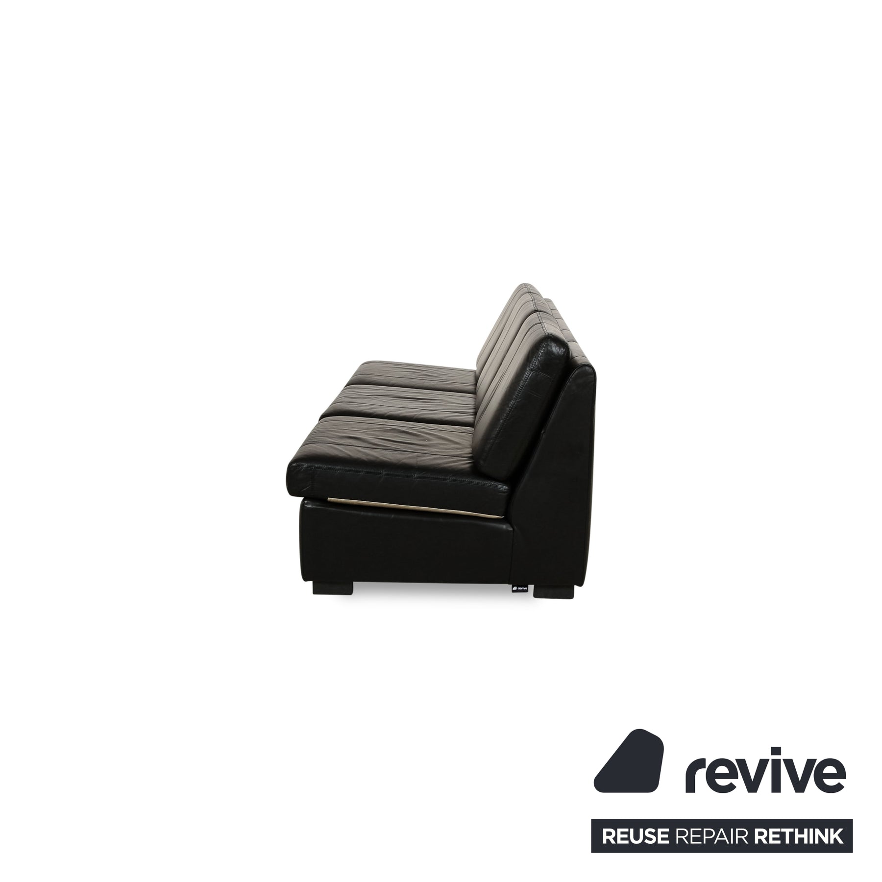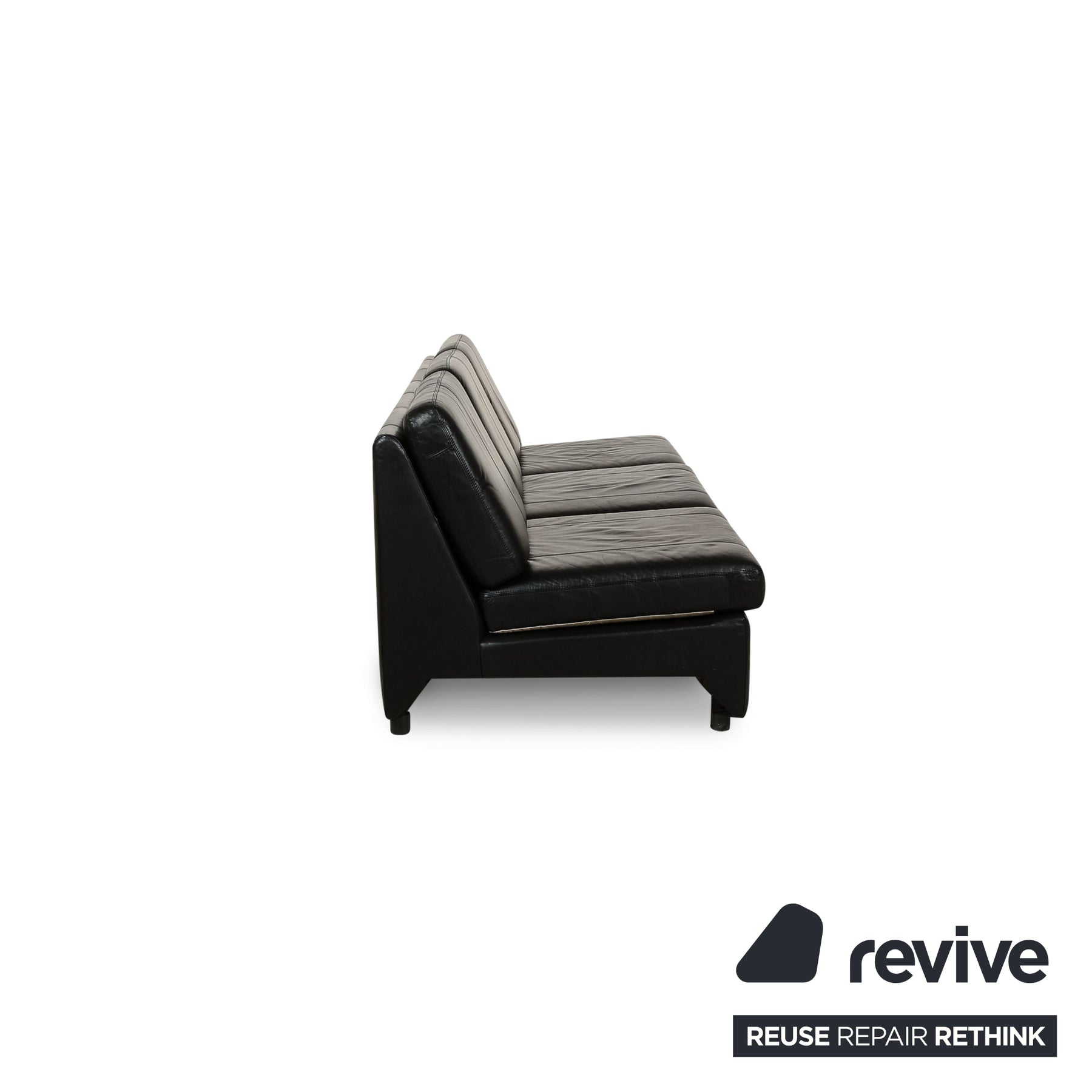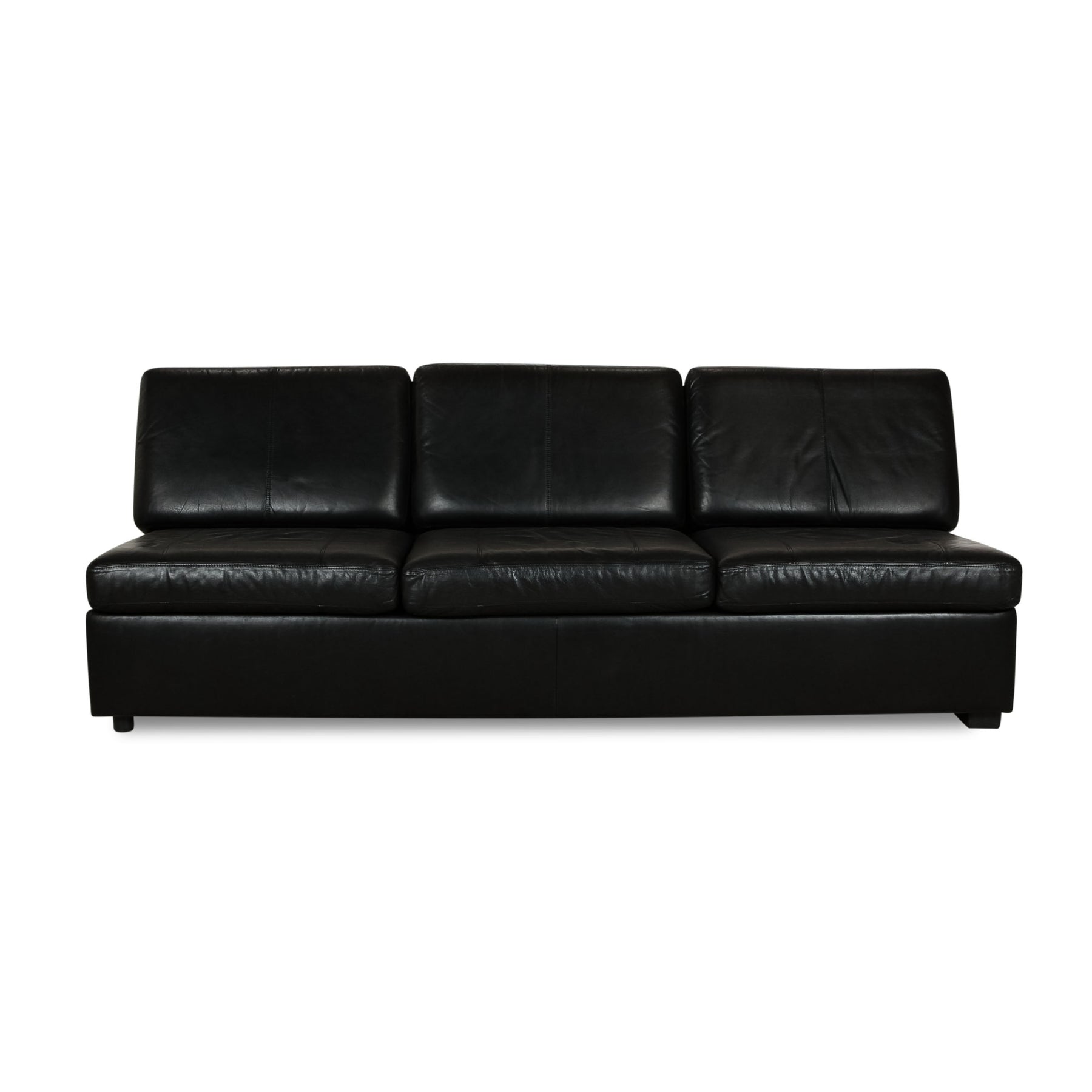Das Sofa von Cor ist mit einem schwarzen Echtleder bezogen und steht auf schmalen Füßen in variierender Optik. Das reduzierte, armlehnenlose Design zeichnet diesen Dreisitzer aus.