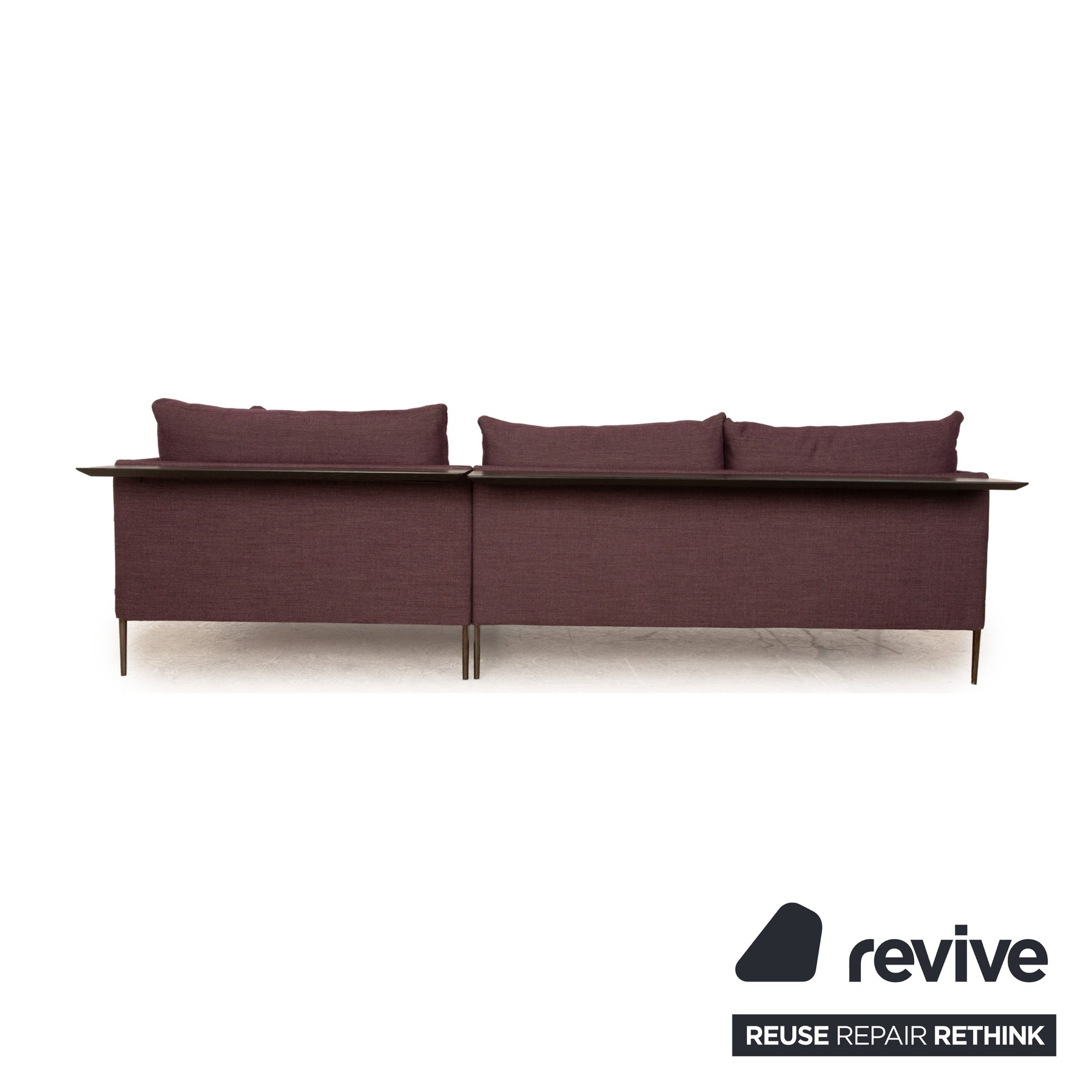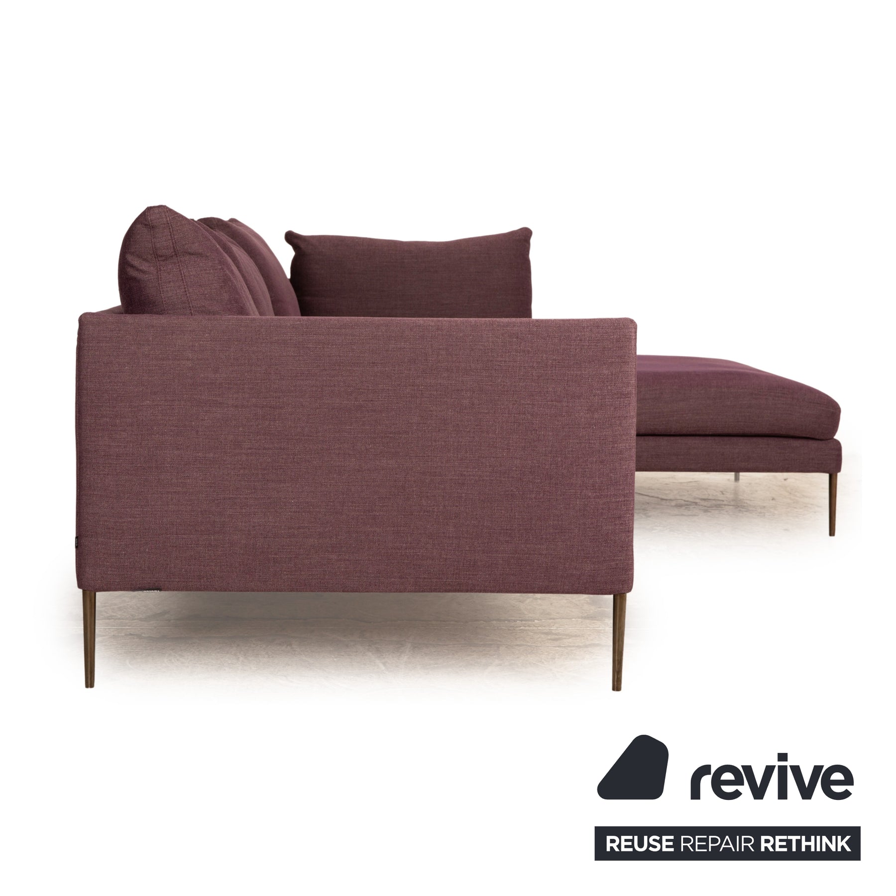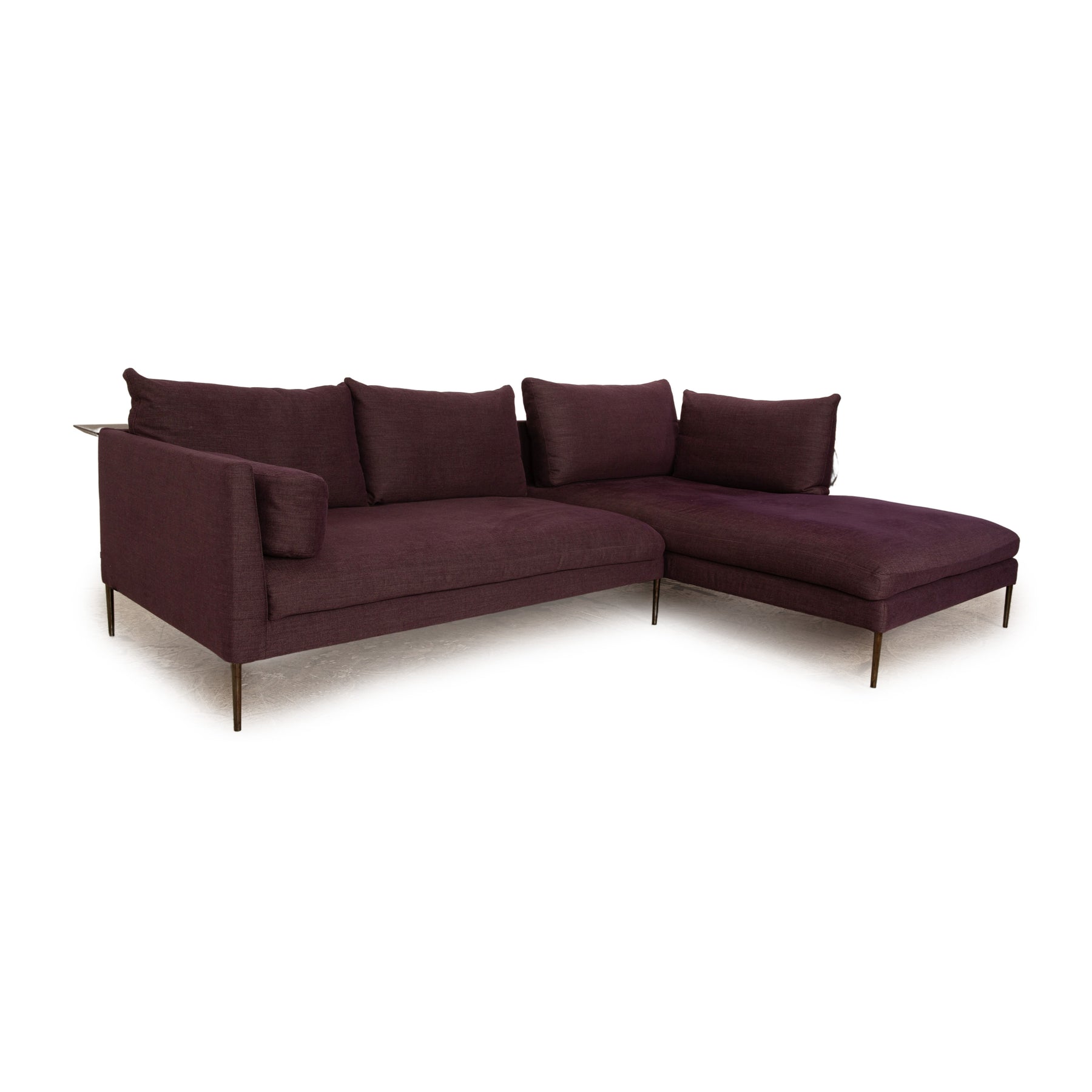 Das Pilotis Sofa von Cor ist mit einem lilafarbenen Stoff bezogen und steht auf schlanken Metallfüßen. Das moderne, minimalistische Design zeichnet das Ecksofa aus.
