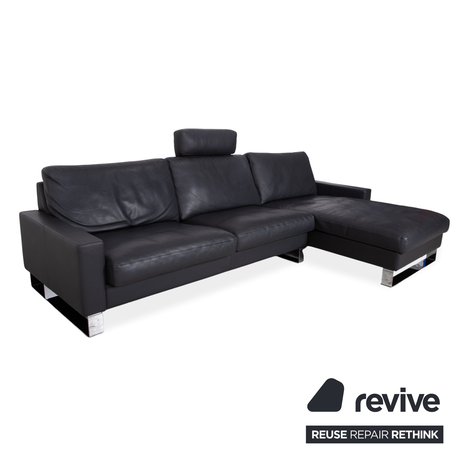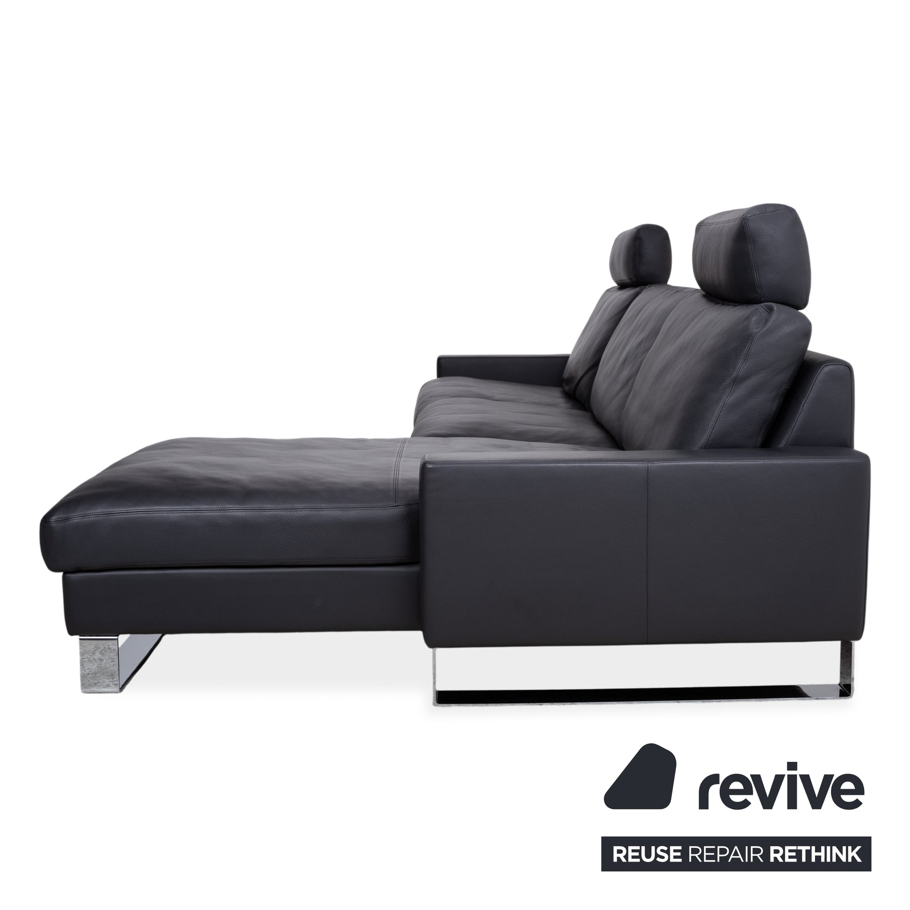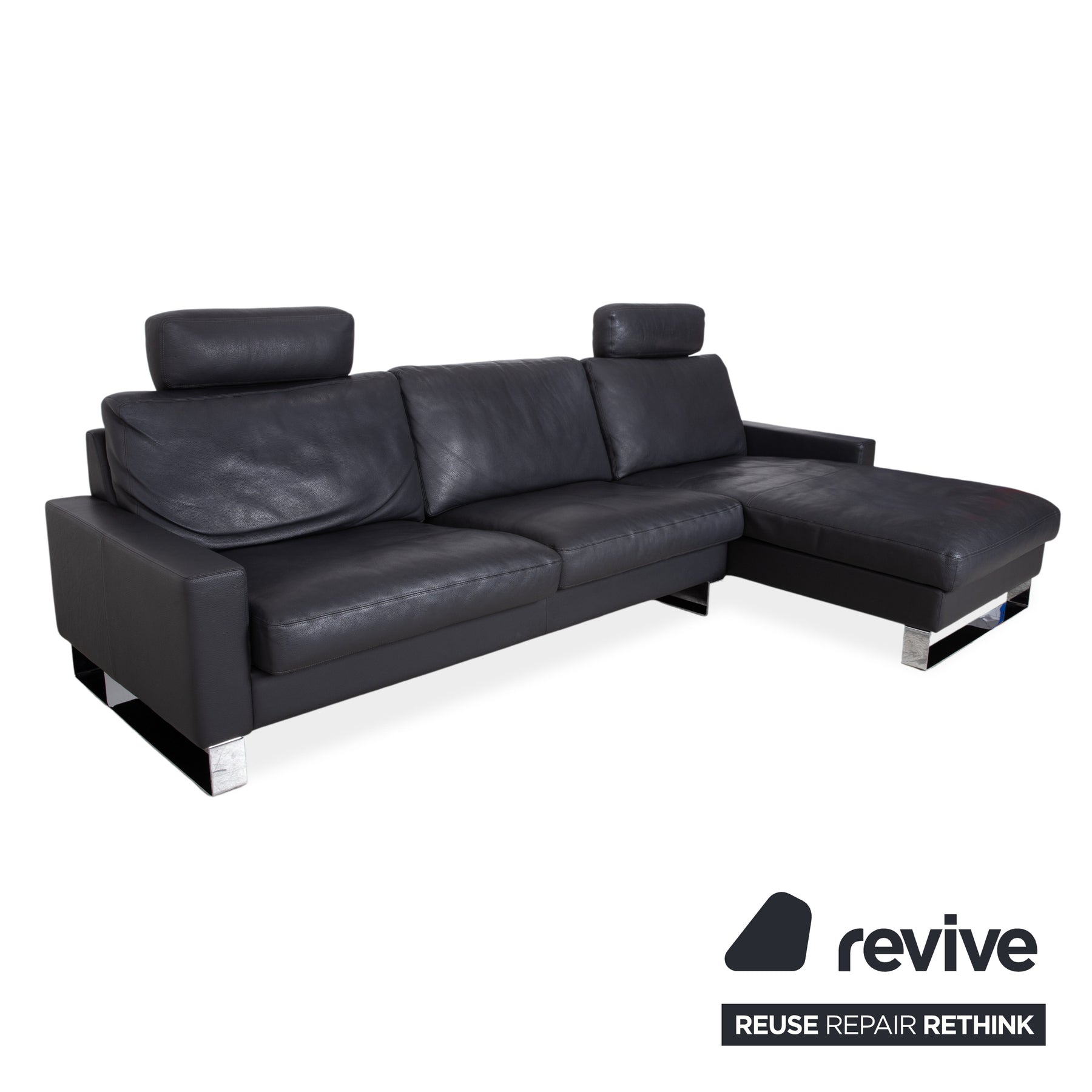 Erpo CL 820 Leder Ecksofa Dunkelgrau Anthrazit auf Chrom Kuven Füßen inkl. 2 Kopfstützen Recamiere Rechts Couch