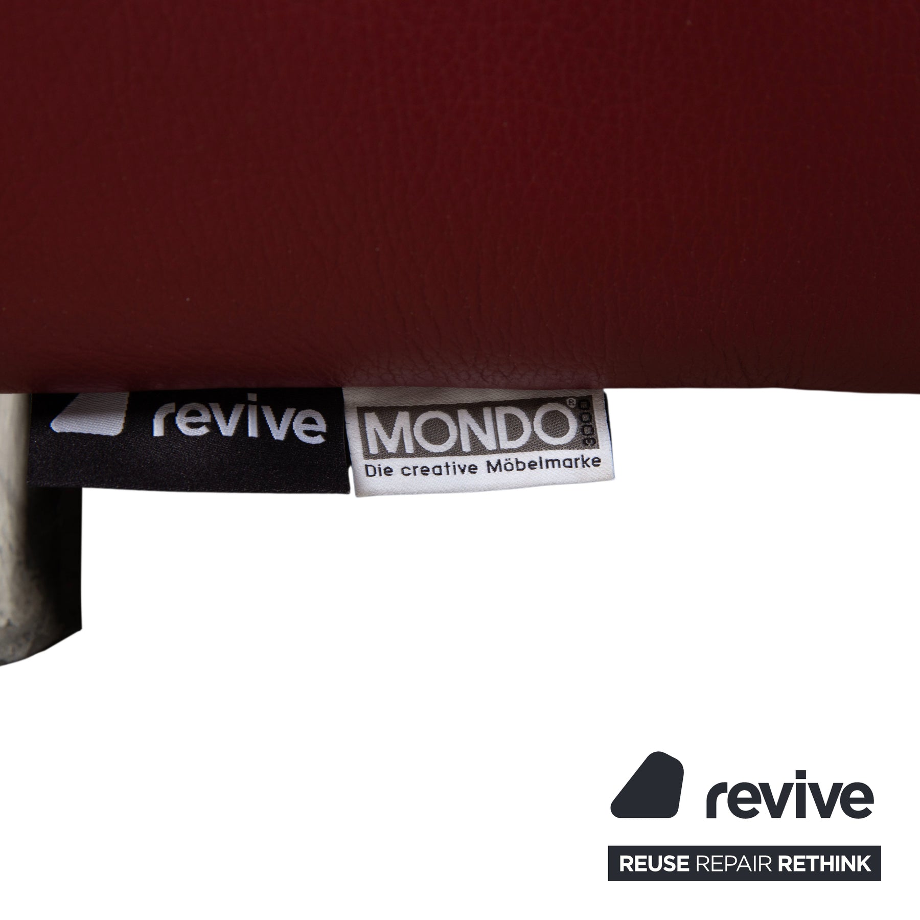 Das Sofa ist in hochwertiges Leder in einem satten Bordeaux- oder Weinrot gehüllt. Dieser Farbton strahlt Wärme und Leidenschaft aus und macht das Möbelstück zum unübersehbaren Herzstück des Raumes. Veredelt wird die Optik durch helle Kontrastnähte, die die Konturen des Sofas nachzeichnen und die handwerkliche Qualität betonen.