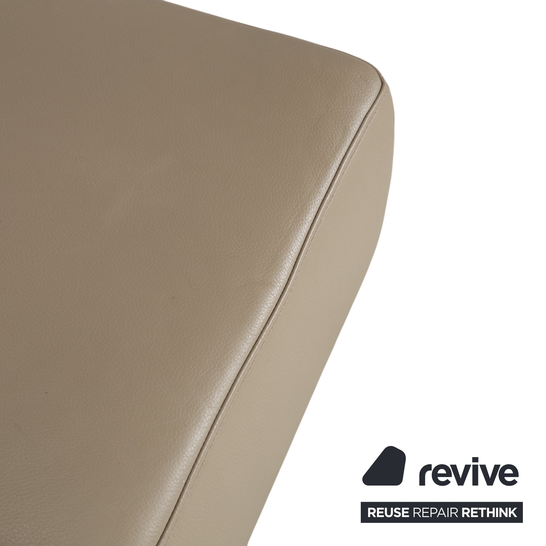 Mit dieser Kombination holst du dir das Maximum an Gemütlichkeit in dein Wohnzimmer, da der Hocker die loungetaugliche L-Form des Sofas ideal erweitert oder als flexibler Zusatzsitz dient. Beide Möbelstücke bestechen durch ihren hochwertigen Lederbezug in einem warmen Beige-Taupe, der durch die bodennahe, ausladende Form besonders einladend wirkt. Dieser "loungige" Charakter wird durch die flachen Rückenlehne des Sofas unterstrichen, was das Set zum ultimativen Rückzugsort für entspannte Abende macht.