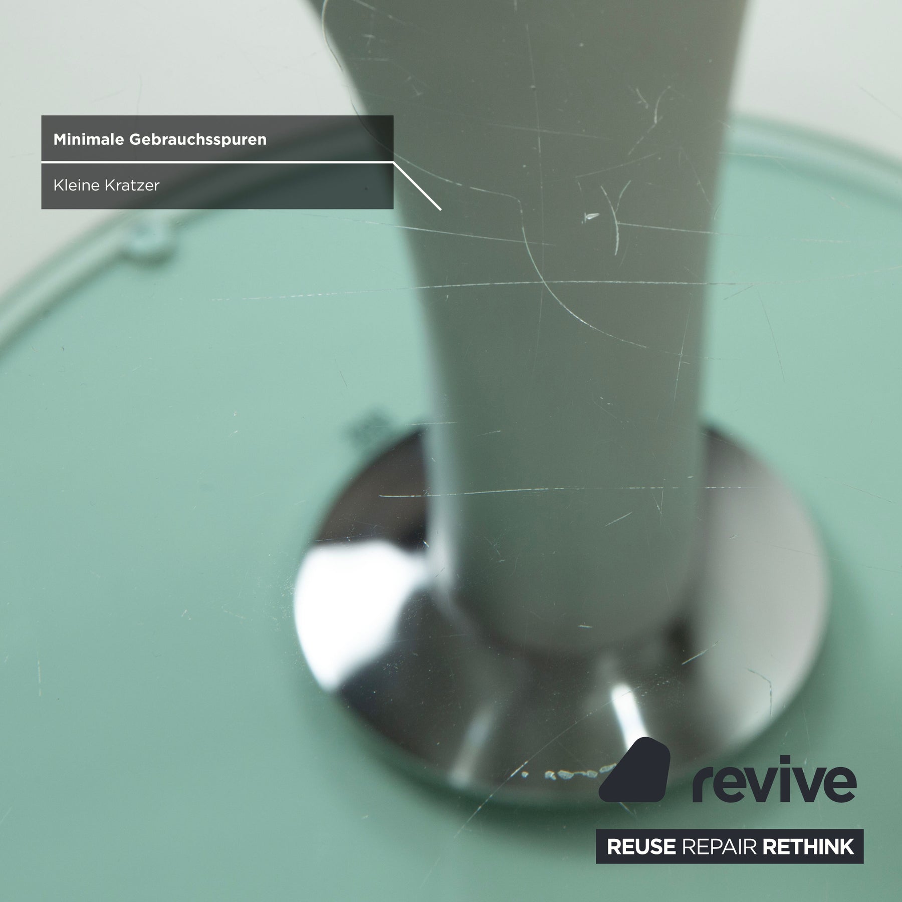 Der Rolf Benz 1210 ist ein eleganter Esstisch mit klarer Formensprache und hochwertigen Materialien. Die Tischplatte sowie die Platte am Fuß besteht aus transparentem Glas und verleiht dem Tisch im Raum eine leichte, moderne Wirkung. Das interessante Gestell aus silberfarbenem Metall sorgt für Stabilität und eine dezente Optik.