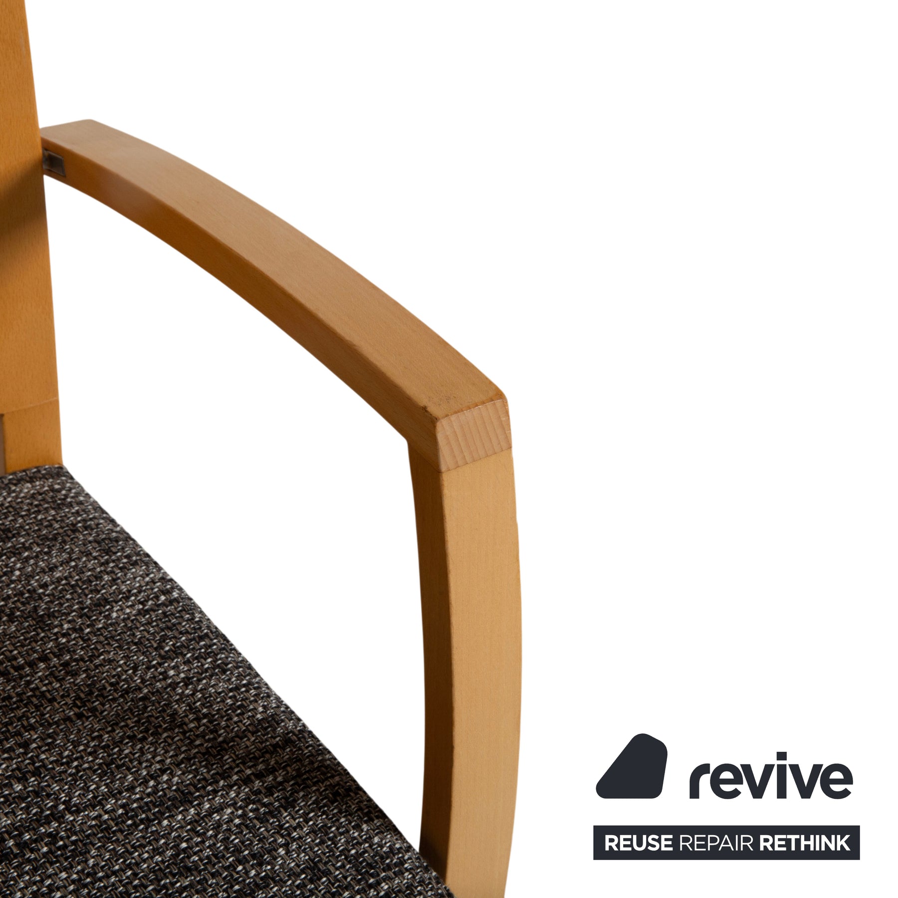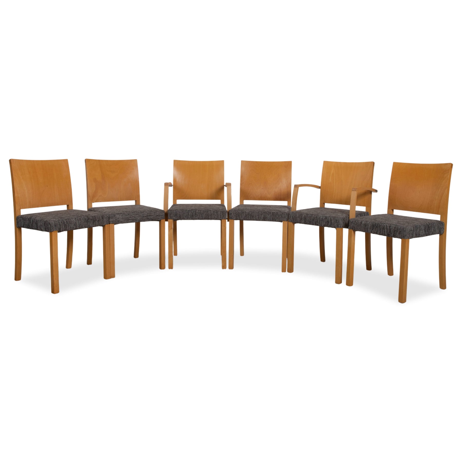 6er Garnitur Thonet Stoff Holz Stuhl Grau Braun Armlehne