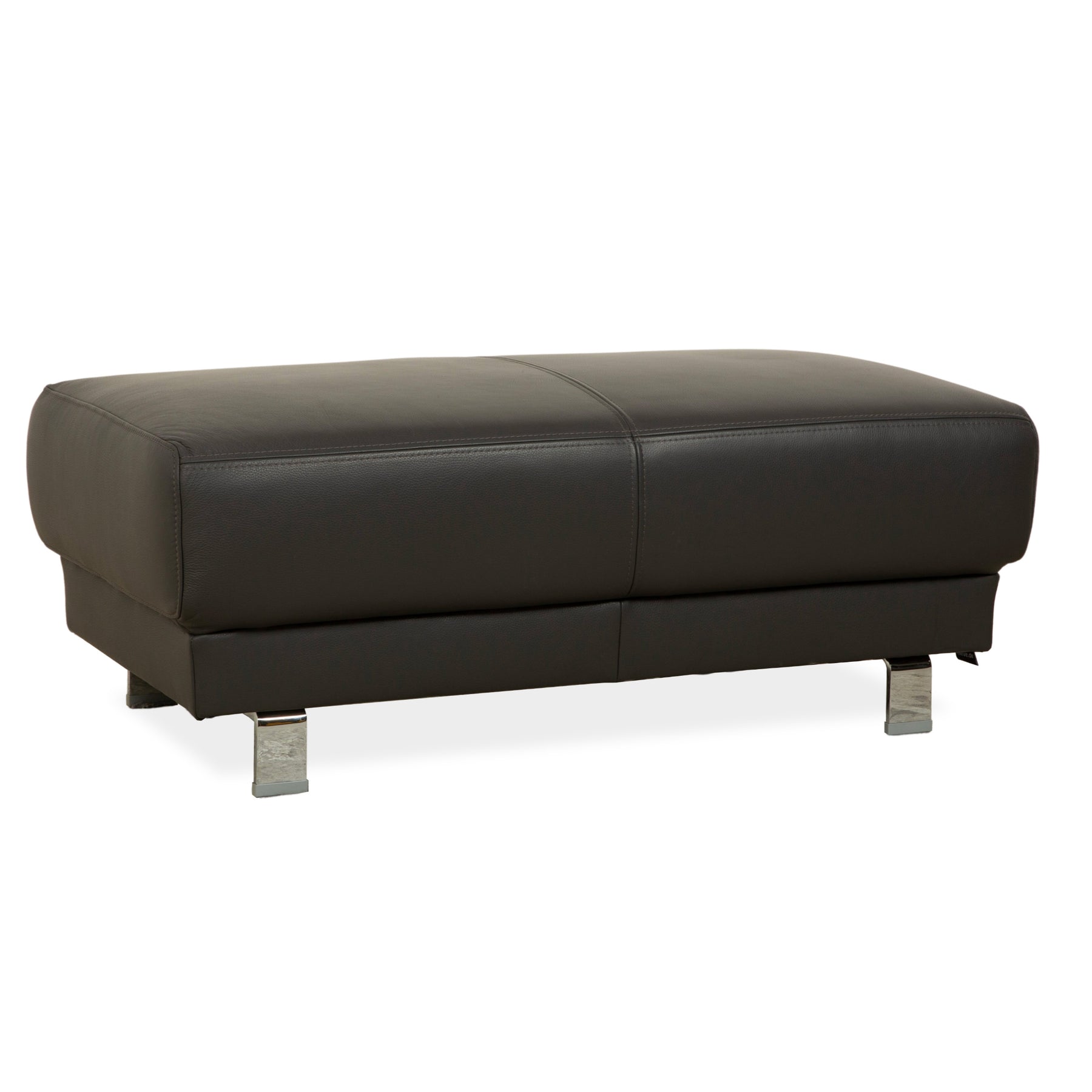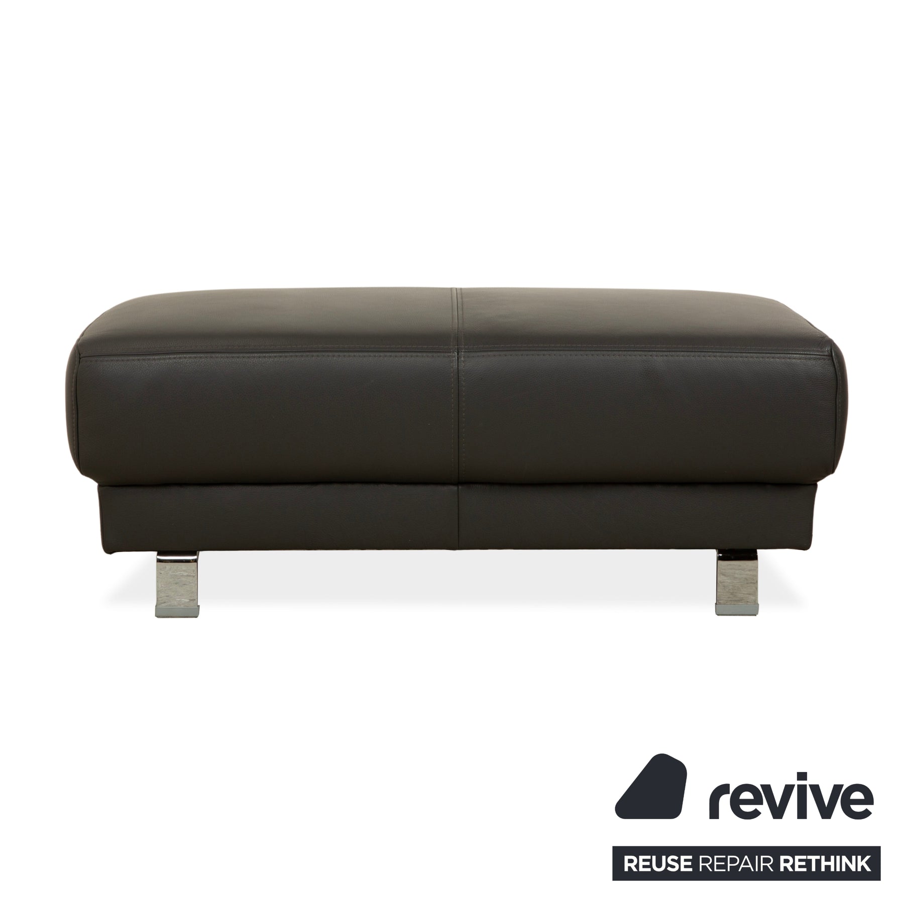 Ewald Schillig Brand Face Leder Hocker Dunkelgrau Schiefer Braun