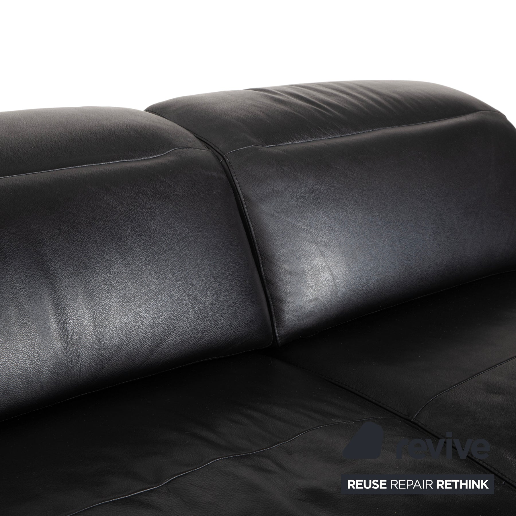 Das besondere Highlight ist die manuelle Funktion: Wie an der waagerechten Teilung der Rückenlehne zu erkennen ist, verfügt das Sofa über verstellbare Kopfstützen. Du kannst sie flach lassen, um die niedrige, moderne Silhouette zu wahren, oder manuell hochklappen, um beim Lesen oder Fernsehen den Kopf bequem anzulehnen.
