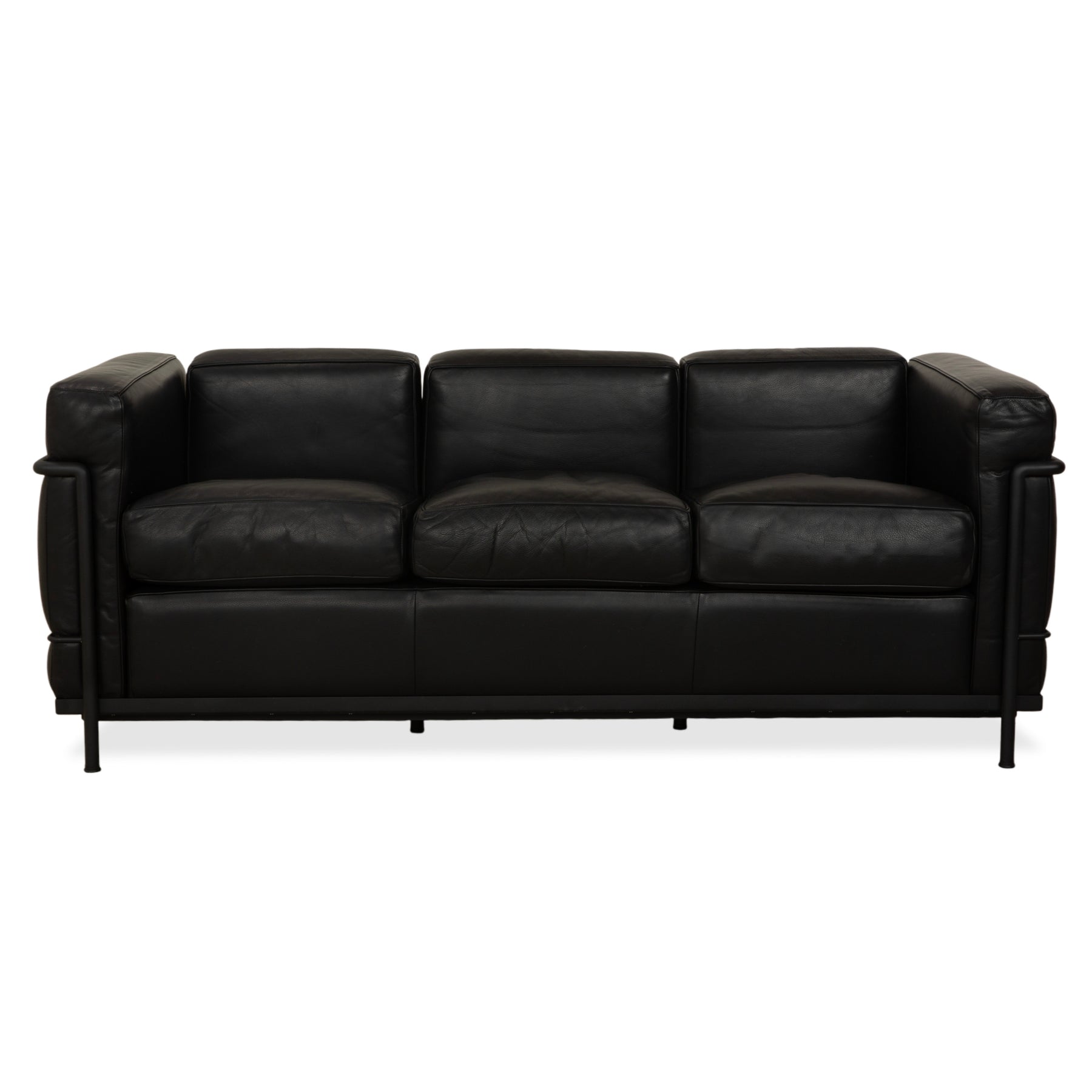 Cassina LC 2 Leder Dreisitzer Schwarz Sofa Couch