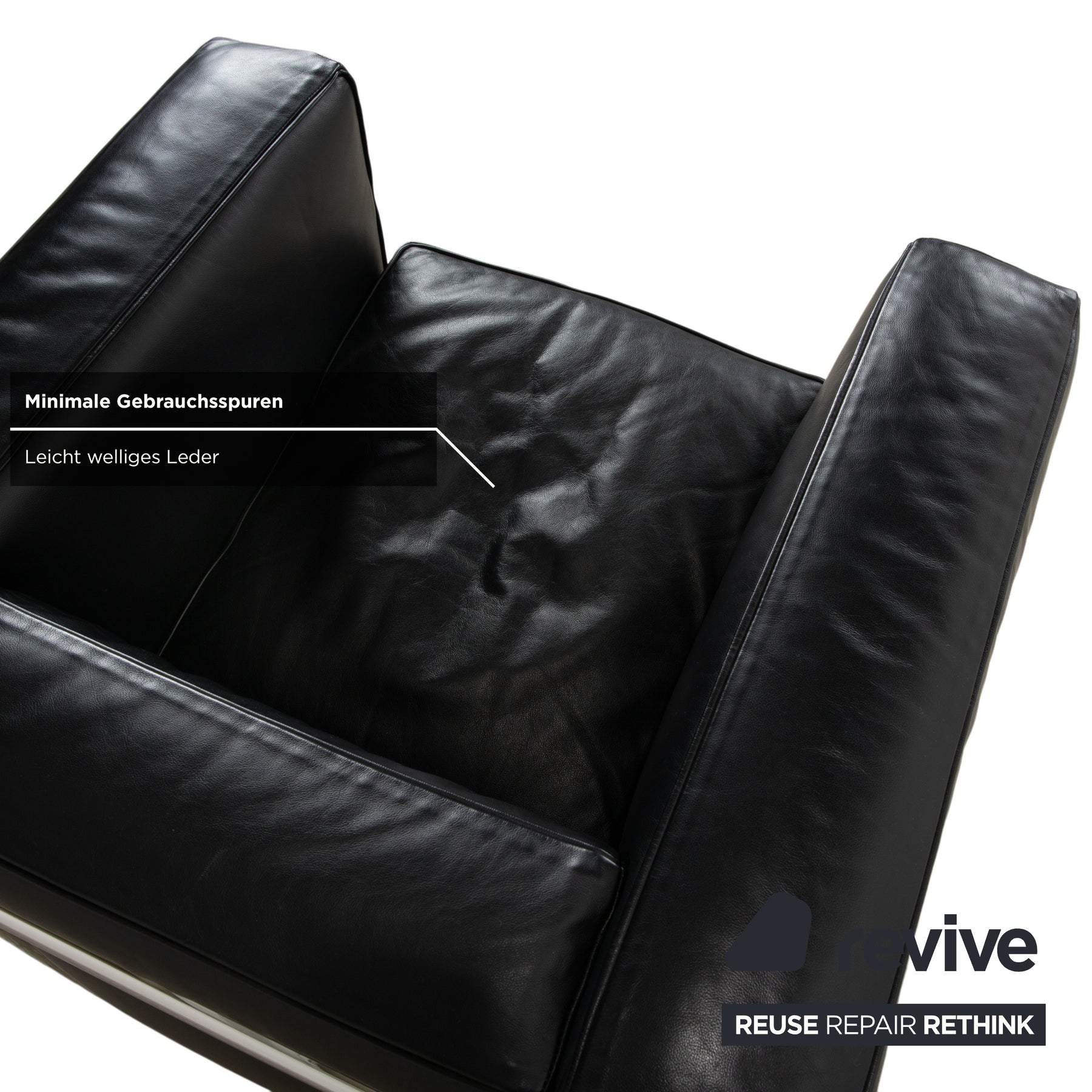 Der Cassina LC2 Sessel ist eine Designikone – klar, architektonisch und zugleich überraschend einladend. Das Zusammenspiel aus dem perfekten Kubus und dem umlaufenden Stahlrohrgestell macht ihn zu einem Möbelstück, das nicht altert, sondern mit jedem Jahrzehnt an Präsenz gewinnt. In schwarzem Leder wirkt der LC2 besonders edel: ruhig, kraftvoll und mit einem Understatement, das sofort Klasse ausstrahlt.