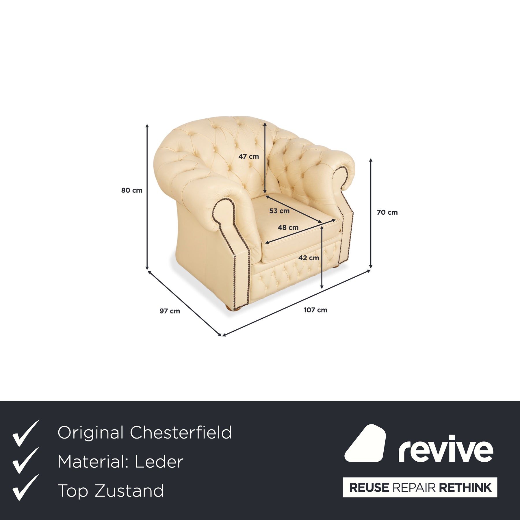 Chesterfield Centurion Leder Sessel Creme Vintage