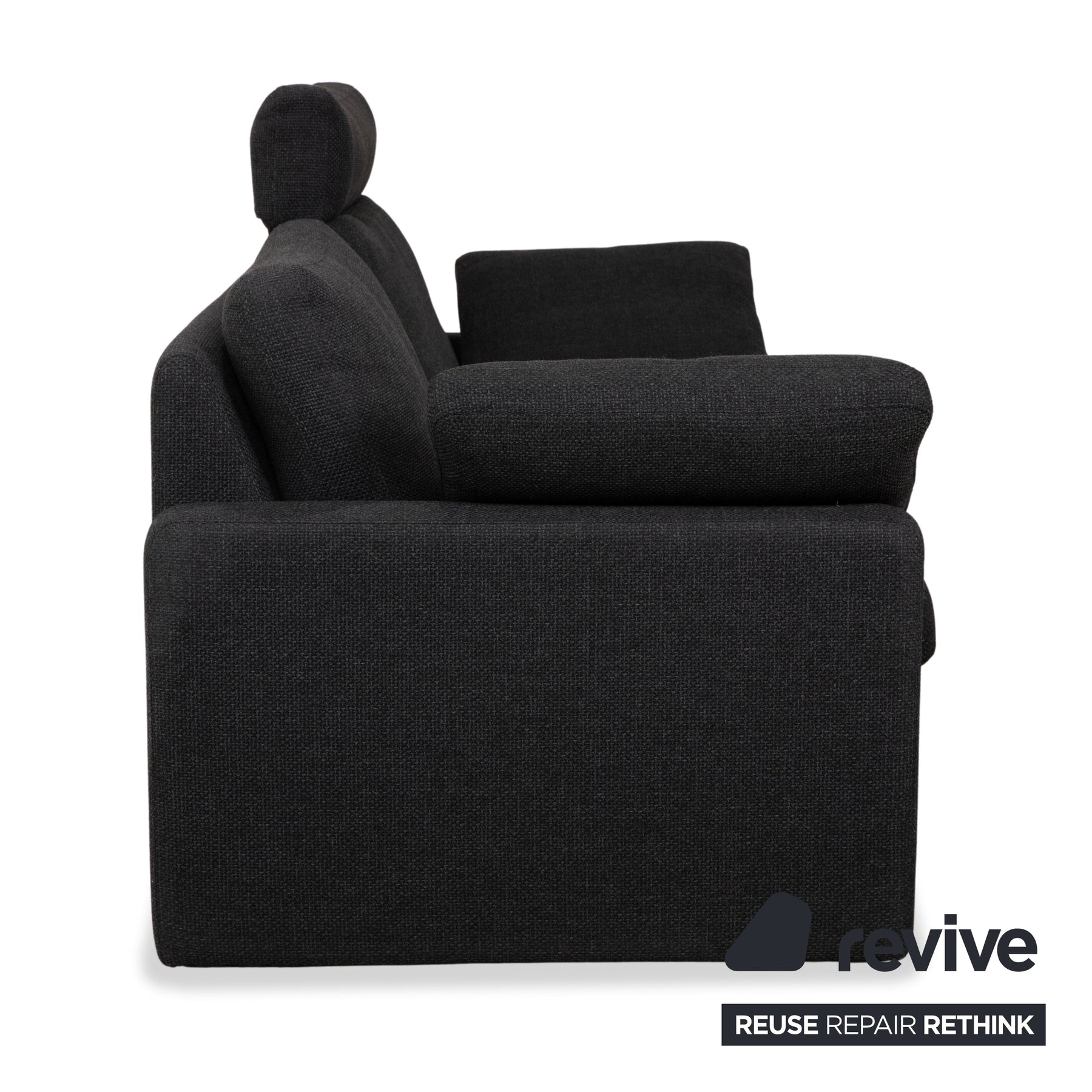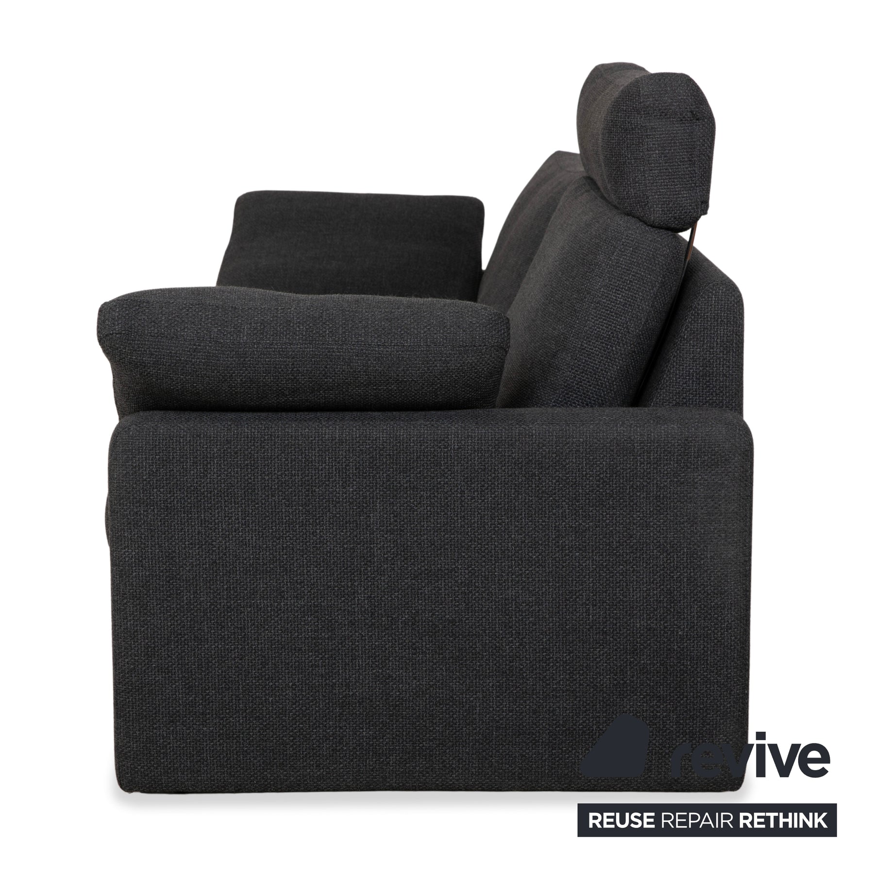 Die Conseta von COR ist einer dieser Entwürfe, die einfach funktionieren – zeitlos, schlicht und extrem wandlungsfähig. Bei diesem Zweisitzer bekommst du genau diese Qualitäten in einem dunkelgrauen, griffigen Stoffbezug, der unempfindlich ist und optisch Ruhe in den Raum bringt. Besonders praktisch ist hier die Ausstattung: Neben den markanten, flachen Korpus-Armlehnen sorgen die zusätzlichen Einlegekissen dafür, dass du auch mal gemütlich liegen kannst, ohne auf die harte Kante zu treffen. Ein echtes Plus an Komfort ist die aufsteckbare Kopfstütze, die den eigentlich niedrigen Rücken an einer Stelle verlängert und so bequemes Anlehnen ermöglicht. Das Sofa steht auf flachen Kufen, wodurch der kubische Korpus fast ein wenig über dem Boden zu schweben scheint.