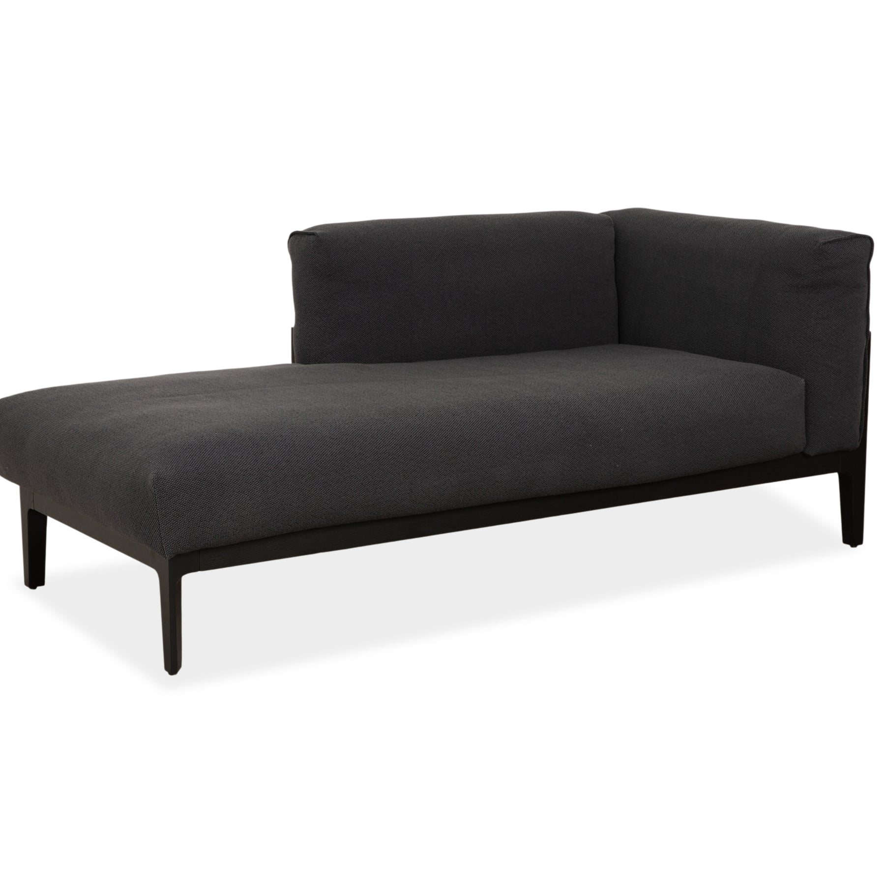 Der anthrazitfarbene Stoffbezug wirkt ruhig und hochwertig zugleich. Er verleiht der Recamiere eine wohnliche Tiefe und lässt sich vielseitig kombinieren. Die großzügige Liegefläche lädt zum Entspannen, Lesen oder kurzen Auszeiten ein und bietet dabei ein angenehm komfortables Liegegefühl.
