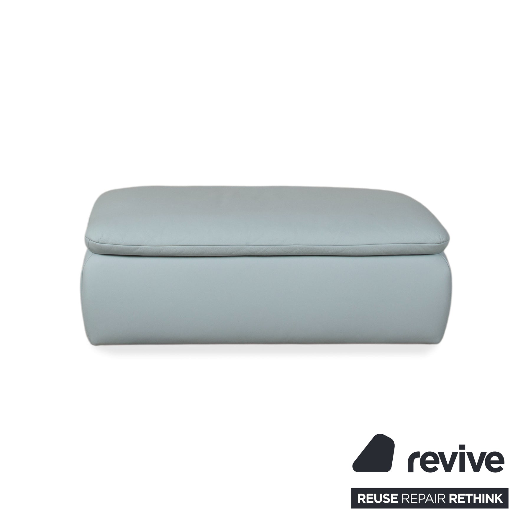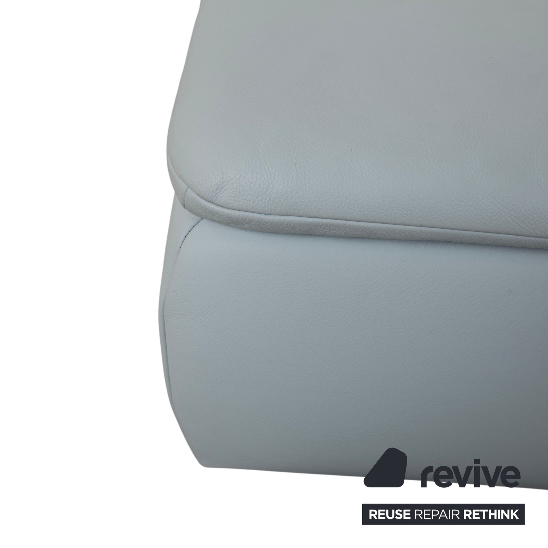 Das Besondere an der Rossini-Serie ist das Spiel mit Proportionen und Komfort. Der Hocker verfügt über eine großzügige, fest gepolsterte Sitzfläche, die durch die markanten Einzüge in der Polsterung ihre charakteristische Optik erhält. Das hochwertige Leder in Blau-Grau ist ein echter Chamäleon-Farbton: Je nach Lichteinfall wirkt er kühler oder wohnlicher und lässt sich hervorragend zu verschiedenen Einrichtungsstilen kombinieren.
