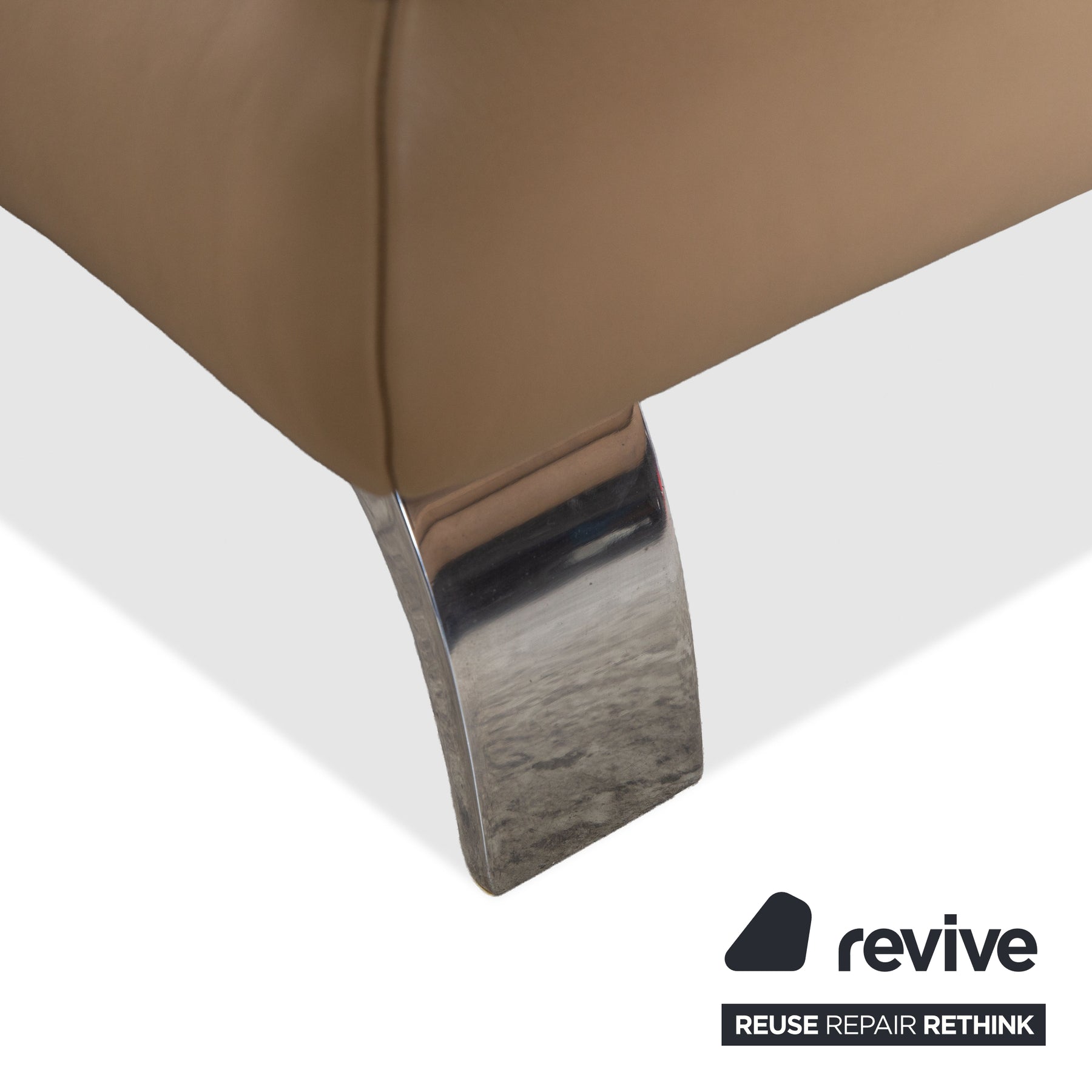 - Markantes Fußgestell: Die geschwungenen Kufen aus glänzendem Chrom verleihen dem massiven Polster eine überraschende Leichtigkeit und einen modernen Touch.