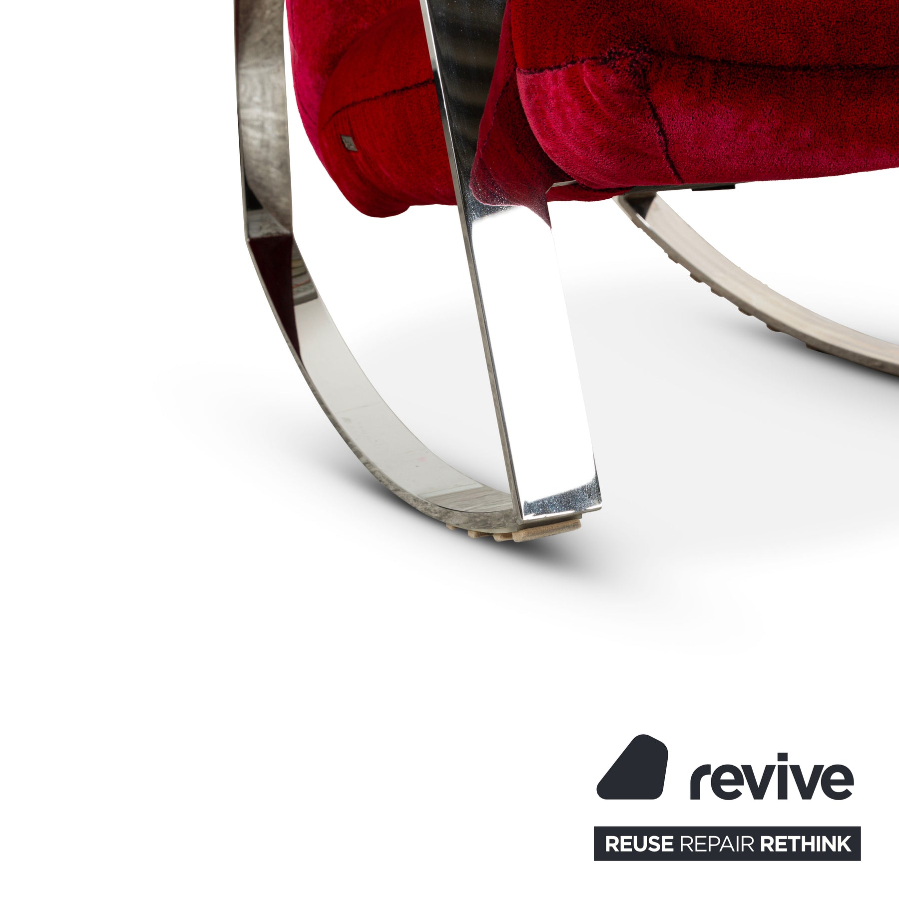 Bretz Highland Stoff Schaukelstuhl Sessel Rot inkl. Hocker Samt Chrom