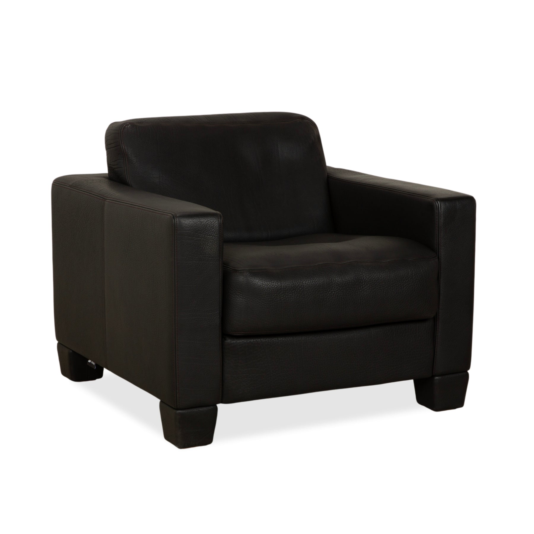 Der Sessel besticht durch sein klares, kubisches Design, das Kraft und Ruhe ausstrahlt. Der Bezug in einem tiefen Schwarz / Schiefer wirkt sehr edel und unterstreicht die massive, wertige Anmutung. Anders als viele filigrane Sessel steht dieses Modell fest und selbstbewusst auf dunklen Blockfüßen, die die bodenständige Eleganz perfekt abrunden. Die breiten Armlehnen und das dicke, weiche Sitzpolster laden dazu ein, es sich so richtig gemütlich zu machen und den Sitzkomfort der Luxusklasse zu genießen. Ein charakterstarker Solitär, der in einer Lounge genauso beeindruckt wie in einem Herrenzimmer oder einer modernen Leseecke.