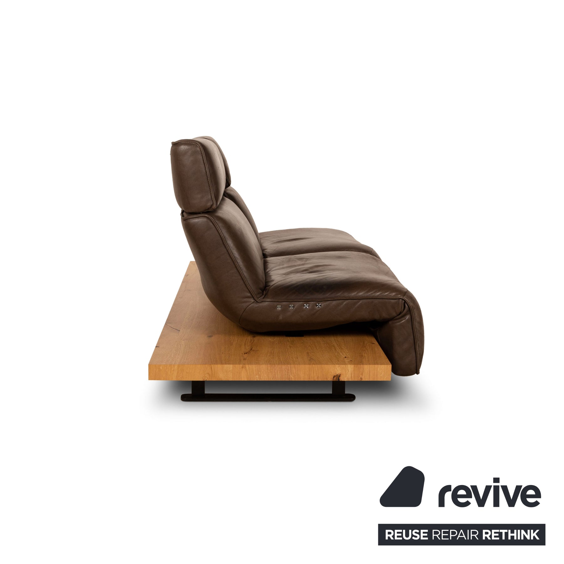 Das Free Motion Etino 2 Sofa von Koinor ist mit einem dunkelbraunen Echtleder bezogen und steht auf einem edlen Holzpodest, welches wiederum von schwarzen Metallkufen getragen wird. Die verschiedenen Verstellmöglichkeiten zeichnen den Zweisitzer aus, der nicht nur ein Garant für Komfort ist, sondern auch exklusives Design in Ihr Wohnzimmer bringt.