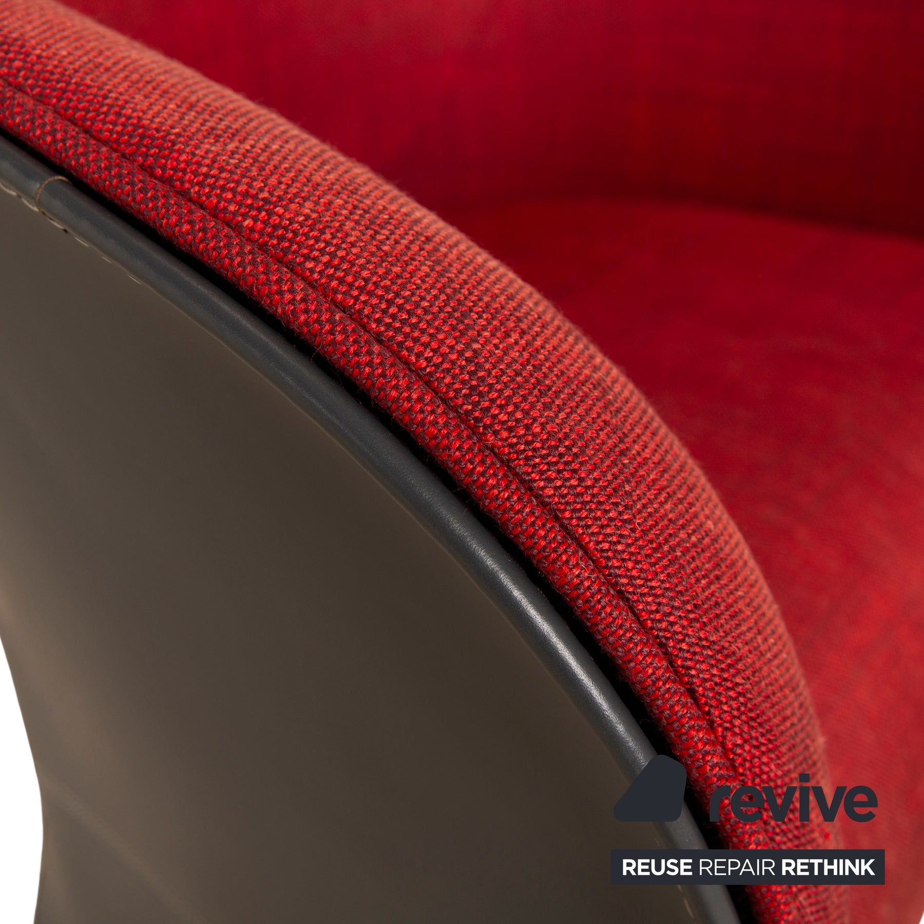 Zanotta Calla Stoff Sessel Rot mit Leder Korpus in Braun auf Rollen