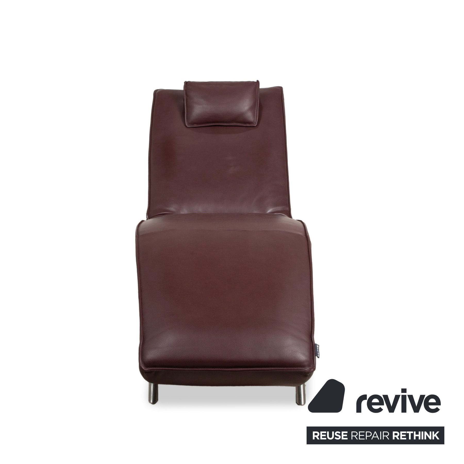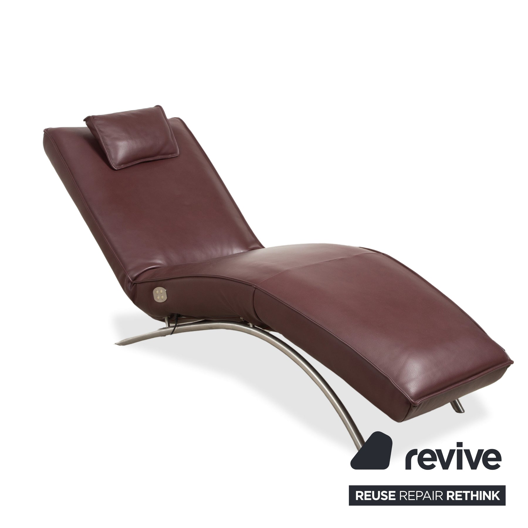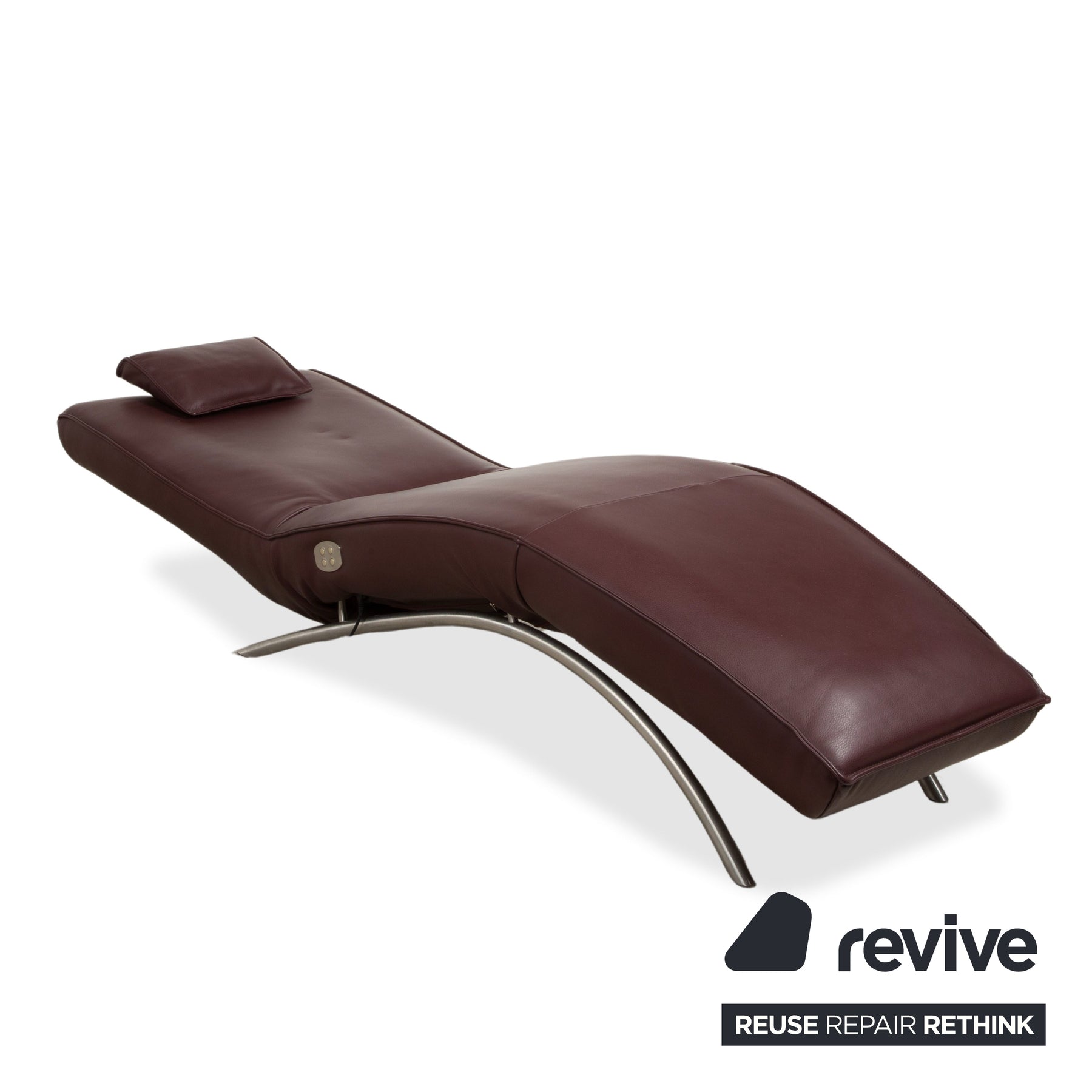 Die Liege ist in hochwertiges Leder in einem tiefen Bordeaux- oder Weinrot gehüllt. Dieser Farbton wirkt unglaublich edel und strahlt eine beruhigende Wärme aus, die perfekt zum Zweck des Möbelstücks passt. Das Design zeichnet sich durch seine ergonomische Wellenform aus, die der natürlichen Silhouette des liegenden Körpers nachempfunden ist. Ein separates, anpassbares Nackenkissen sorgt für zusätzliche Entlastung im Kopfbereich.