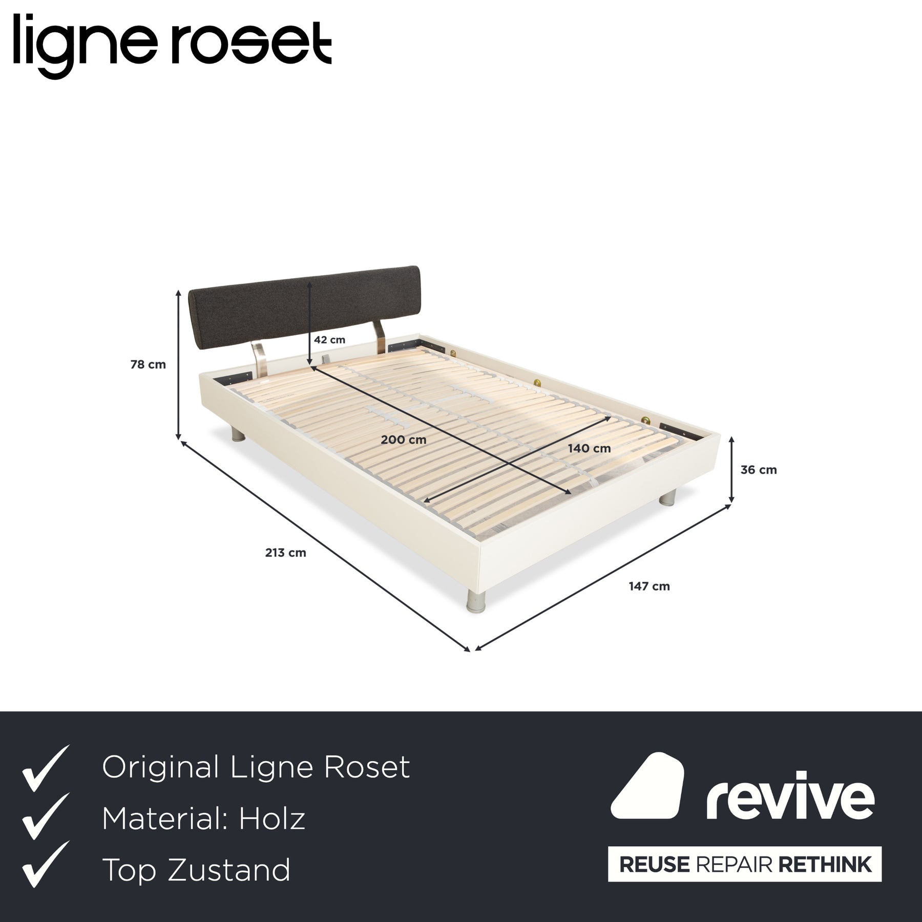 Ligne Roset Holz Bett Weiß Dunkelgrau 140 x 200 cm