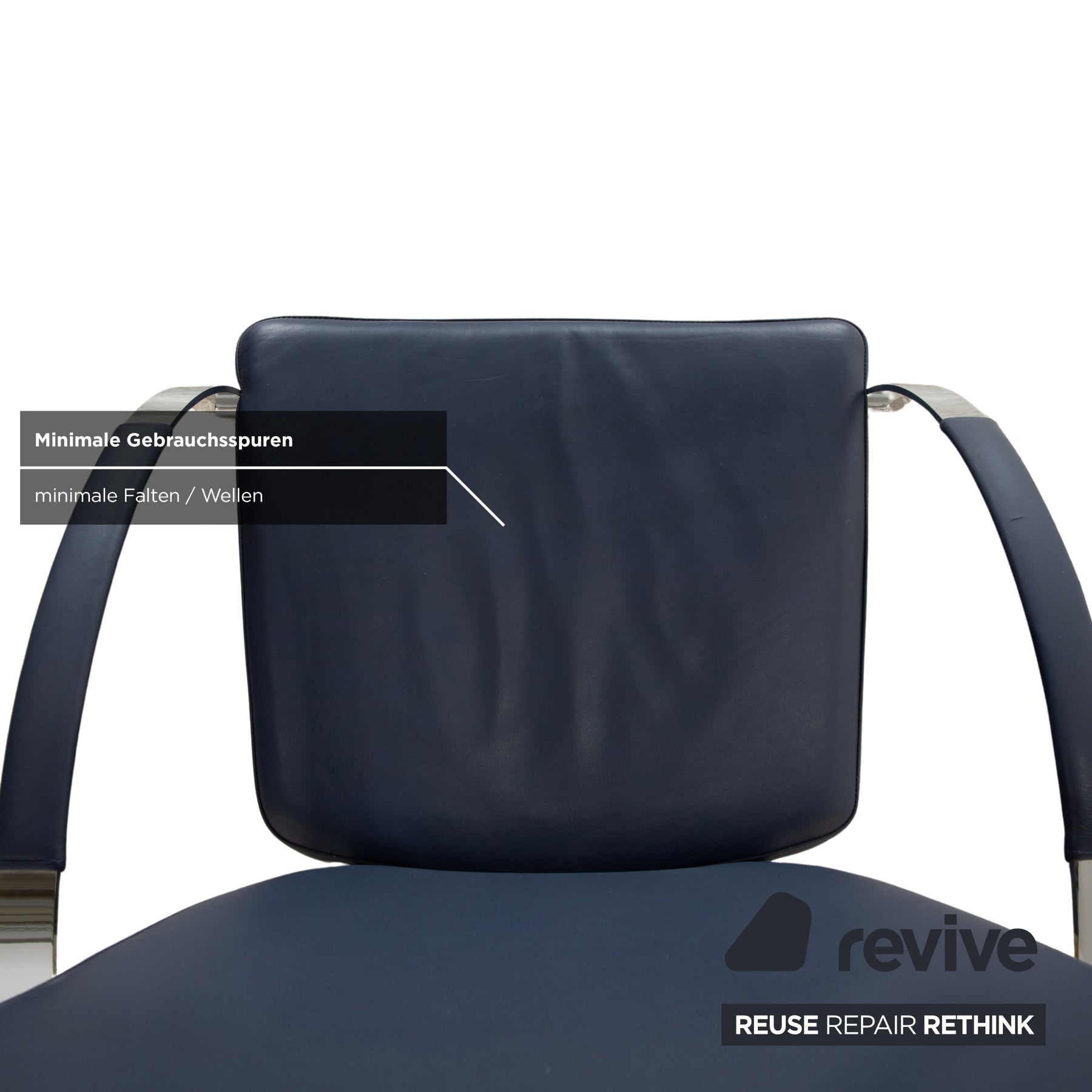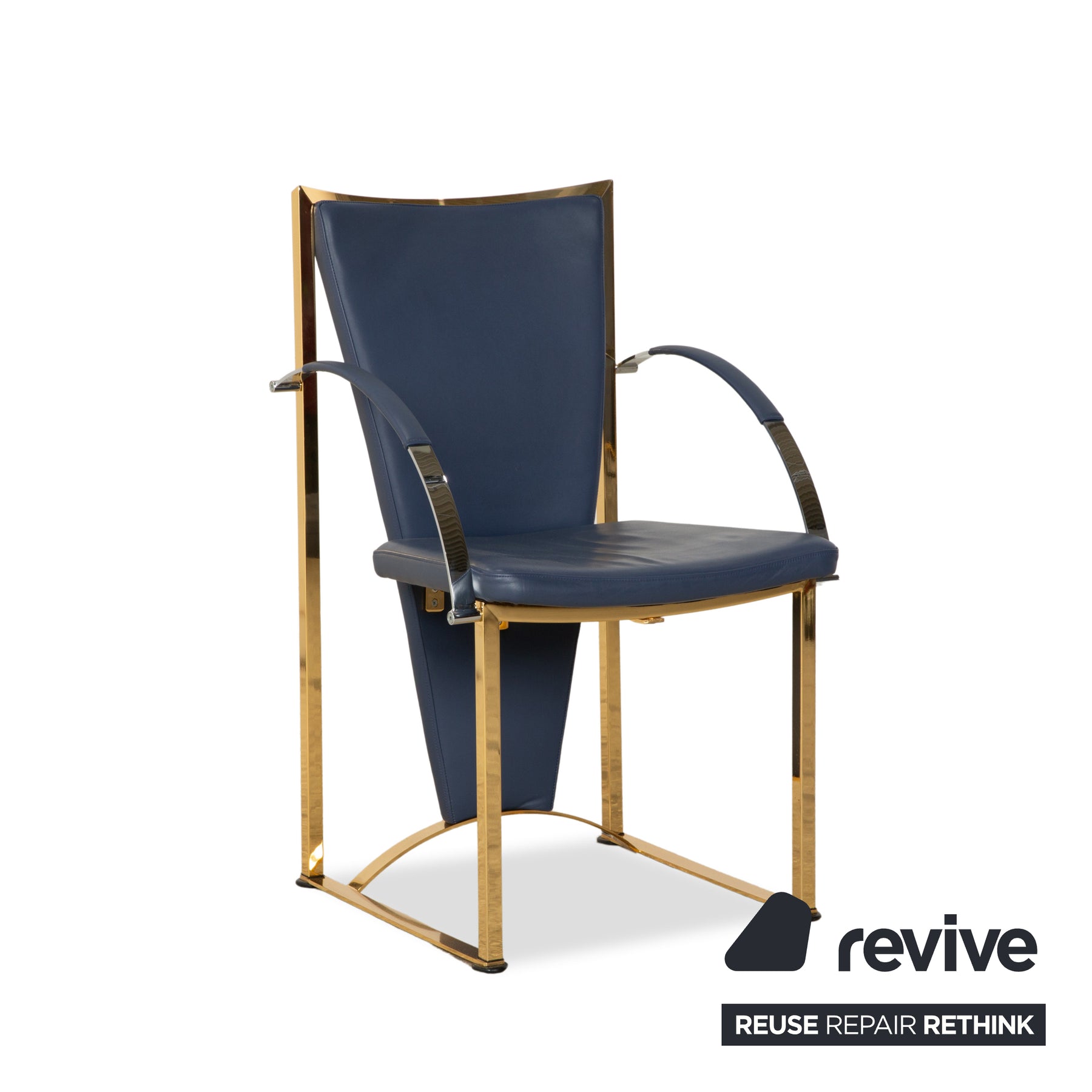 4er Garnitur Ronald Schmitt Leder Stuhl Blau Gold Metall
