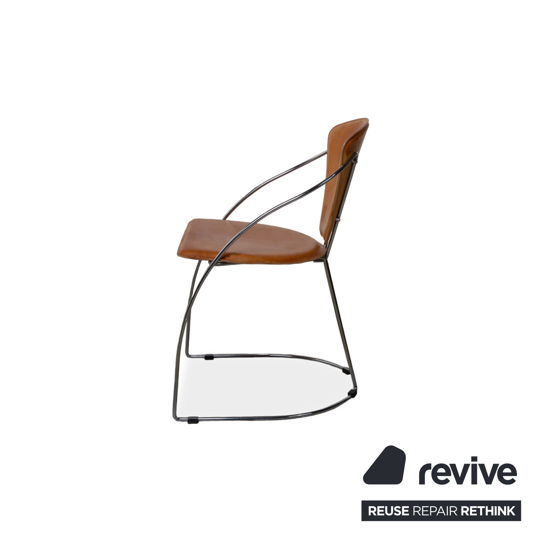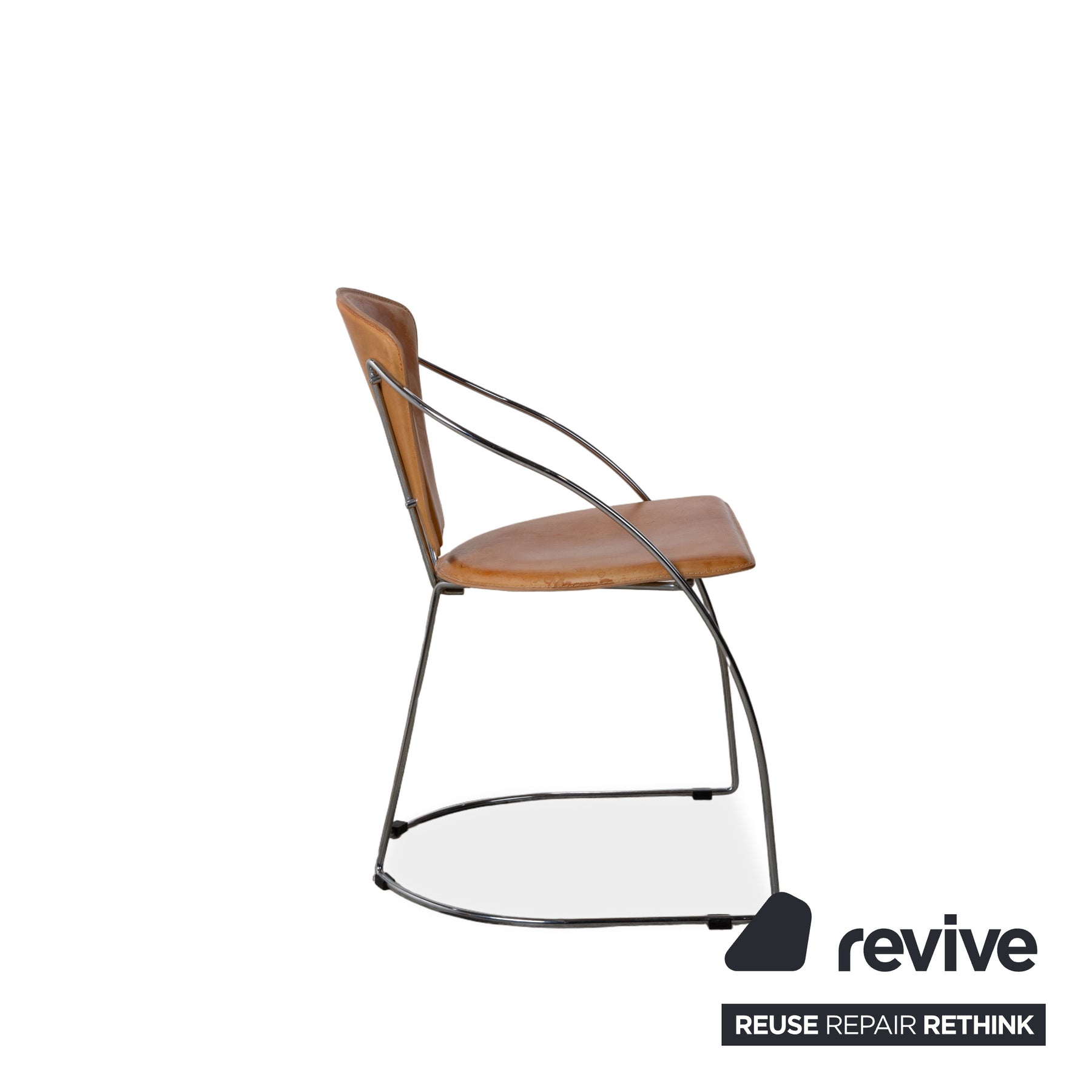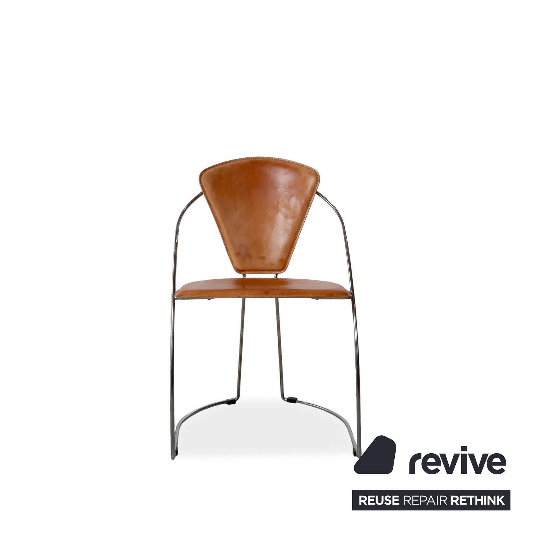 4er Set Interio Croma Stahlrohrstuhl Stühle Natur Leder Braun