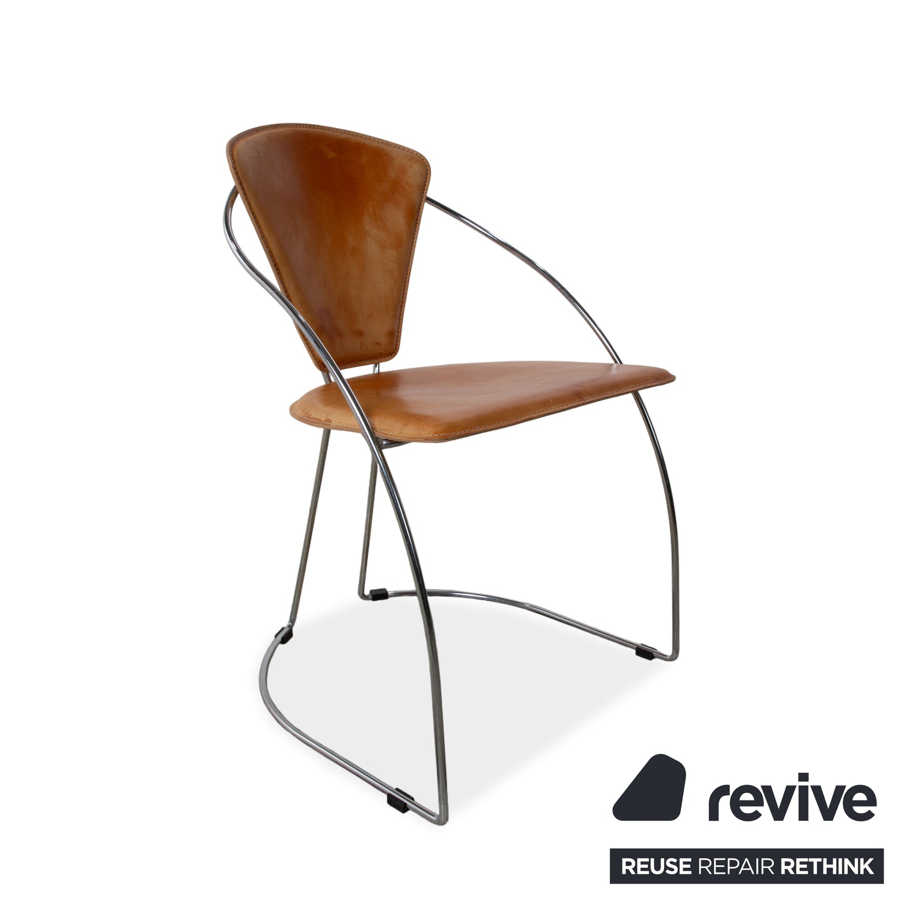 Uns fasziniert bei diesem Entwurf besonders die markante, fast schon fächerartige Rückenlehne, die dem Set eine dynamische und gleichzeitig luftige Optik verleiht. Die Kombination aus den geschwungenen Rohrgestellen und dem braunen Leder sorgt für einen stimmigen Kontrast, der in einem modernen Loft genauso gut funktioniert wie in einer klassisch eingerichteten Wohnung. Es ist ein echt zeitloses Ensemble, das durch die Patina des Leders über die Jahre nur noch besser wird und dabei immer diese besondere Präsenz im Raum behält.