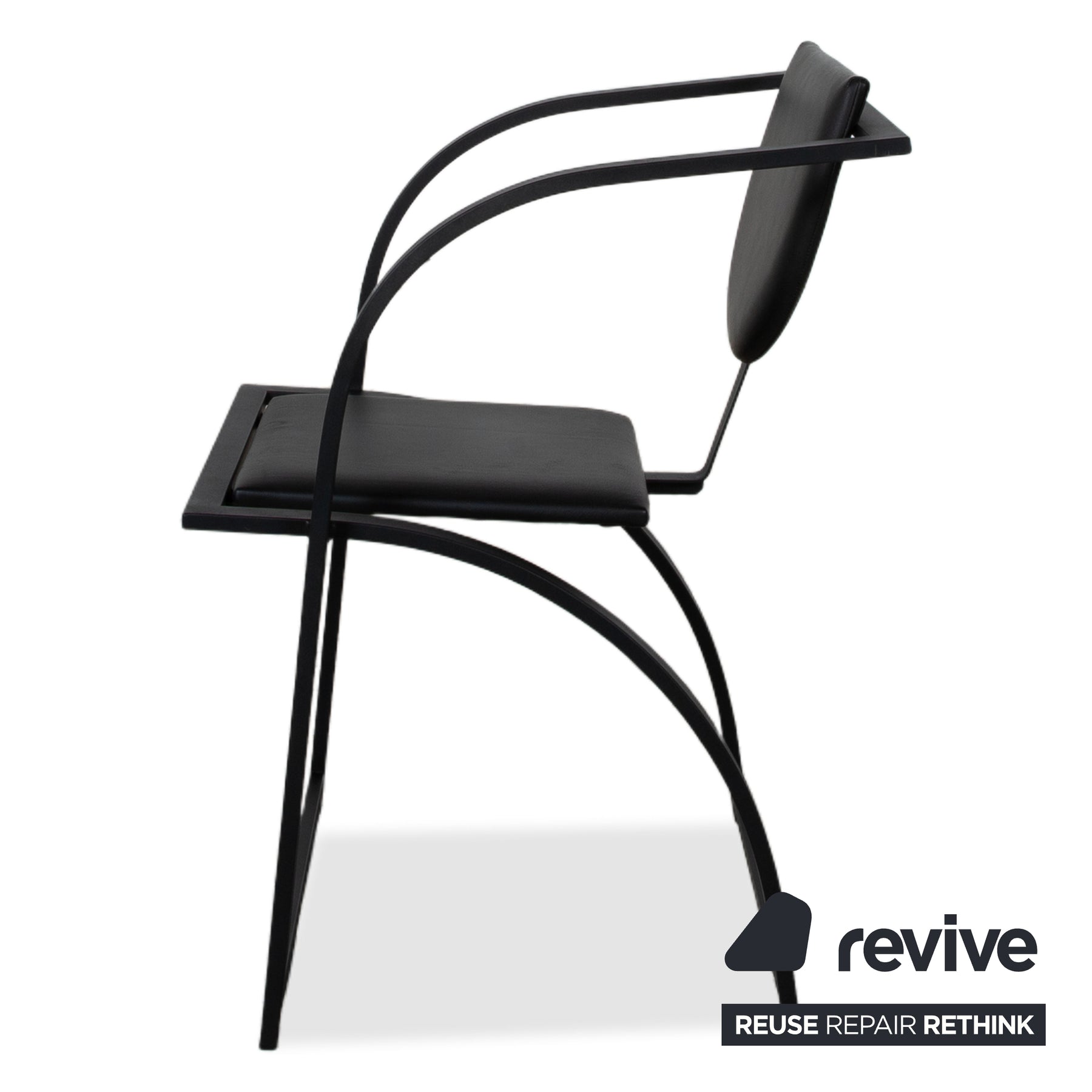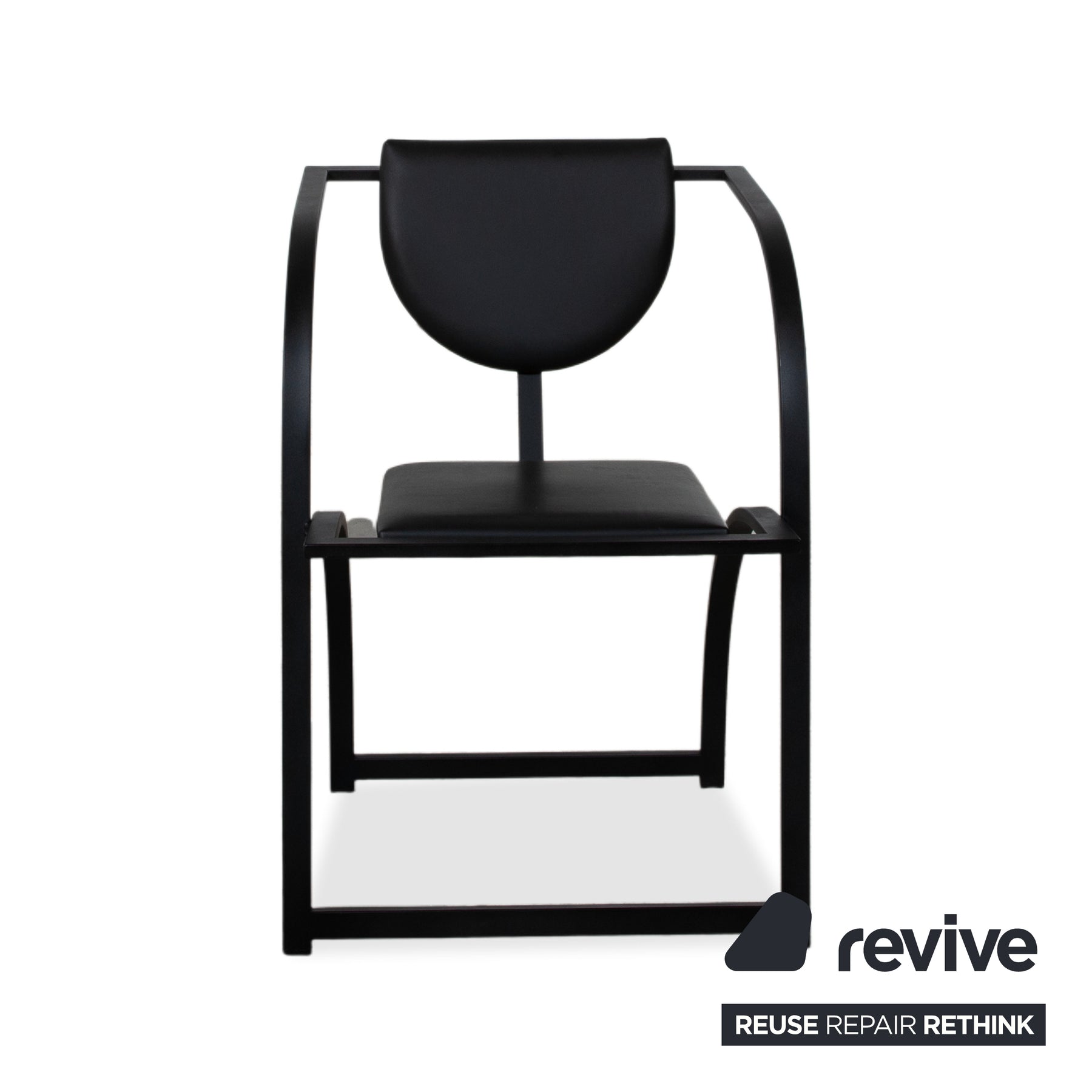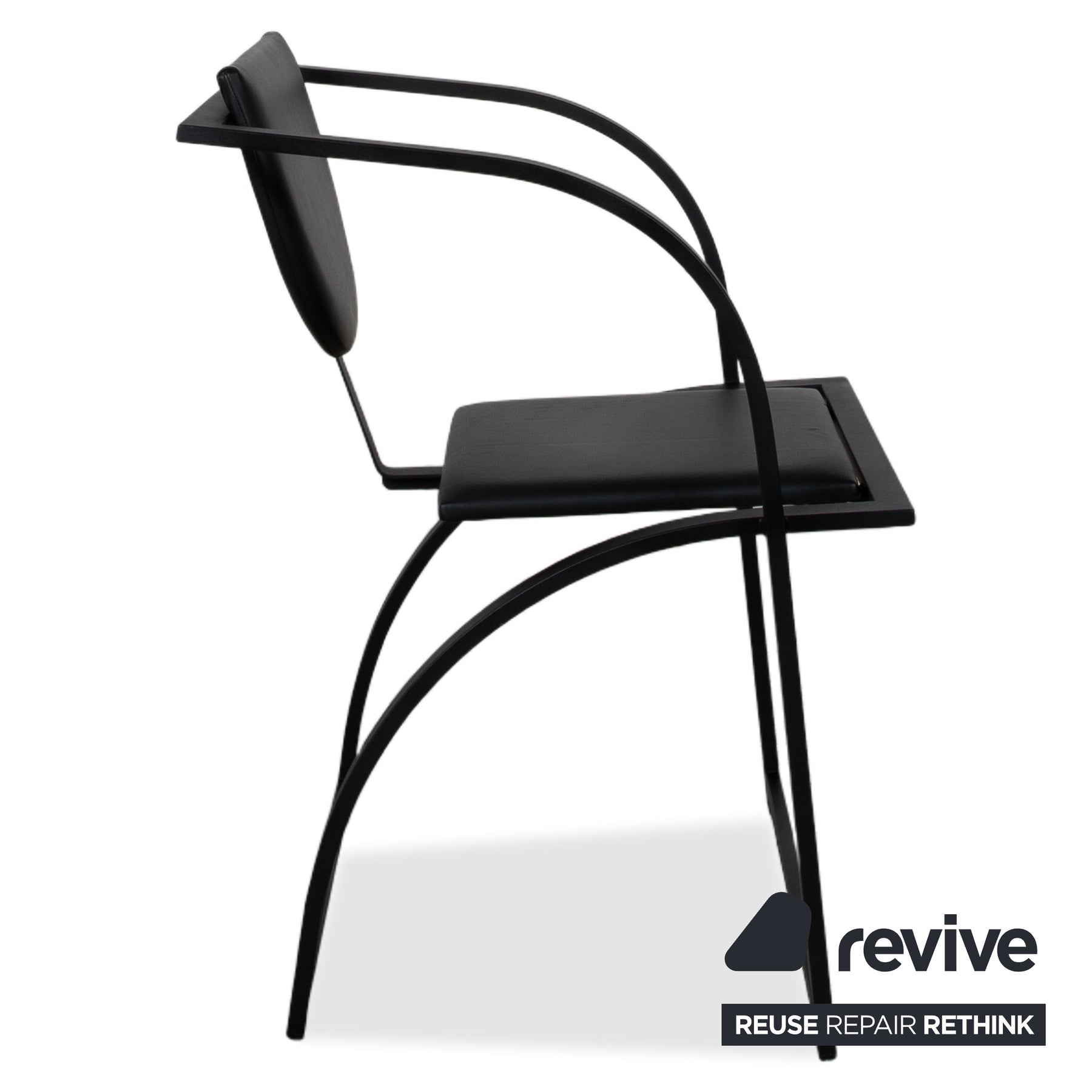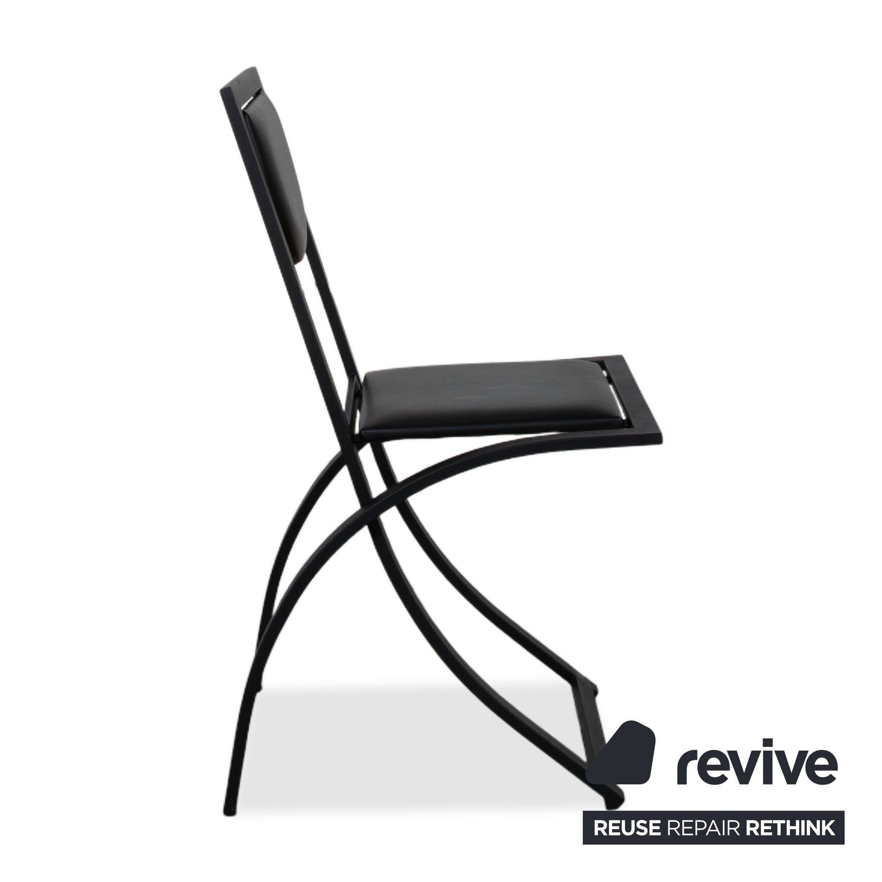 Hier holst du dir mit dieser 6er Garnitur KFF Cosinus ein exzellentes Beispiel für deutsches Postmoderne-Design in dein Esszimmer. Die Stühle, entworfen von Karl-Friedrich Förster, bestechen durch ihre markante, grafische Linienführung und die Kombination aus kühlem Metall und hochwertigem schwarzem Leder.