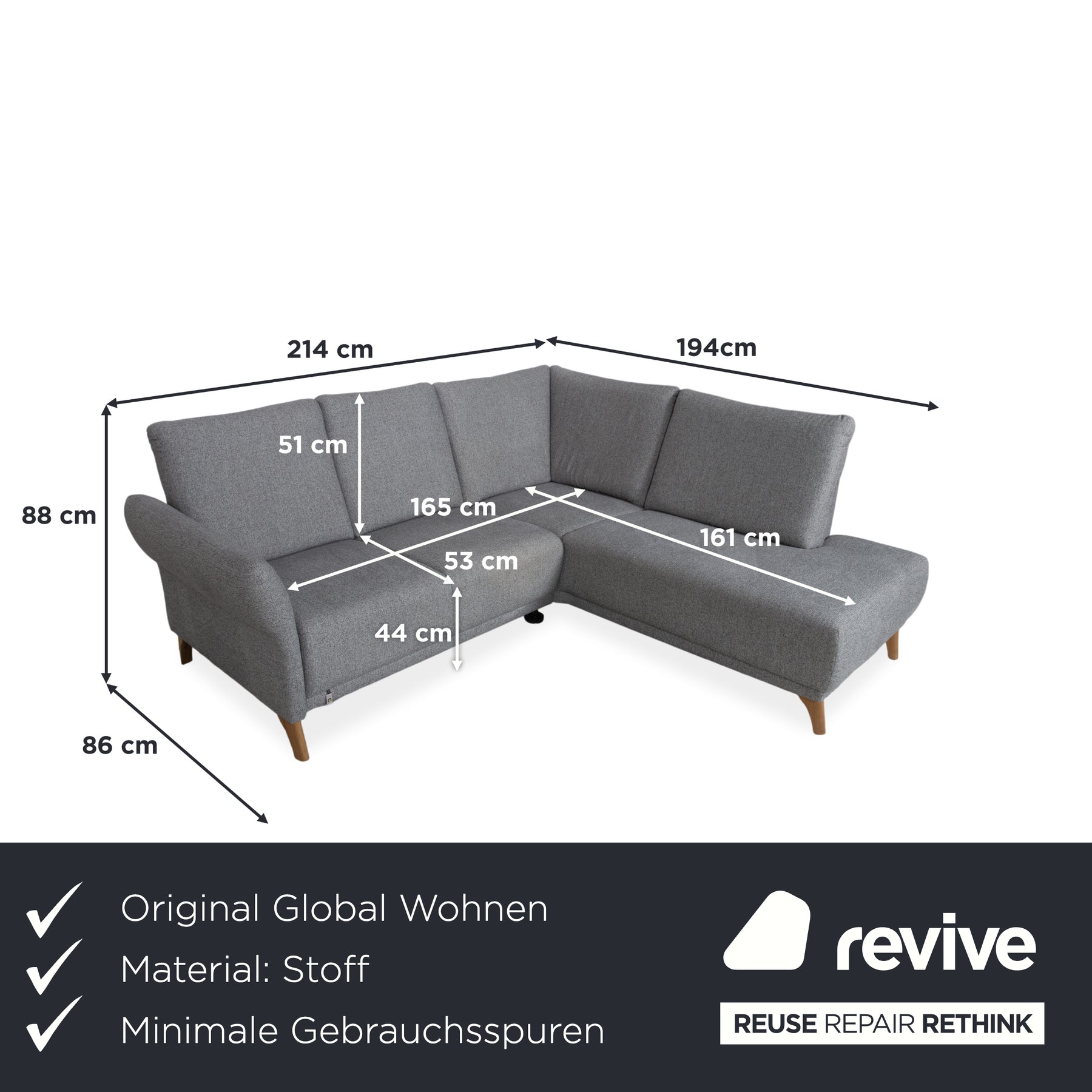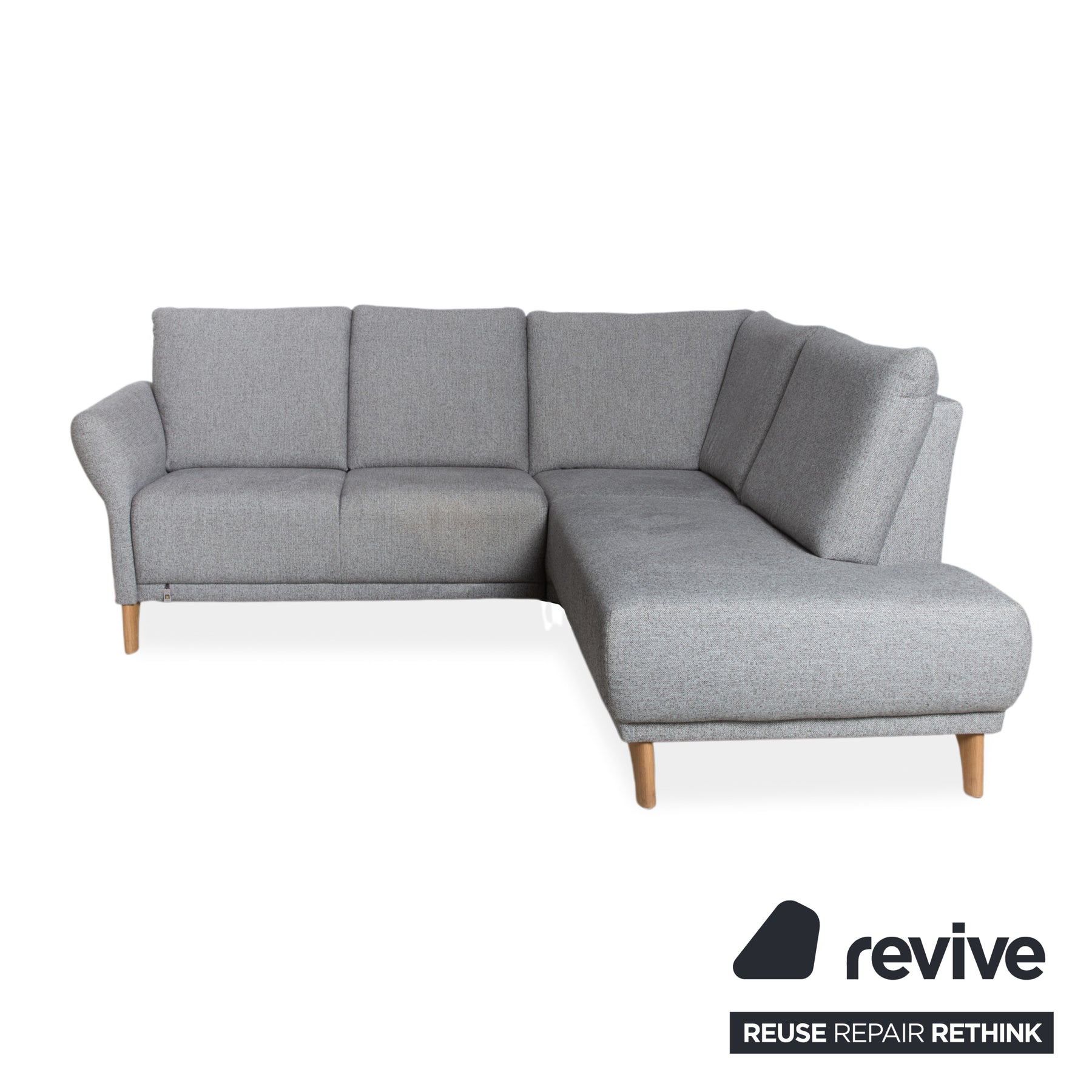 Global Wohnen Ecksofa Stoff Holz Grau Recamiere Rechts