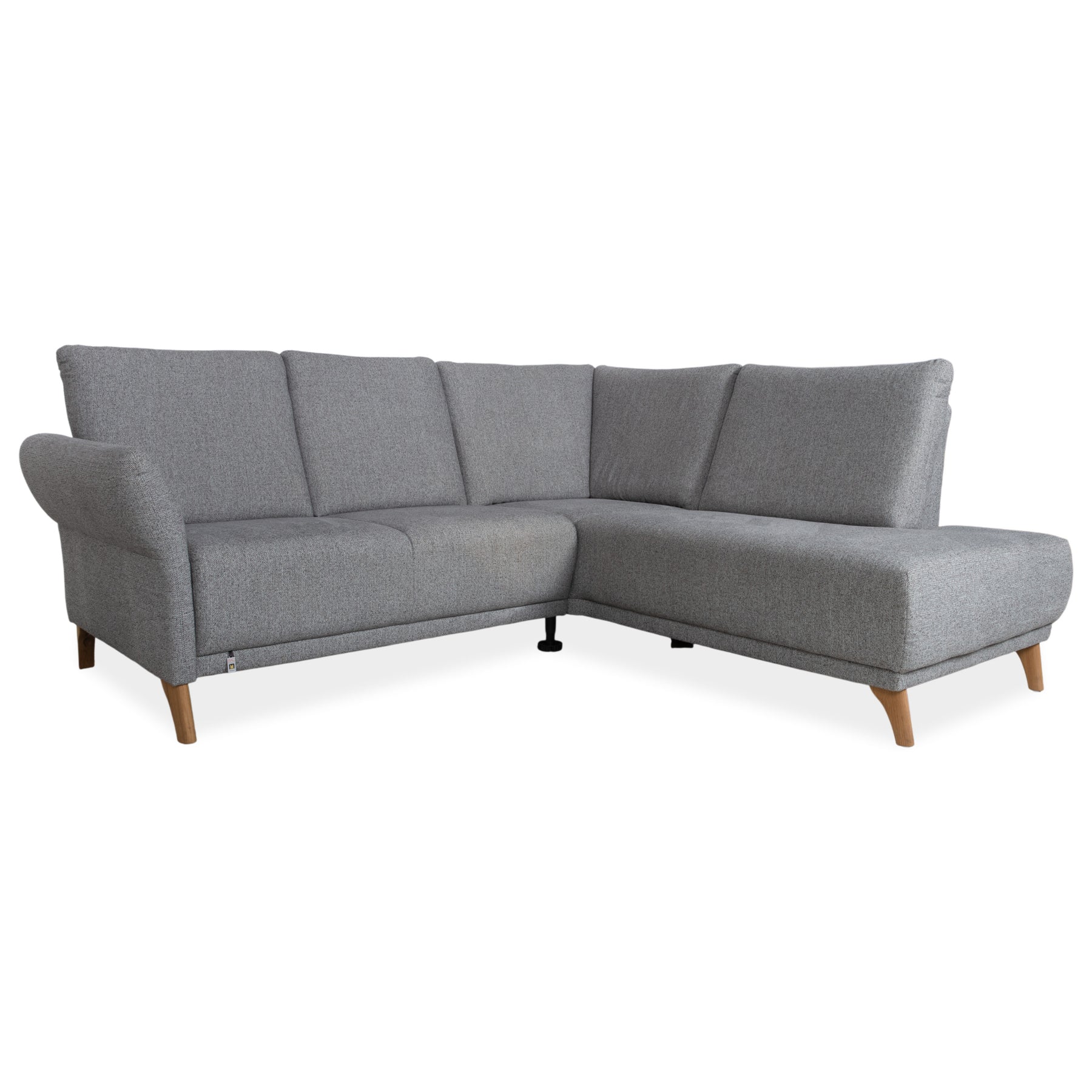 Dieses Global Wohnen Ecksofa ist die ideale Wahl für dich, wenn du ein Möbelstück suchst, das moderne Gemütlichkeit mit einer fast schon eher klassischen Silhouette verbindet. Der hellgraue Webstoff wirkt durch seine feine Struktur lebendig und bleibt dabei sehr gut für verschiedene Einrichtungsstile kombinierbar, während die konisch zulaufenden Holzfüße dem Sofa einen stabilen Stand und eine natürliche, skandinavische Note verleihen. Die leicht geschwungene Armlehnen sorgt für diesen klassischen Look.