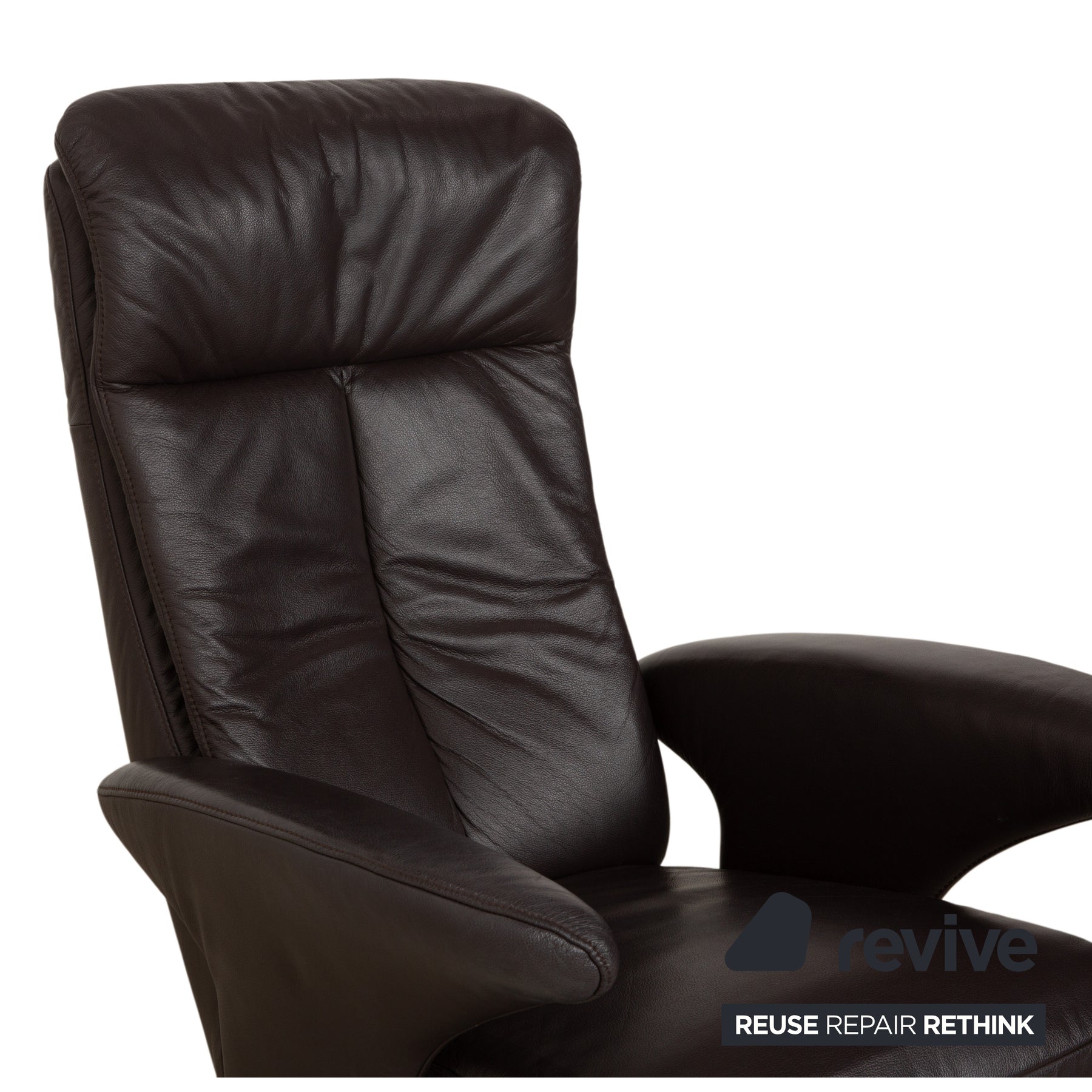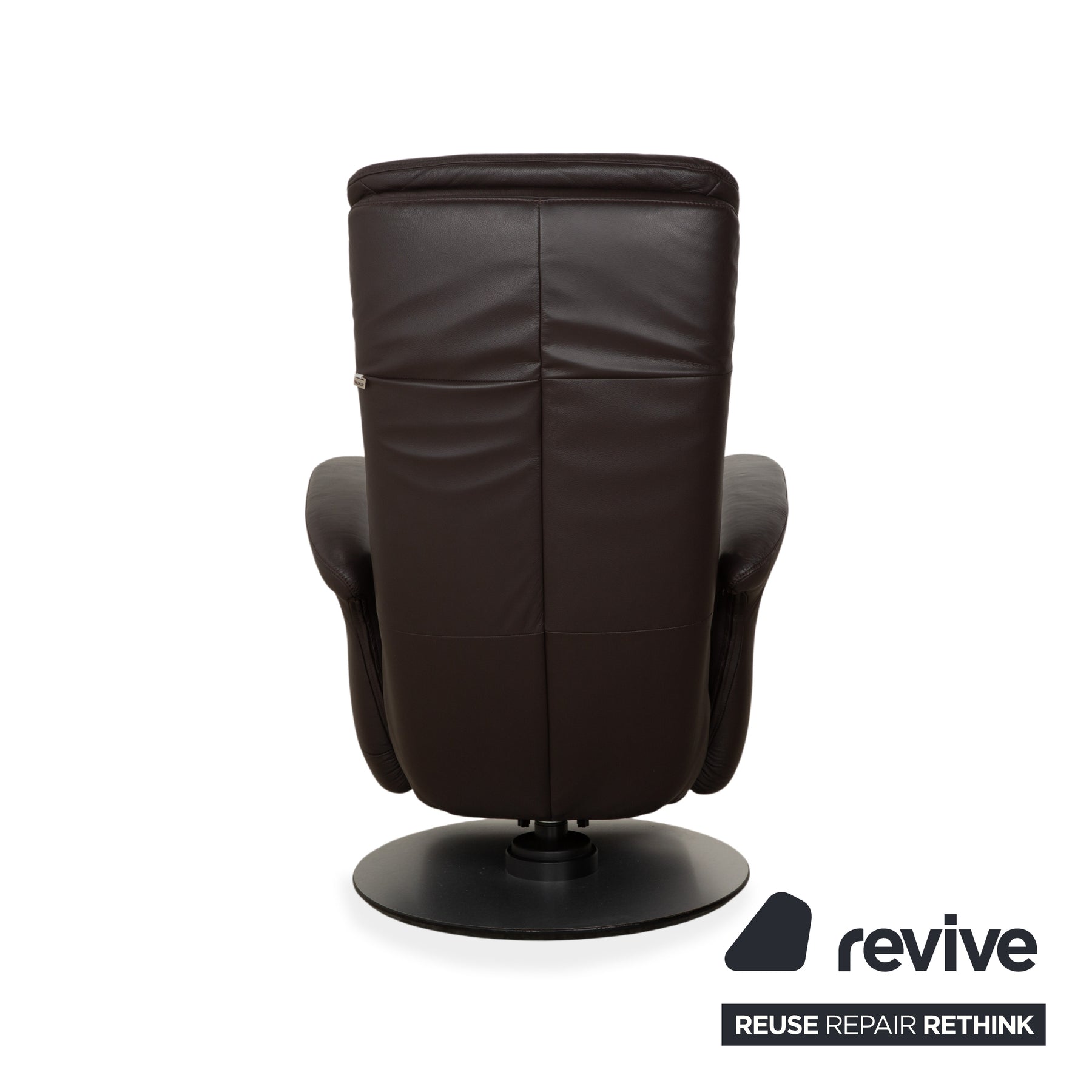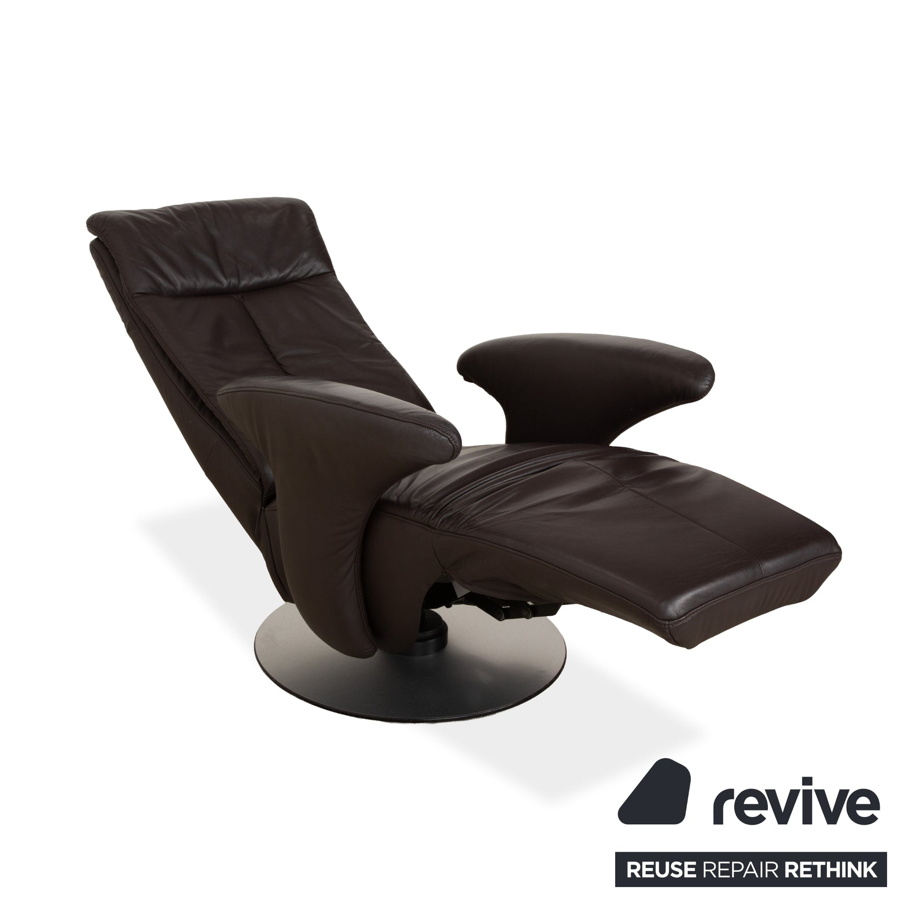 Der braune Lederbezug wirkt warm, zeitlos und besonders edel. Das hochwertige Leder ist angenehm weich, langlebig und verleiht dem Sessel eine wertige Ausstrahlung. Die hohe Rückenlehne sowie die großzügigen Armlehnen bieten optimalen Halt und unterstützen eine entspannte Sitzhaltung.