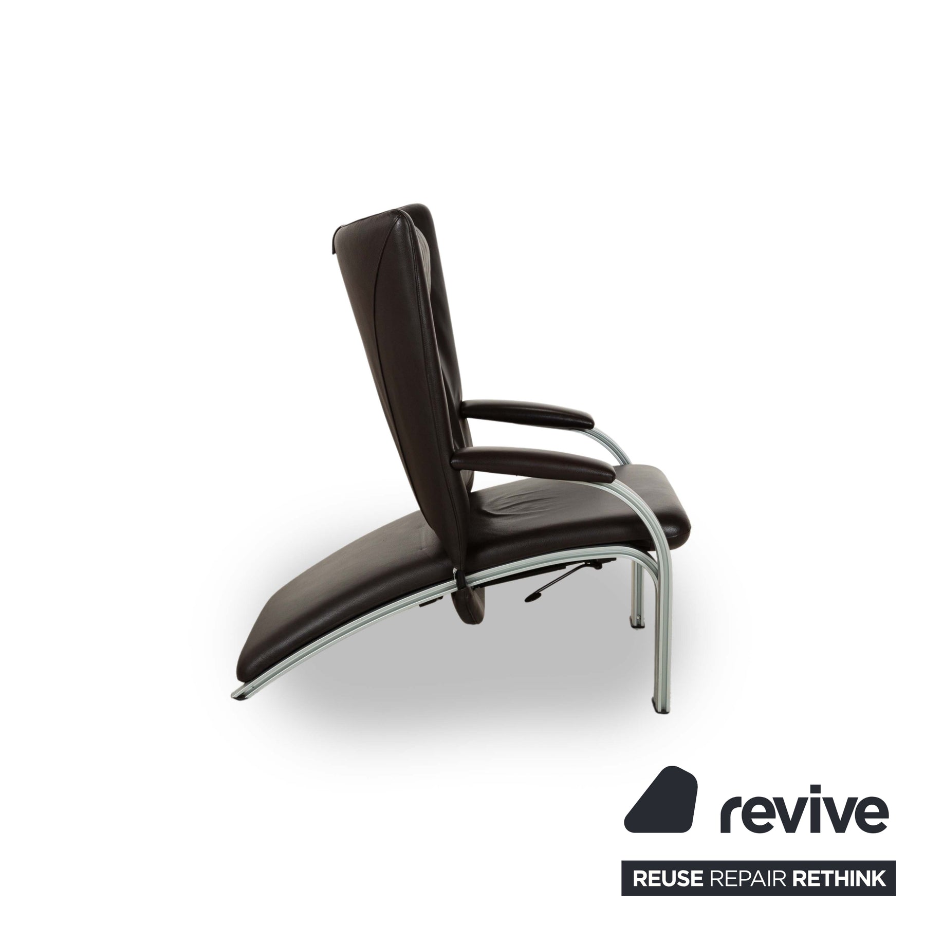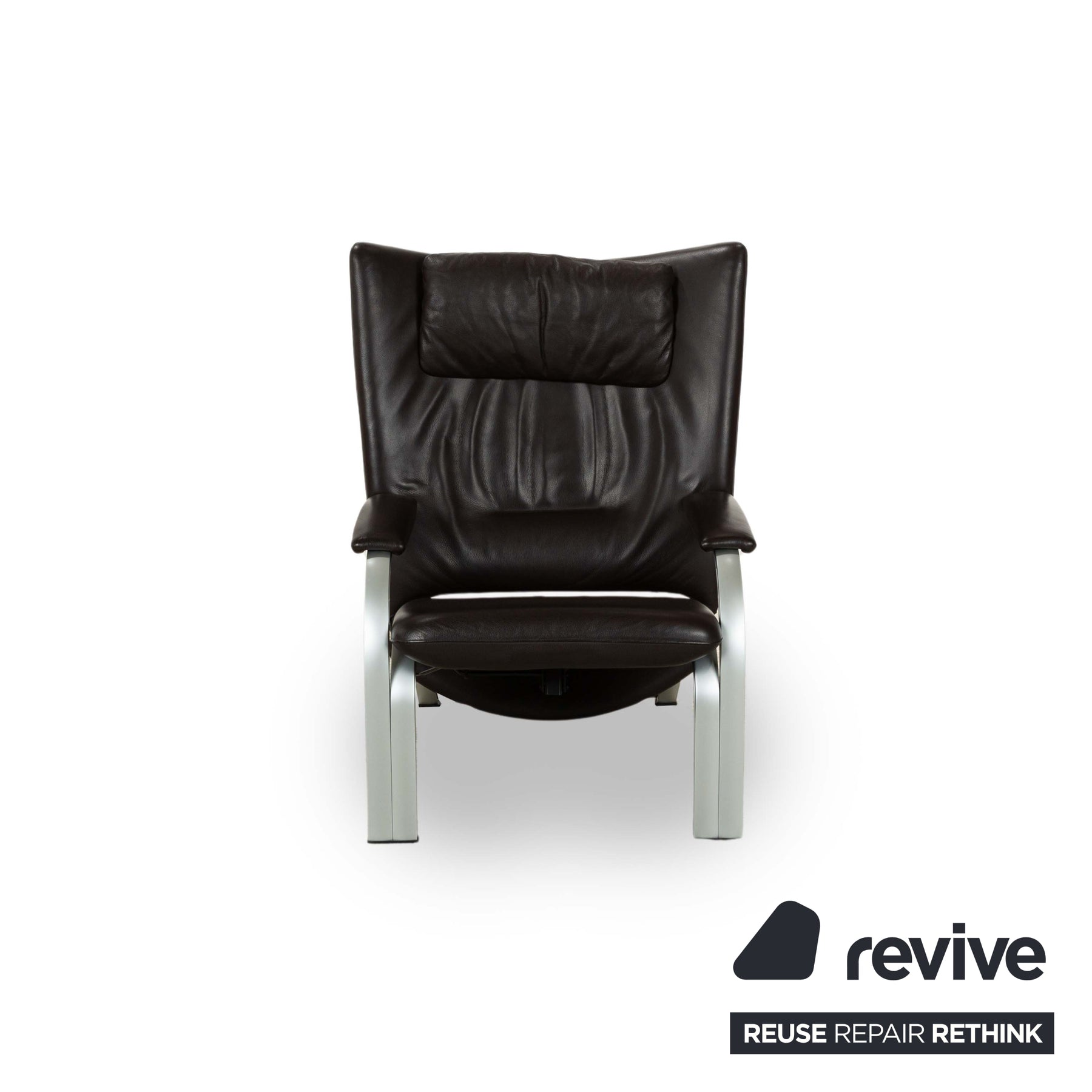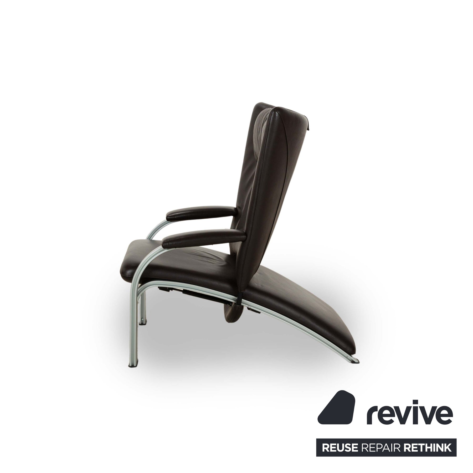 Dieser markante Sessel vereint modernes Design mit optimalem Sitzkomfort. Der Bezug aus dunkelbraunem Leder verleiht ihm eine luxuriöse Ausstrahlung, während die gepolsterte Rückenlehne mit integrierter Kopfstütze eine ergonomische Sitzhaltung unterstützt. Die geschwungenen Armlehnen und das stabile Gestell aus gebürstetem Metall sorgen für einen stilvollen Kontrast und hohe Langlebigkeit. Perfekt für Wohnbereiche, Büros oder Lounges, bietet dieser Sessel eine ideale Kombination aus Eleganz und Funktionalität.