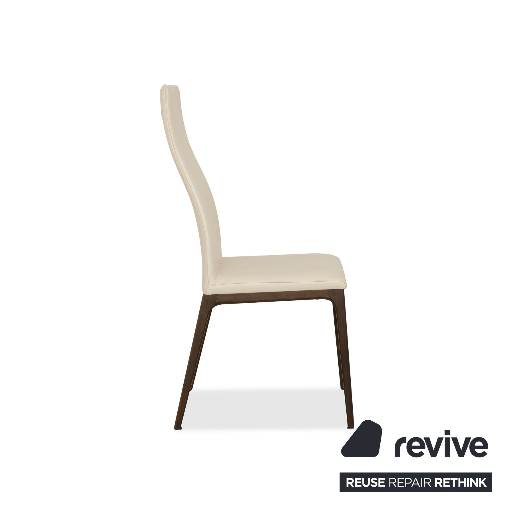 4er Garnitur Arcadia Cattelan Italia Leder Stuhl Creme Weiß Holz Esszimmer