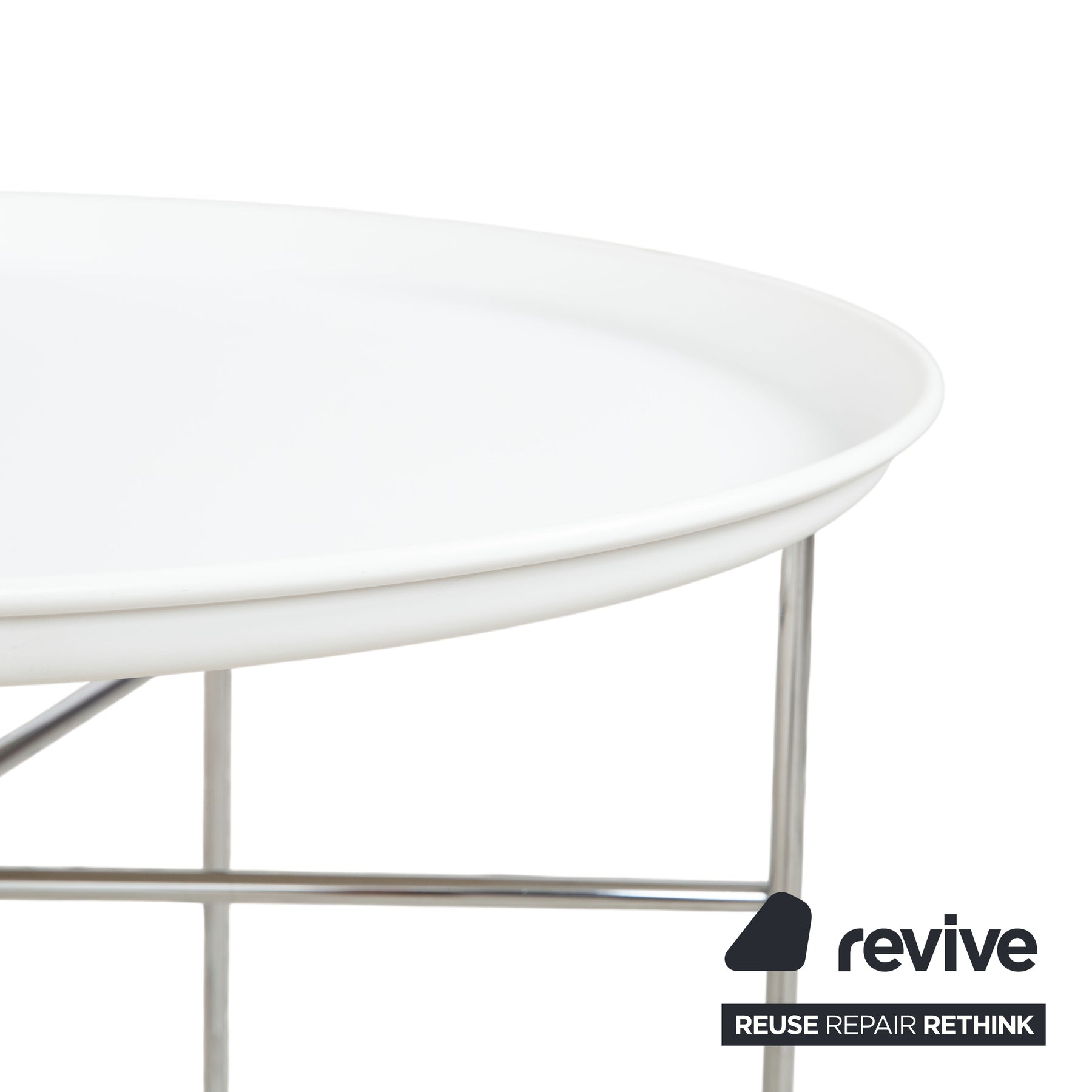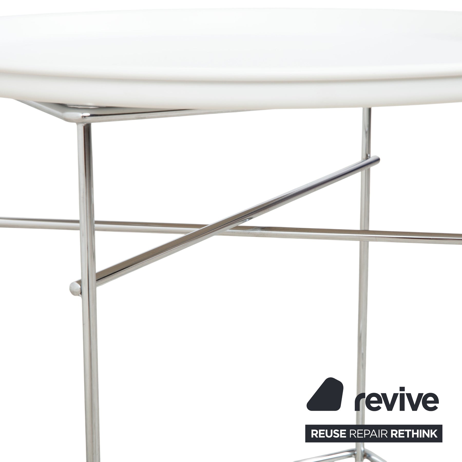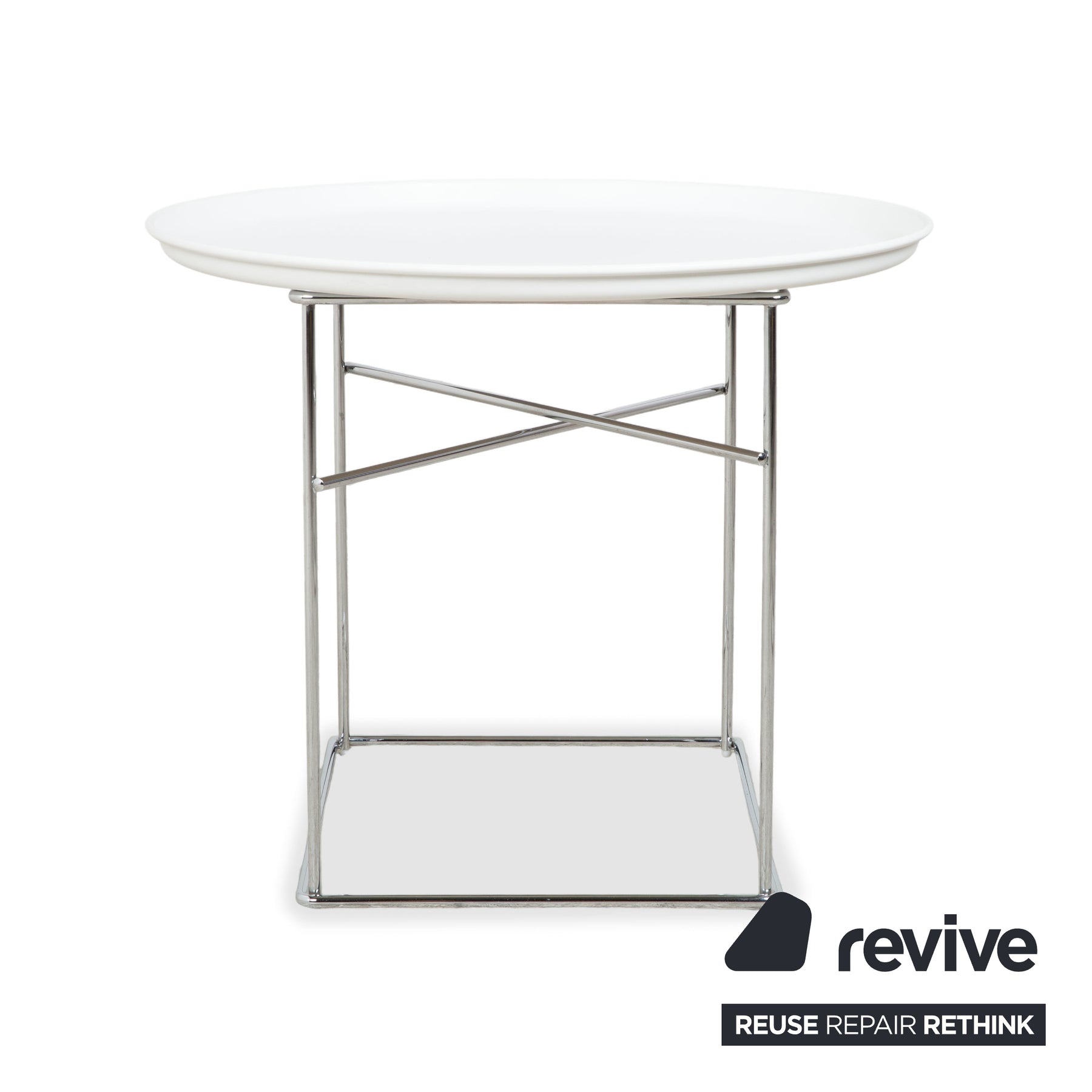 Besonders spannend ist der Kontrast zwischen der weißen Kunststoffschale, die eine klare und cleane Ästhetik ausstrahlt, und dem glänzenden Chrom-Gestell. Die feinen Metallverstrebungen lassen die Tischplatte fast über dem Boden schweben und sorgen für eine visuelle Leichtigkeit, die typisch für die Entwürfe von B&B Italia ist. Der Fat-Fat ist eben kein gewöhnlicher Tisch, sondern ein echtes Design-Statement, das zeigt, wie gut Funktionalität und eine skulpturale Formsprache zusammenpassen. Er ist pflegeleicht, langlebig und durch seine neutrale Farbgebung ein echtes Kombinationstalent für moderne Interieurs.