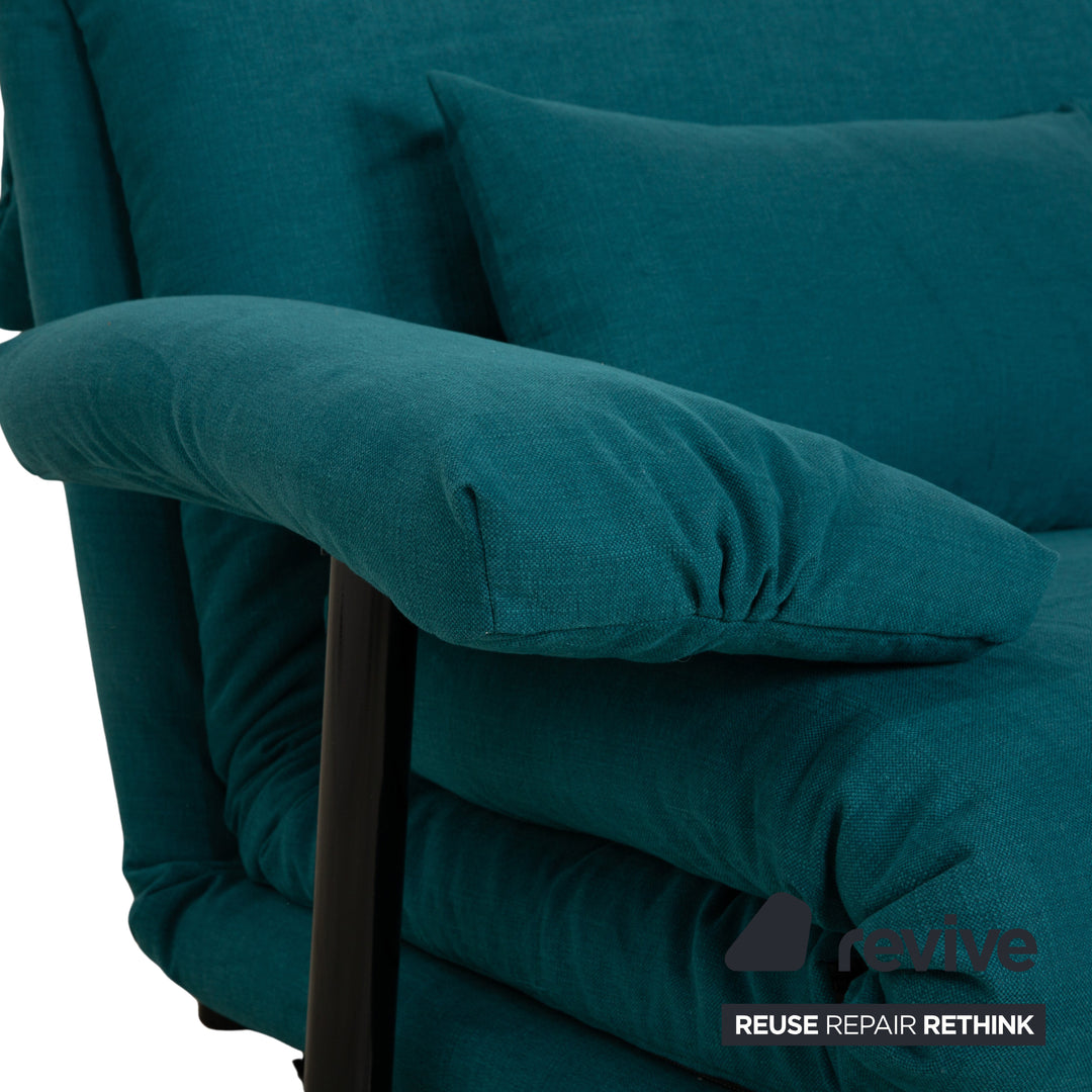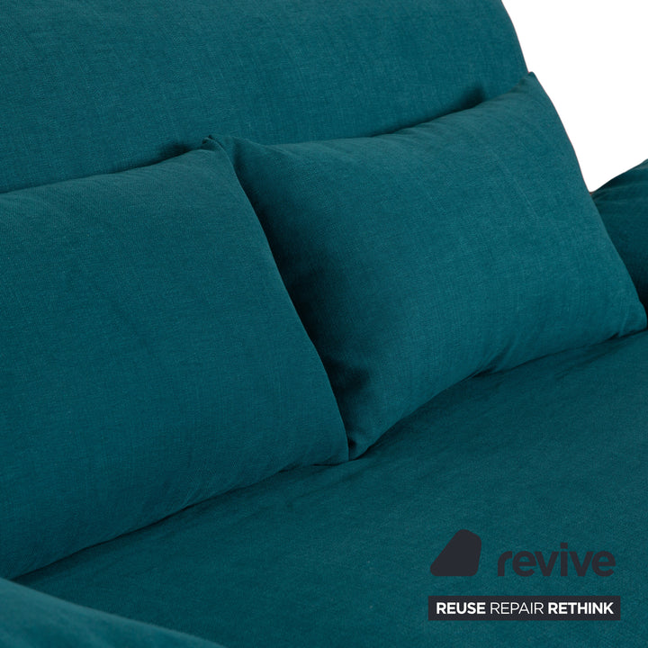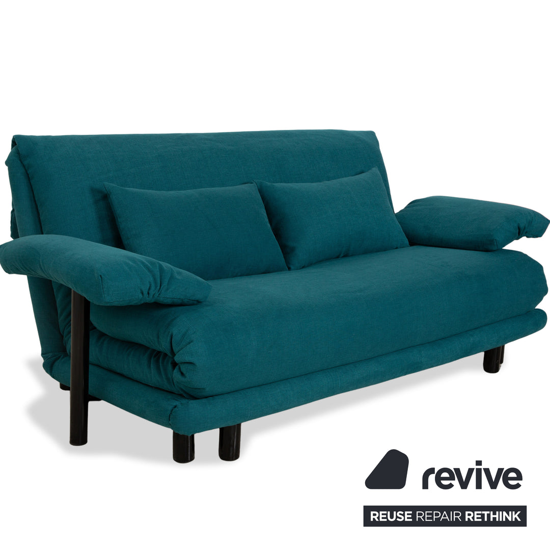 Ligne Roset Multy Stoff Dreisitzer Grün Blau Petrol Schlaffunktion Neubezug Armlehnen