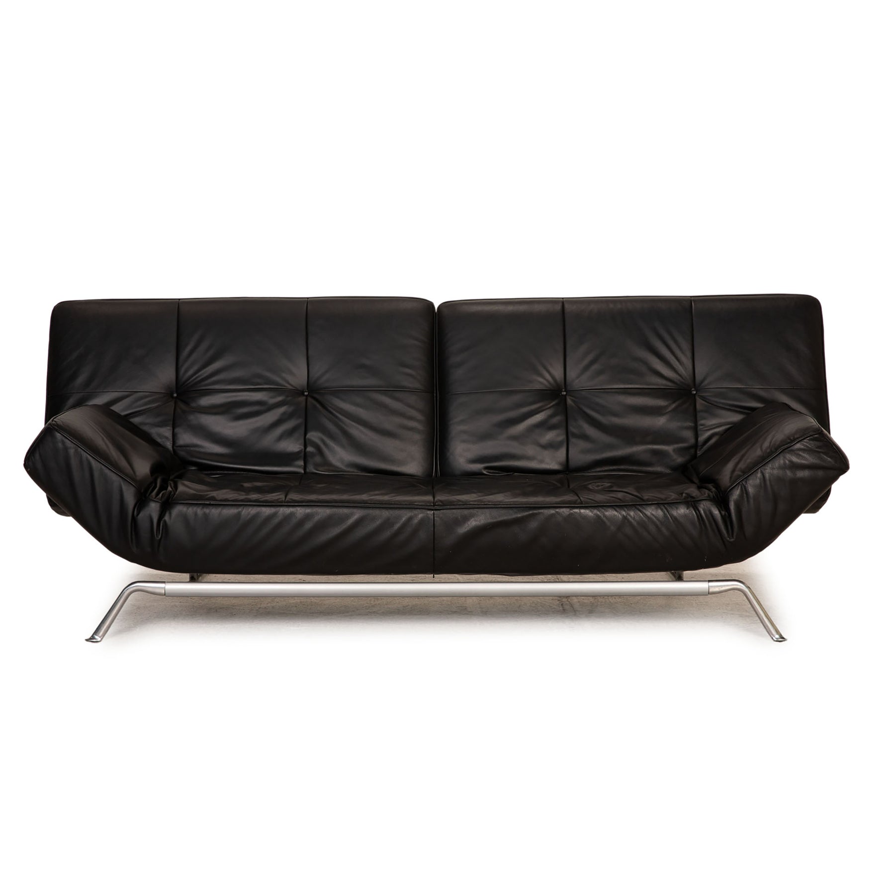 ligne roset Smala Leder Sofa Schwarz Dreisitzer Couch Funktion Schlaffunktion