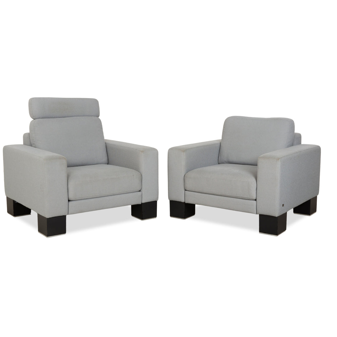 Rolf Benz EGO Stoff 2x Sessel Hellgrau Blau Kopfstütze