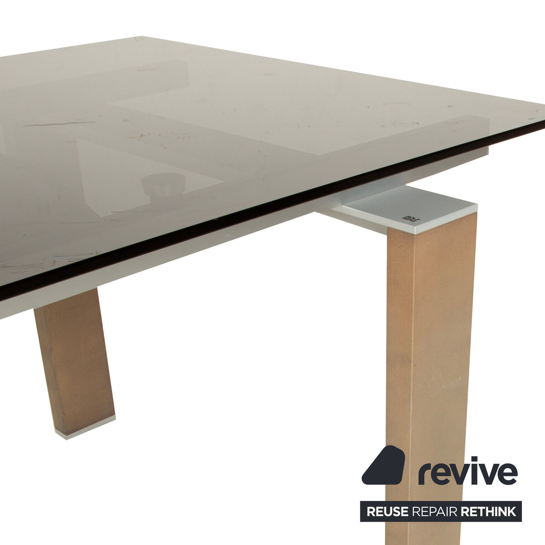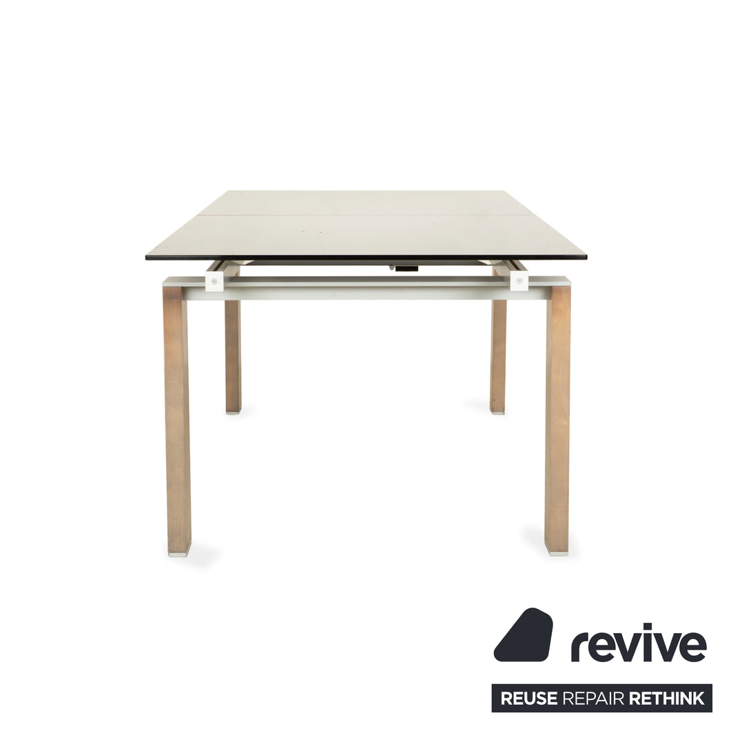 Rolf Benz Glas Esstisch Braun Ausziehfunktion Holz Rauchglas Nussbaum 220 x 75 x 98 cm