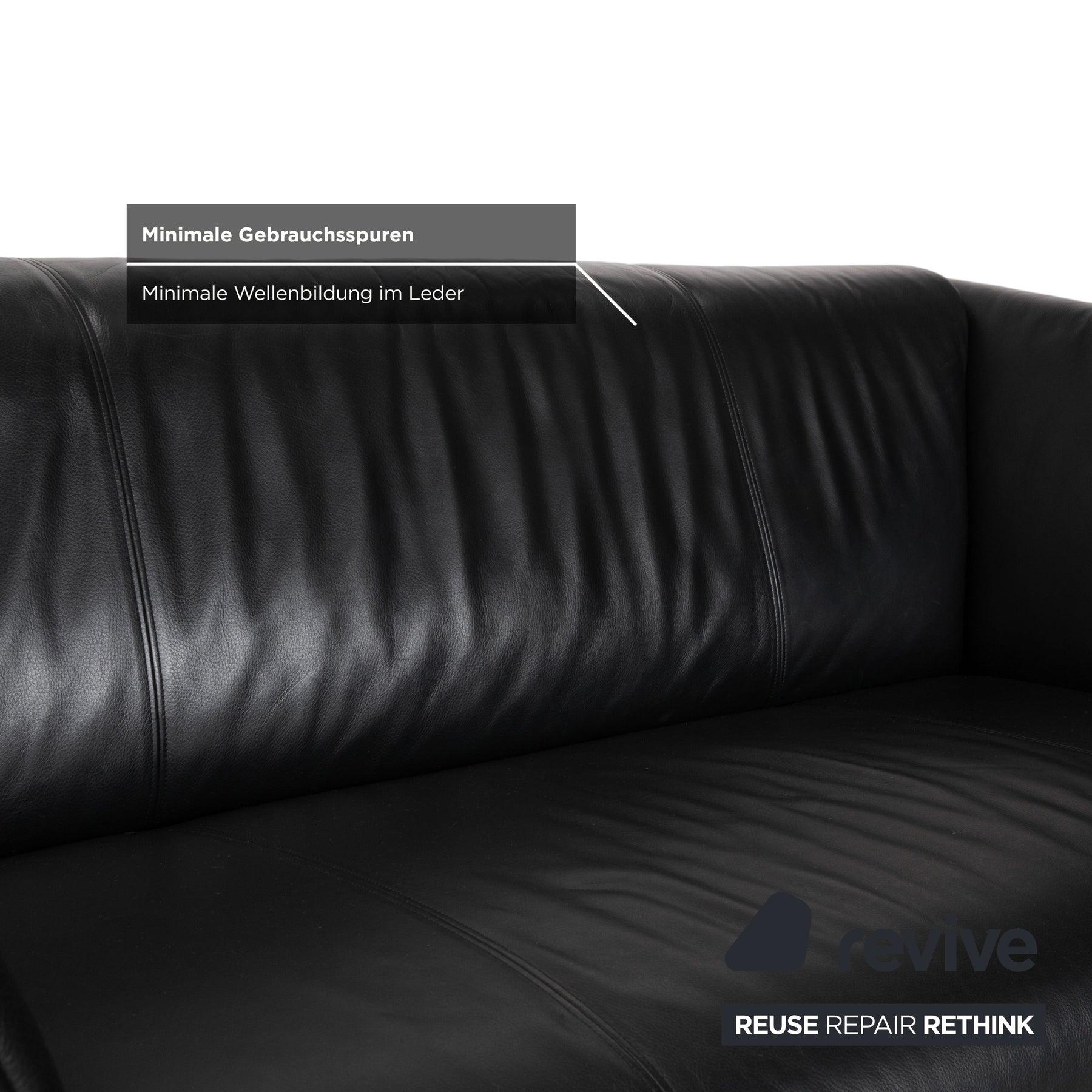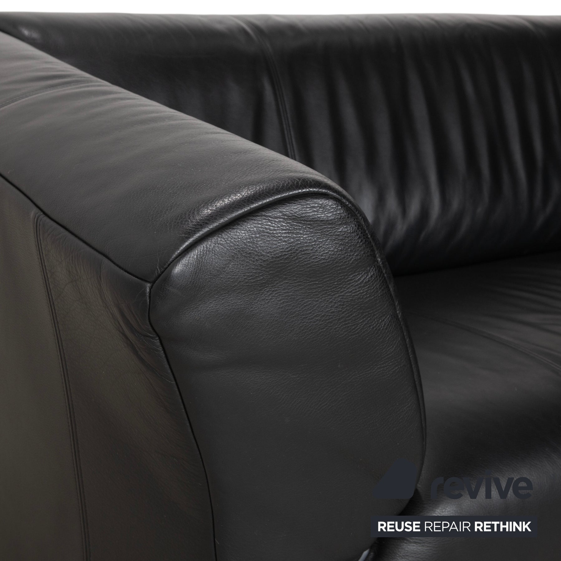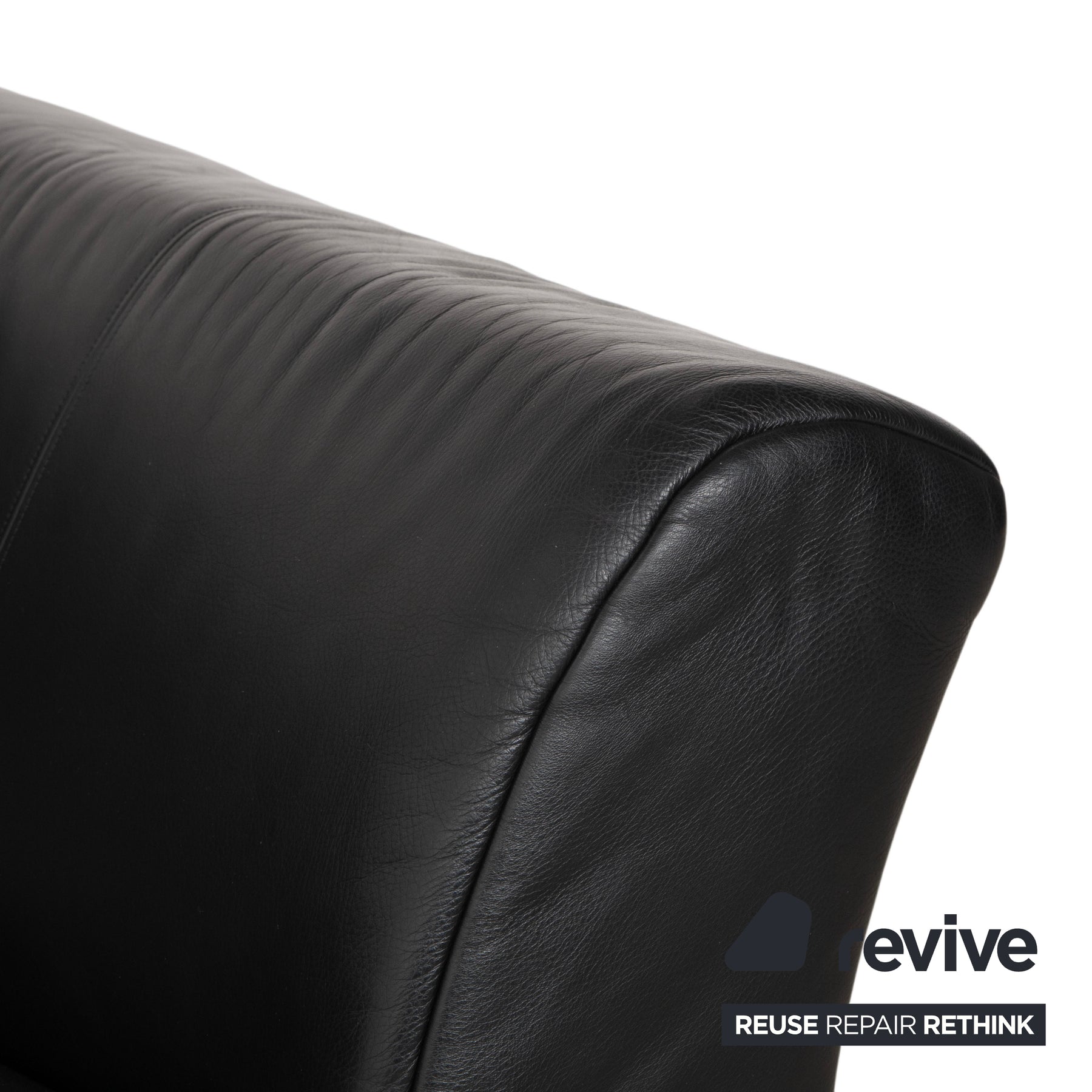Der schwarze Lederbezug wirkt edel, ruhig und zugleich ausdrucksstark. Die tiefe Farbgebung unterstreicht den hochwertigen Charakter des Sofas und lässt sich vielseitig kombinieren. Das fein verarbeitete Leder fühlt sich angenehm weich an.