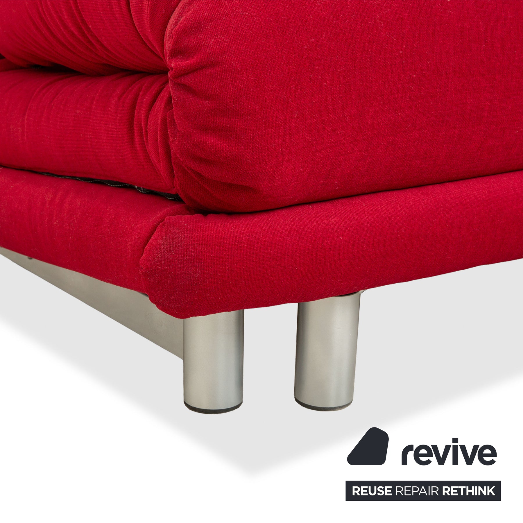 Das Multy Sofa von Ligne Roset wurde mit dem hochwertigen Stoff MALOU 138 in kräftigem Rot neu bezogen und steht auf einem eleganten silberfarbenen Gestell. Der Dreisitzer vereint modernes Design, Funktionalität und hohen Komfort in einem harmonischen Gesamtbild.