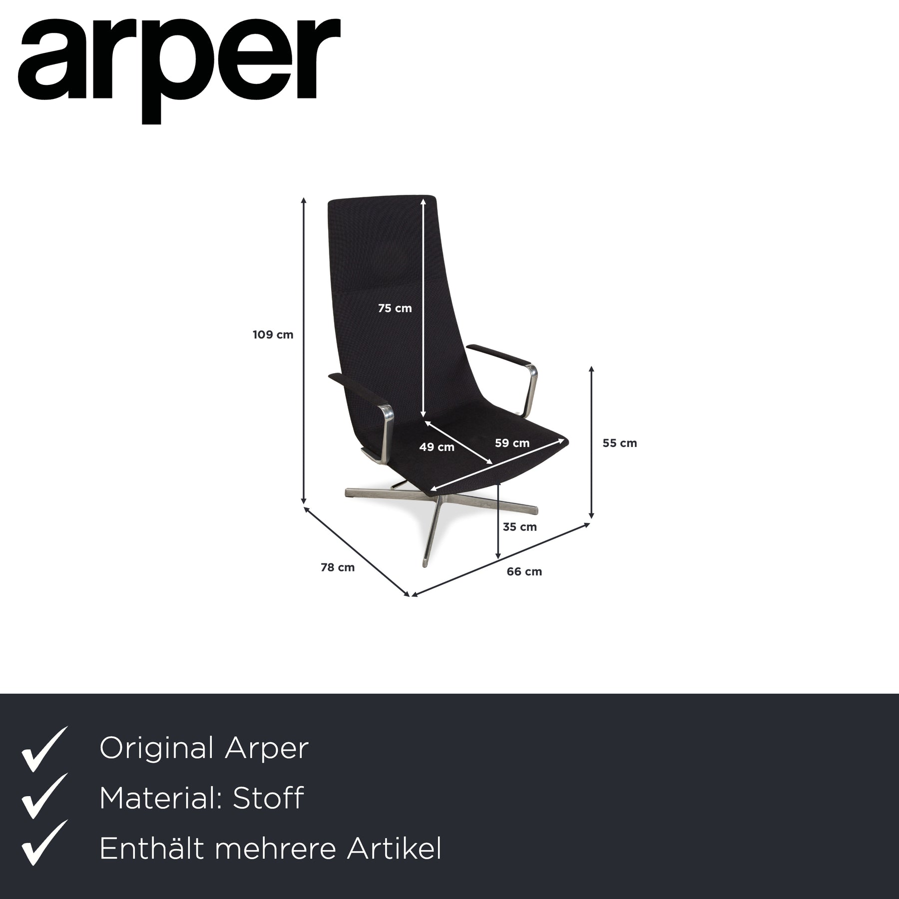Arper Catifa 46 Stoff 2x Sessel inkl. Hocker Dunkelgrau Blau manuelle Funktion