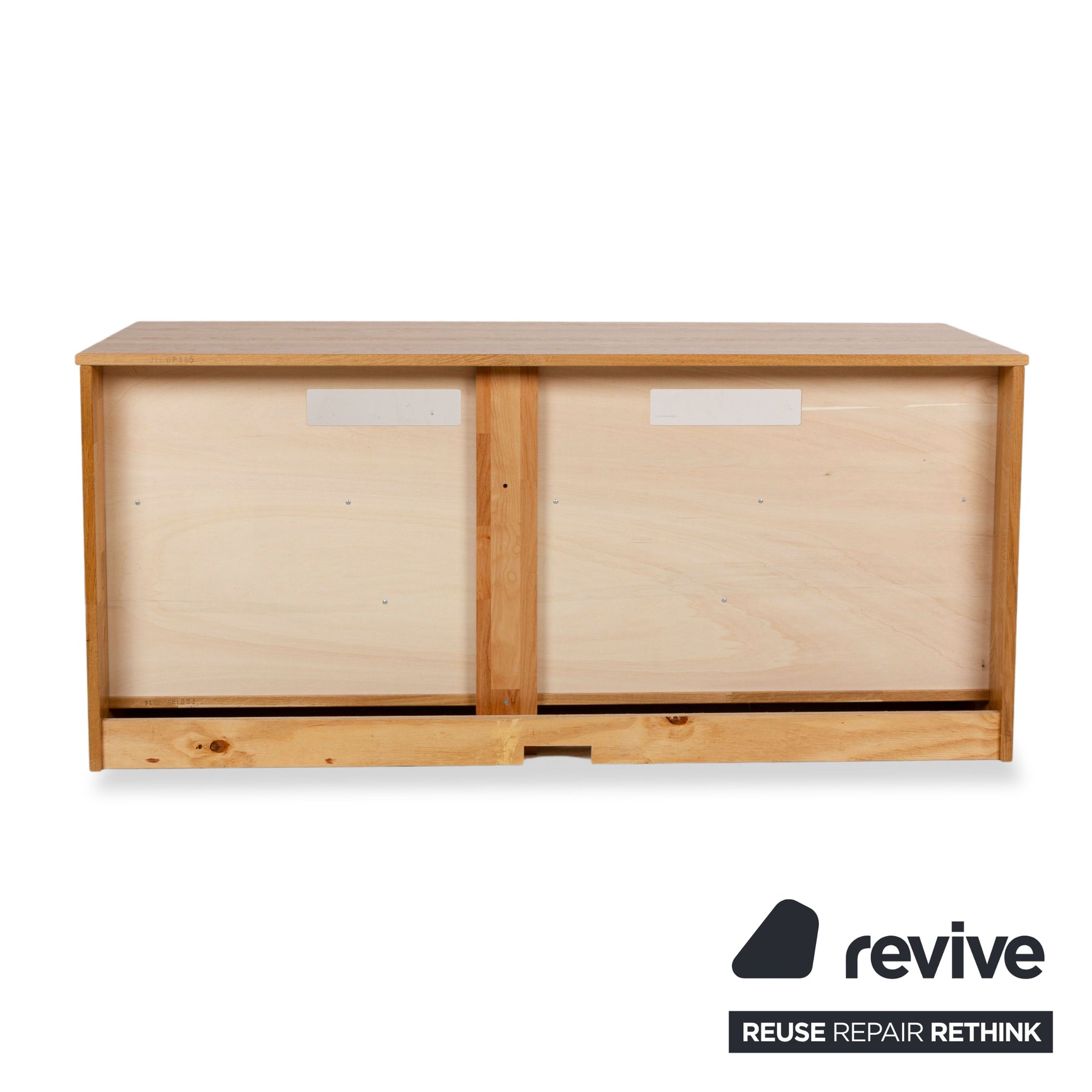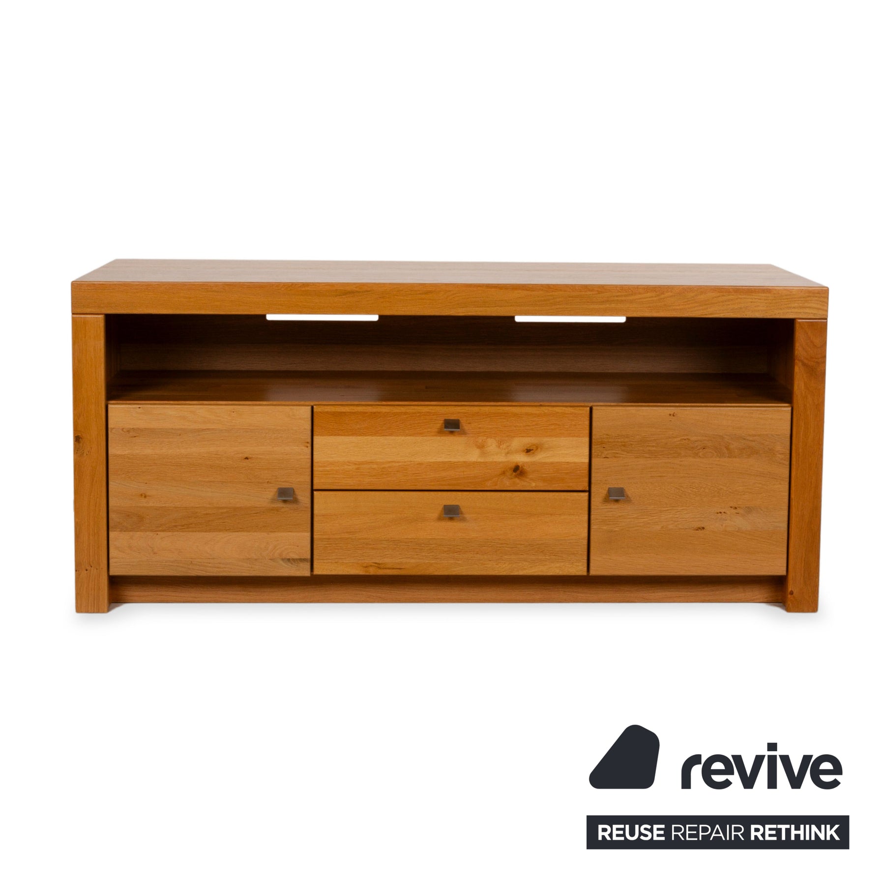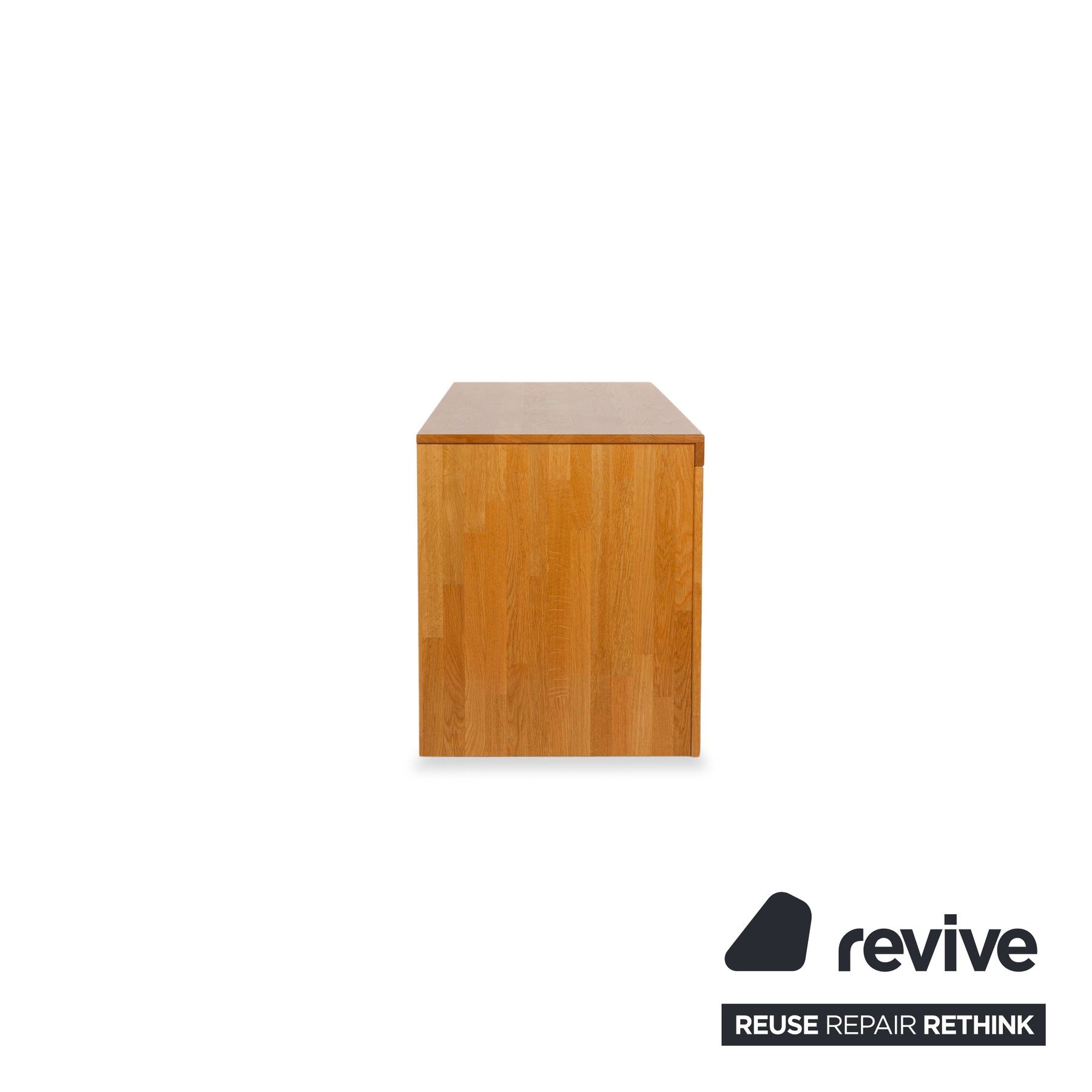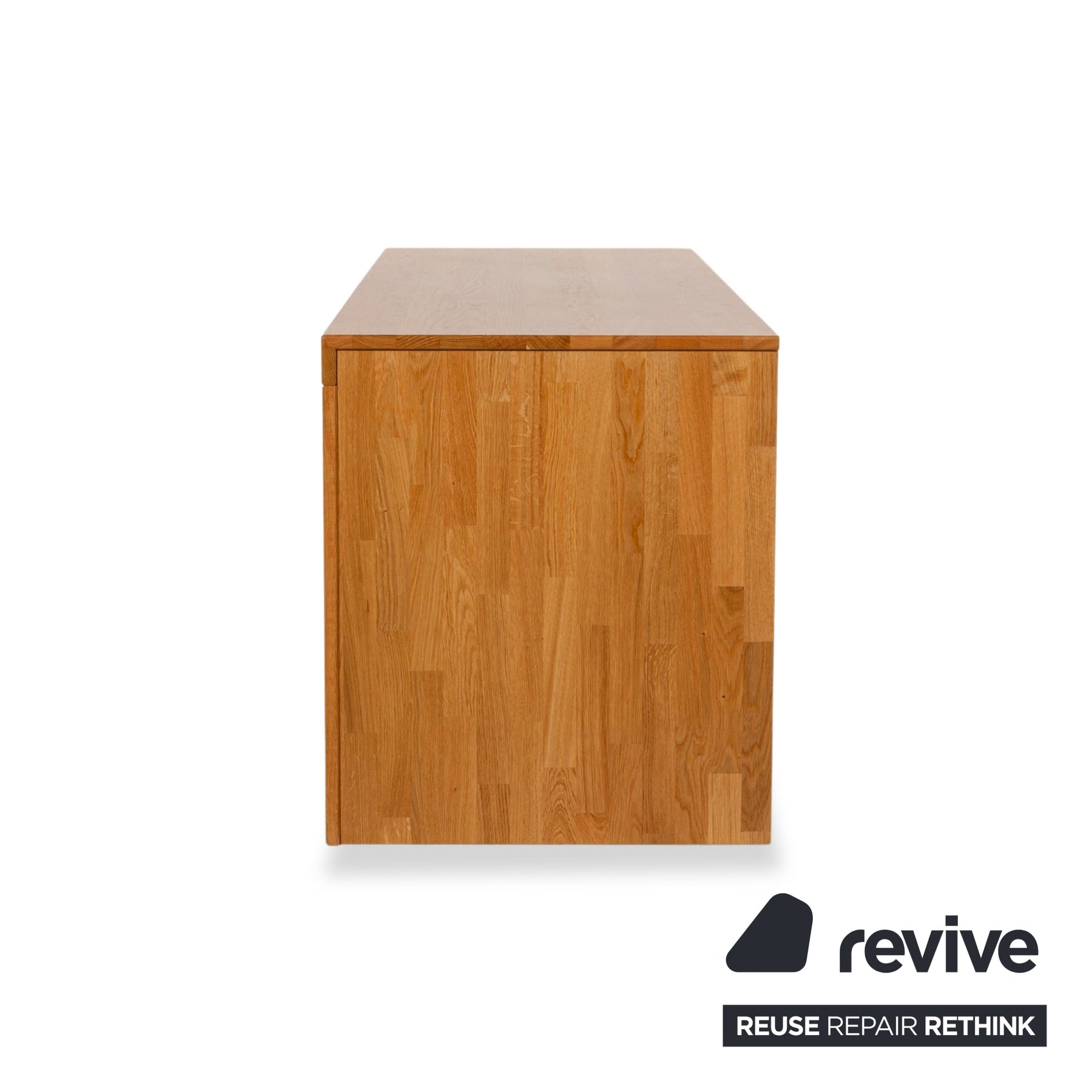 Das Sideboard von Wöstmann ist in einem modernen Design gehalten und aus braunem Holz gefertigt. Zwei Schubladen, zwei Schranktüren und eine offene Ablage sorgen für viel Stauraum.