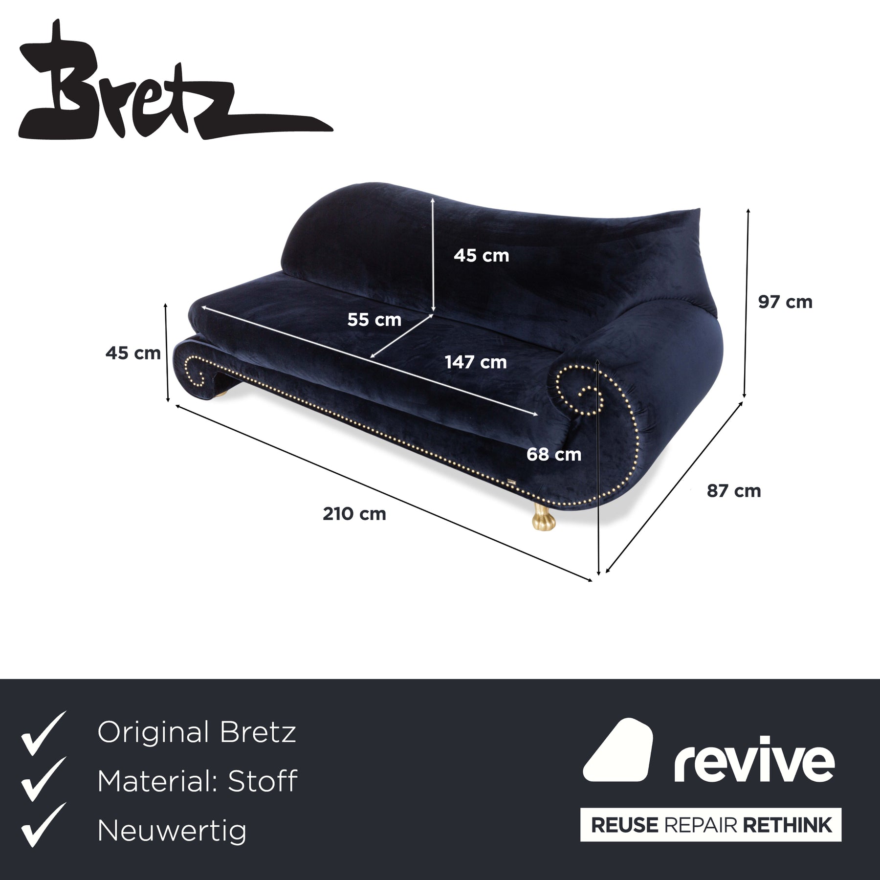 Bretz ist seit den 1950er-Jahren Synonym für charakterstarke Polstermöbel aus Deutschland, die Mut zur Farbe und zur Form zeigen. Die Marke setzt auf handwerkliche Fertigung, bei der jedes Stück von erfahrenen Polsterern individuell gefertigt wird. Samtige Stoffe, markante Nähte und üppige Polster stehen für ein Design, das sich von gängigen Konventionen abhebt und Räume in lebendige Wohnlandschaften verwandelt. Möbel von Bretz verbinden Komfort mit einer expressiven Haltung und sind gemacht für alle, die im Wohnen ein Stück Persönlichkeit suchen. Hier treffen Langlebigkeit und Individualität auf einen zeitlosen Ansatz, der Second-Hand-Charakter von Anfang an mitdenkt.