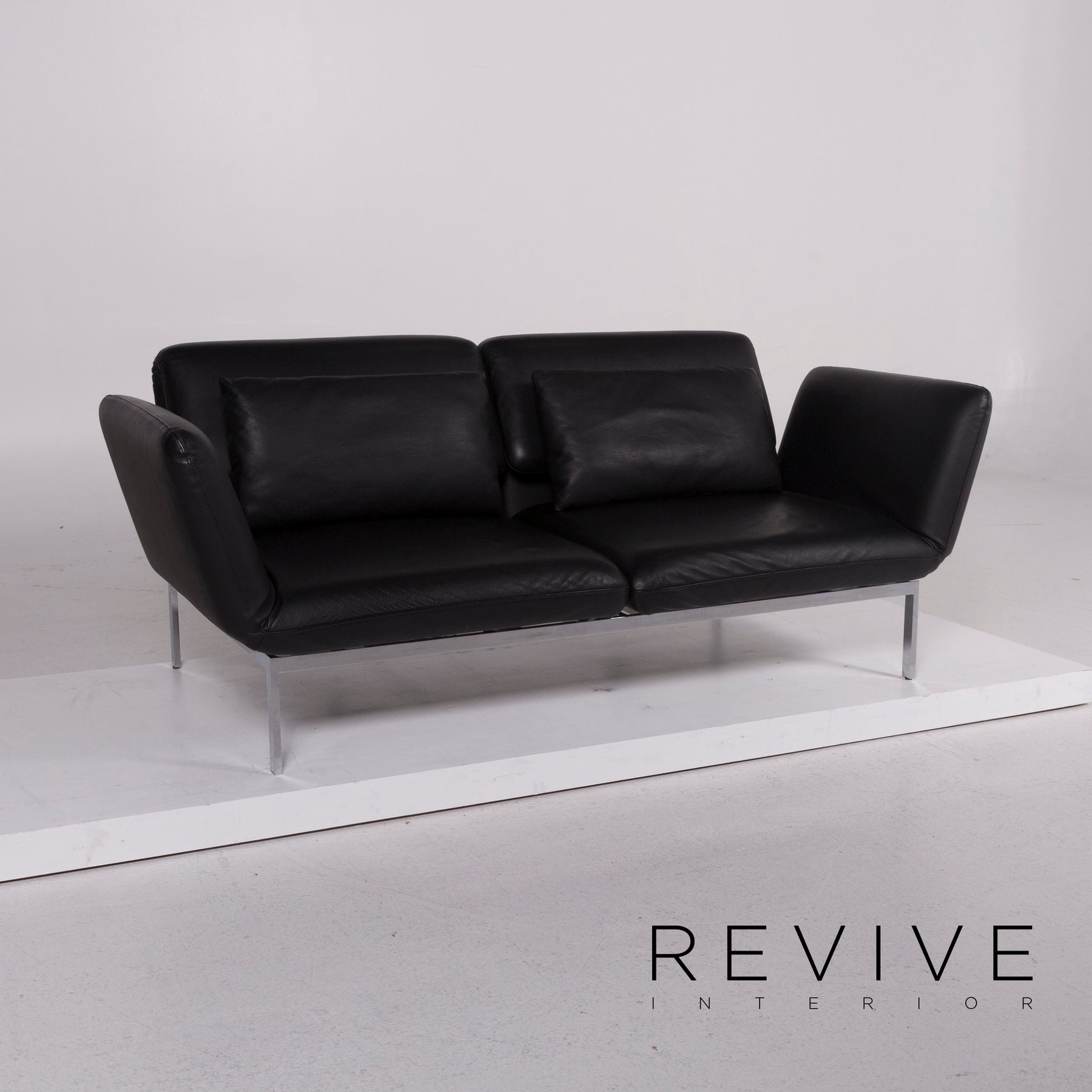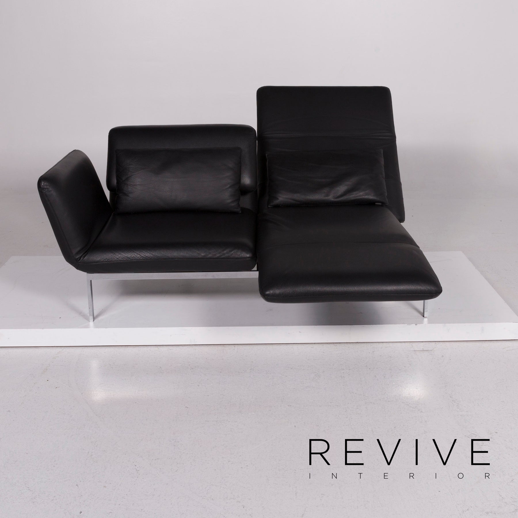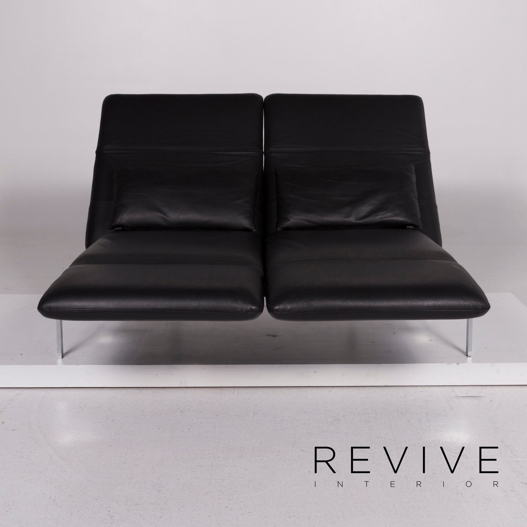 Brühl Roro Medium Leder Sofa Schwarz Zweisitzer Couch inkl. manuelle Funktion