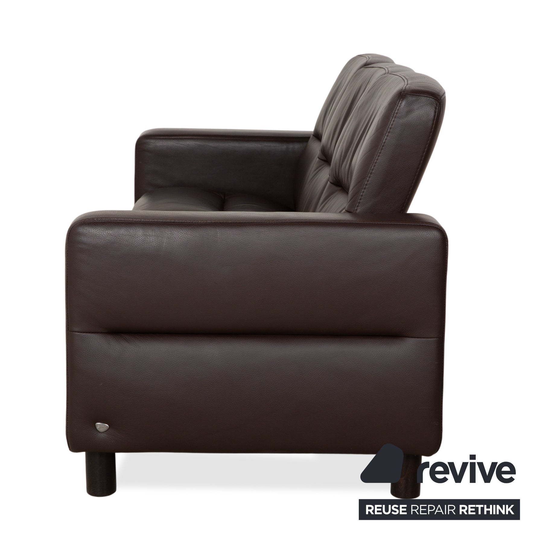 Beide Sofas sind in hochwertiges Leder im Farbton Espresso (dunkles Braun) gekleidet. Dieser tiefe, erdige Ton wirkt besonders edel und strahlt eine ruhige Behaglichkeit aus. Das Design der „Wave“-Serie ist unverkennbar: Jeder Sitzplatz ist optisch einzeln modelliert und erinnert an einen hochwertigen Flugzeugsessel – eine Einladung, sofort Platz zu nehmen.