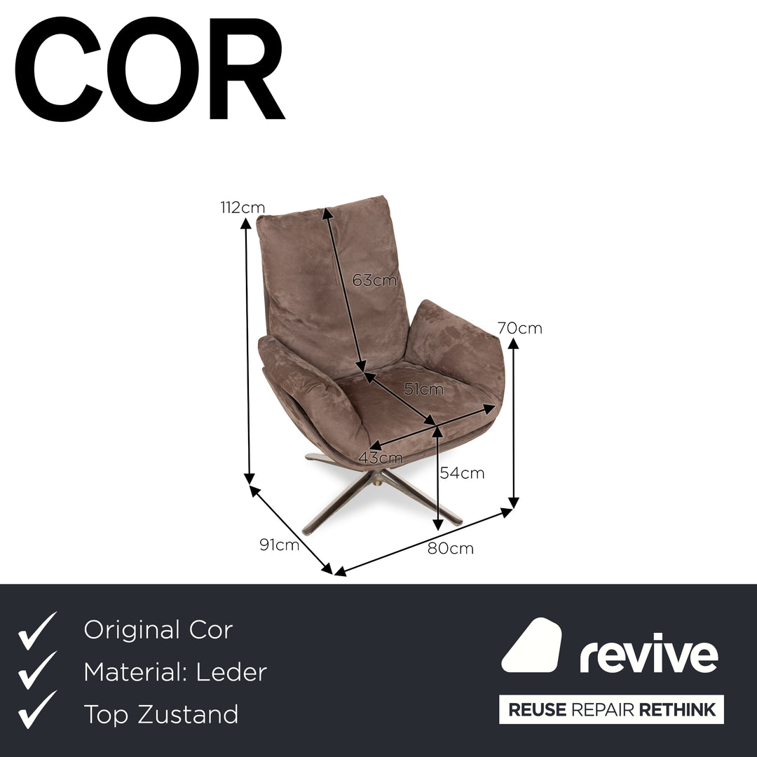 Cor Cordia Lounge Leder Sessel inkl. Hocker Braun Braungrau Naturleder