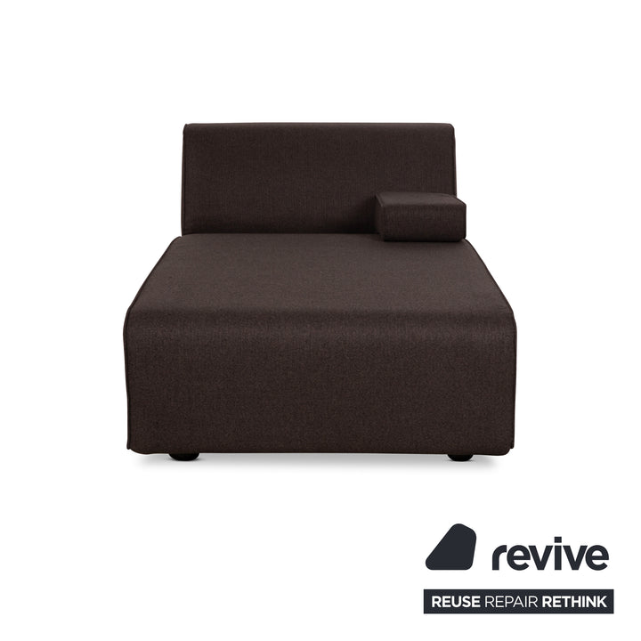 Die Liege Kelp von Cor ist mit einem grau-braunen Stoff neu bezogen worden. Ihr kompaktes, minimal abgerundetes Design zeichnet sie aus und die praktische, verstellbare Armlehne sorgt für erhöhten Komfort.